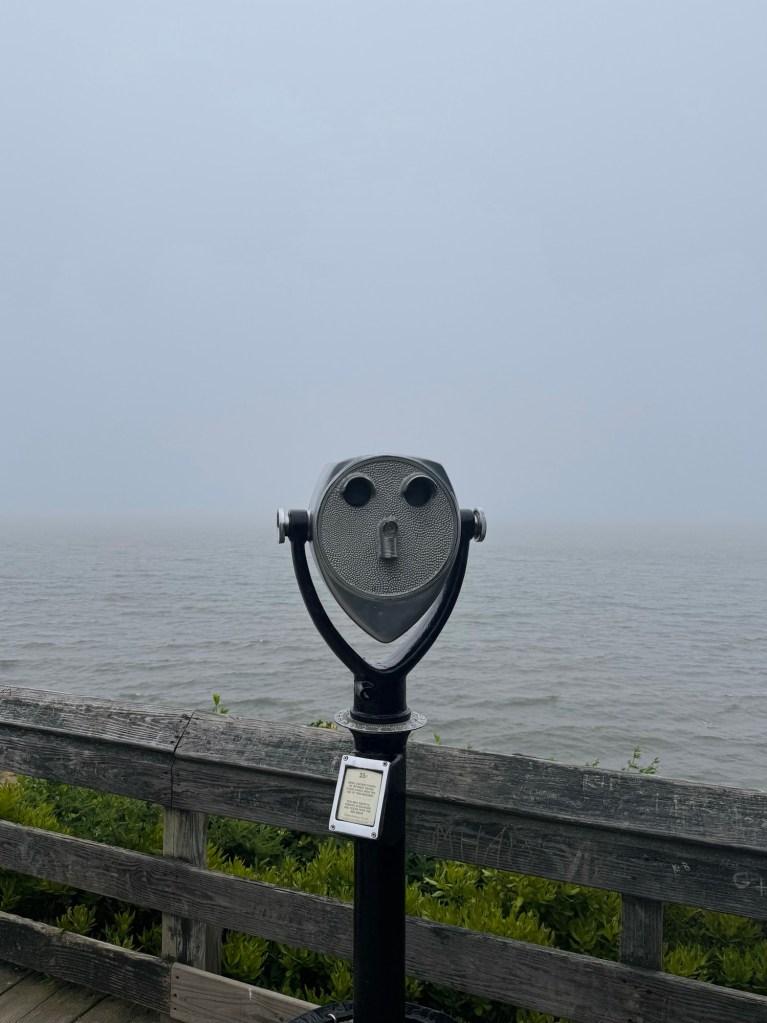 There’s also a little trail by the beach that leads to a boardwalk overlook where the viewfinder is. The parking lot for this area is right at the Meig’s Point Nature Center so we checked out their peregrine falcon live cam and several rooms of animals divided by category before heading back (in the pouring rain) to the car for the final push back home.