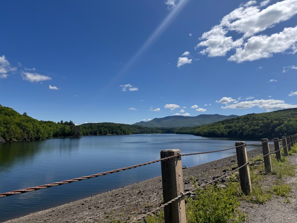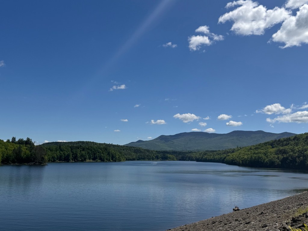 Before heading out, we stopped to check out the Waterbury Reservoir up close and personal. The rocky shore here is deceptively steep.