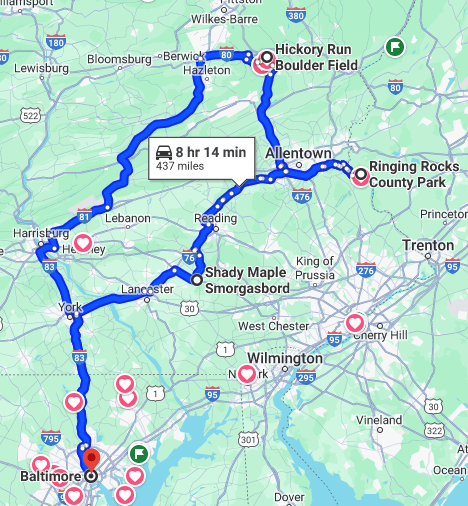I’ve been pingponging back and forth from Pennsylvania to Baltimore a lot recently, but this trip was alllll my boyfriend’s fault. (And I’m lowkey glad because somehow my reel about Ringing Rocks has over 1/2 million views on Instagram right now? Absolutely wild.)