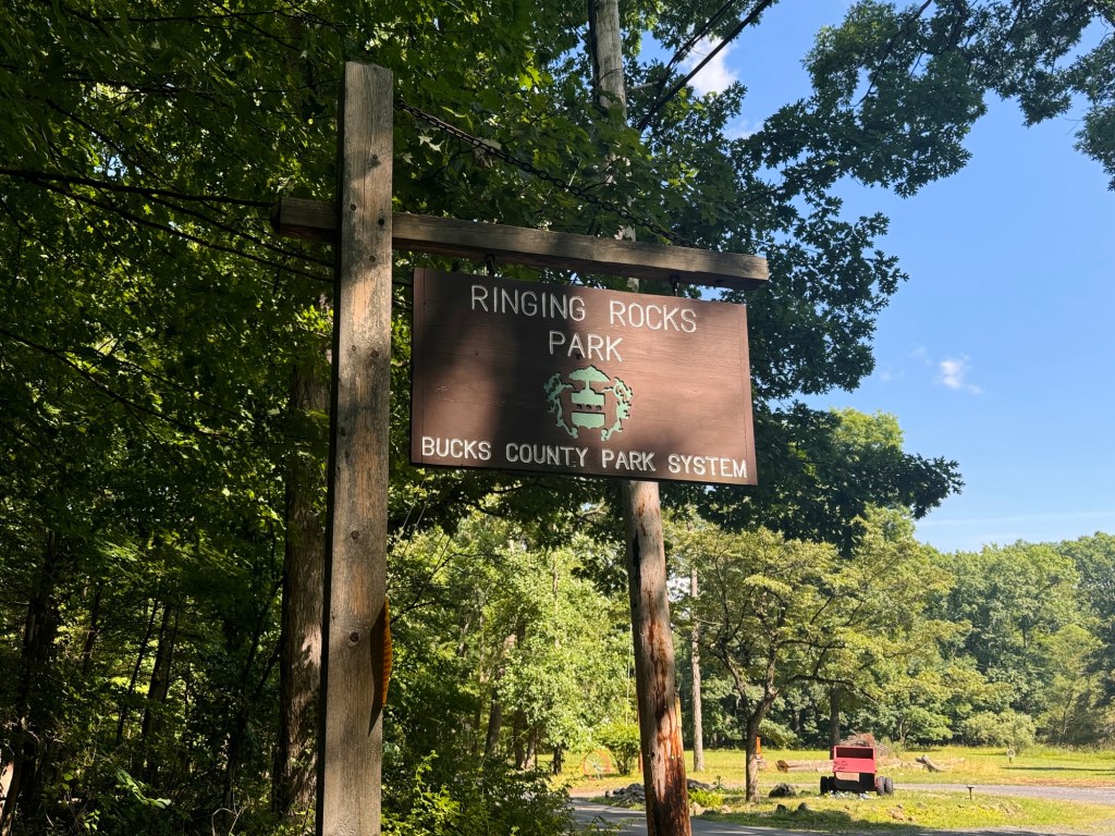 The parking lot for Ringing Rocks is basically within a neighborhood, so drive slow and be respectful of the people who live there. You can tell that a lot of people aren’t. The parking lot is relatively small and I bet it could fill easily, but I don’t imagine that people stay here very long. We were there on a Saturday afternoon and it was fine, but maybe the heat was deterring people. There are porta-potty’s in the parking lot which were actually really well kept.