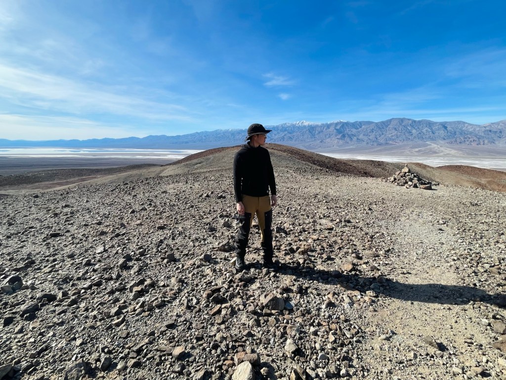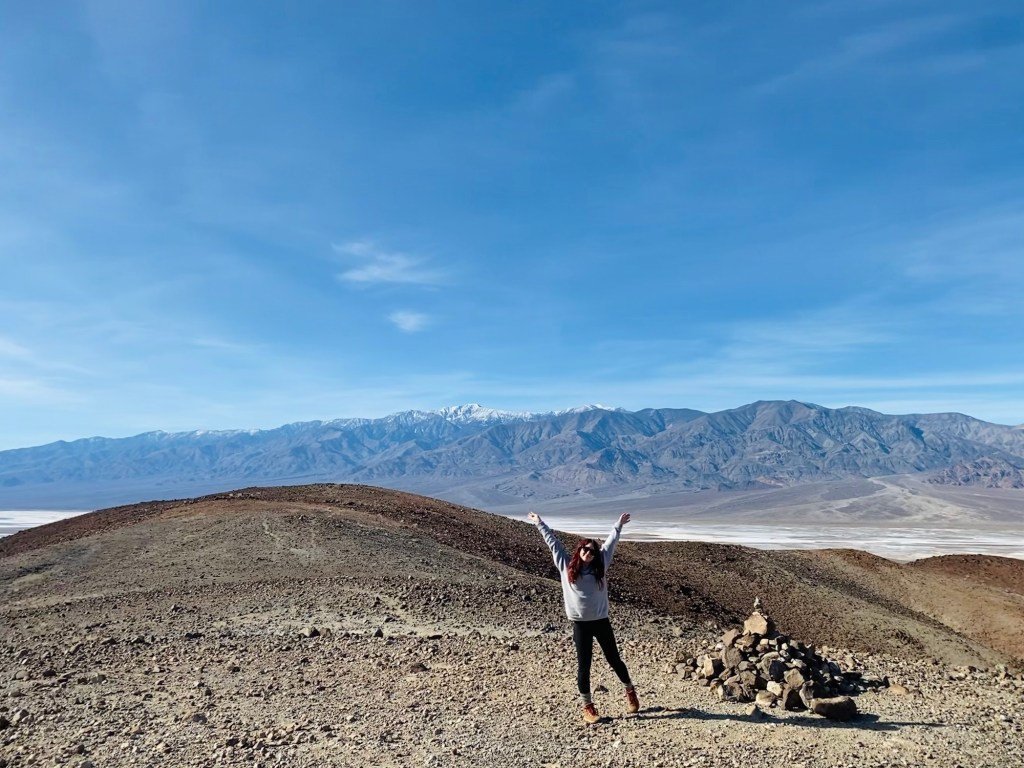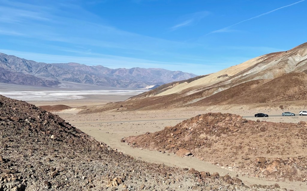 We stopped at the first parking lot to check it out, but most people skip this and just keep driving. We walked up a short trail to the top of this hill had sweeping views of Badwater Basin’s salt flats. It was really cool to see the size and scale of where we’d just been.