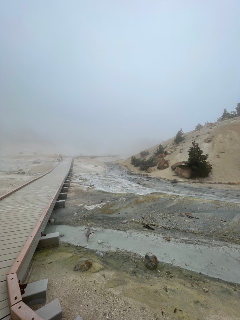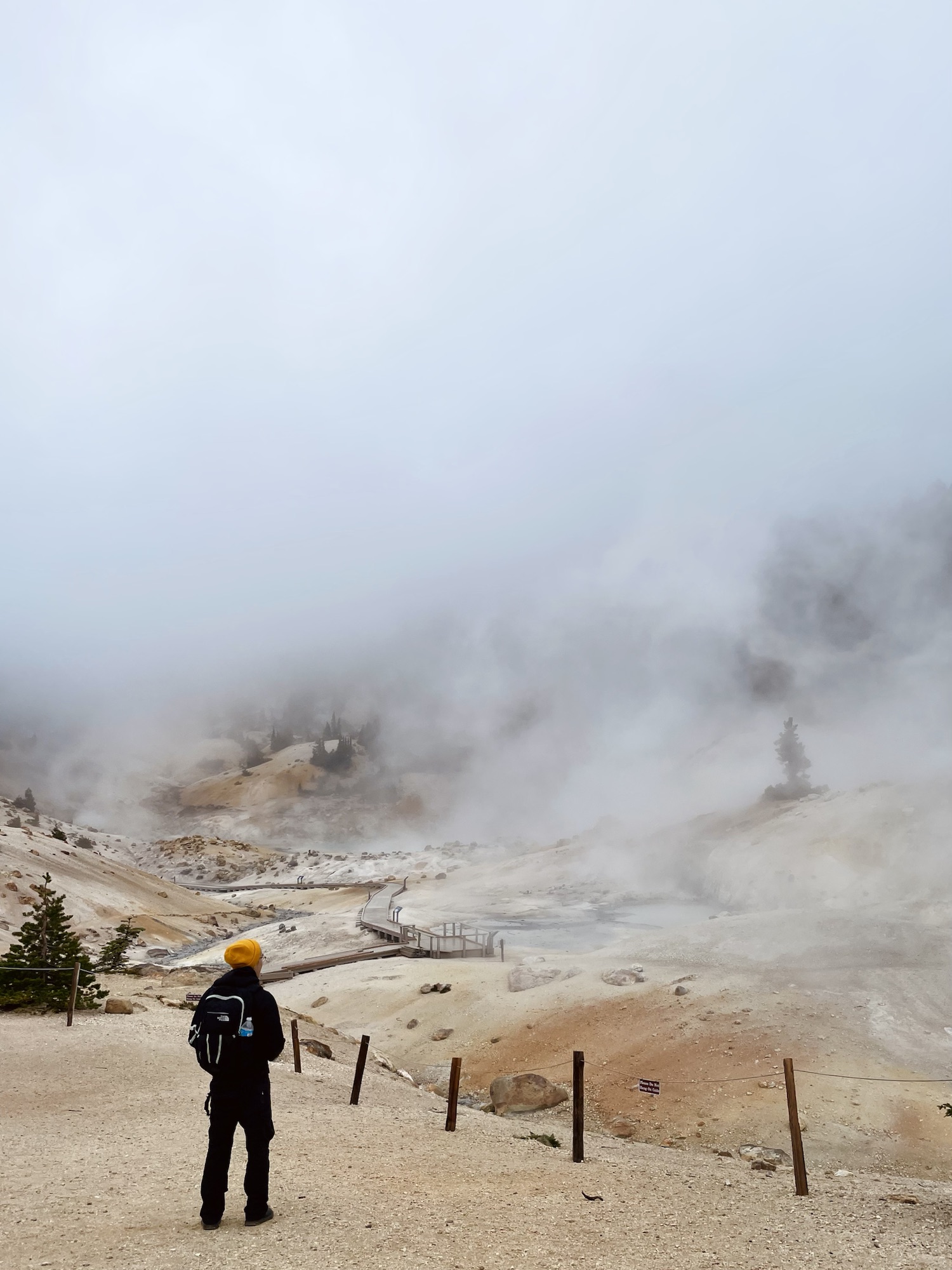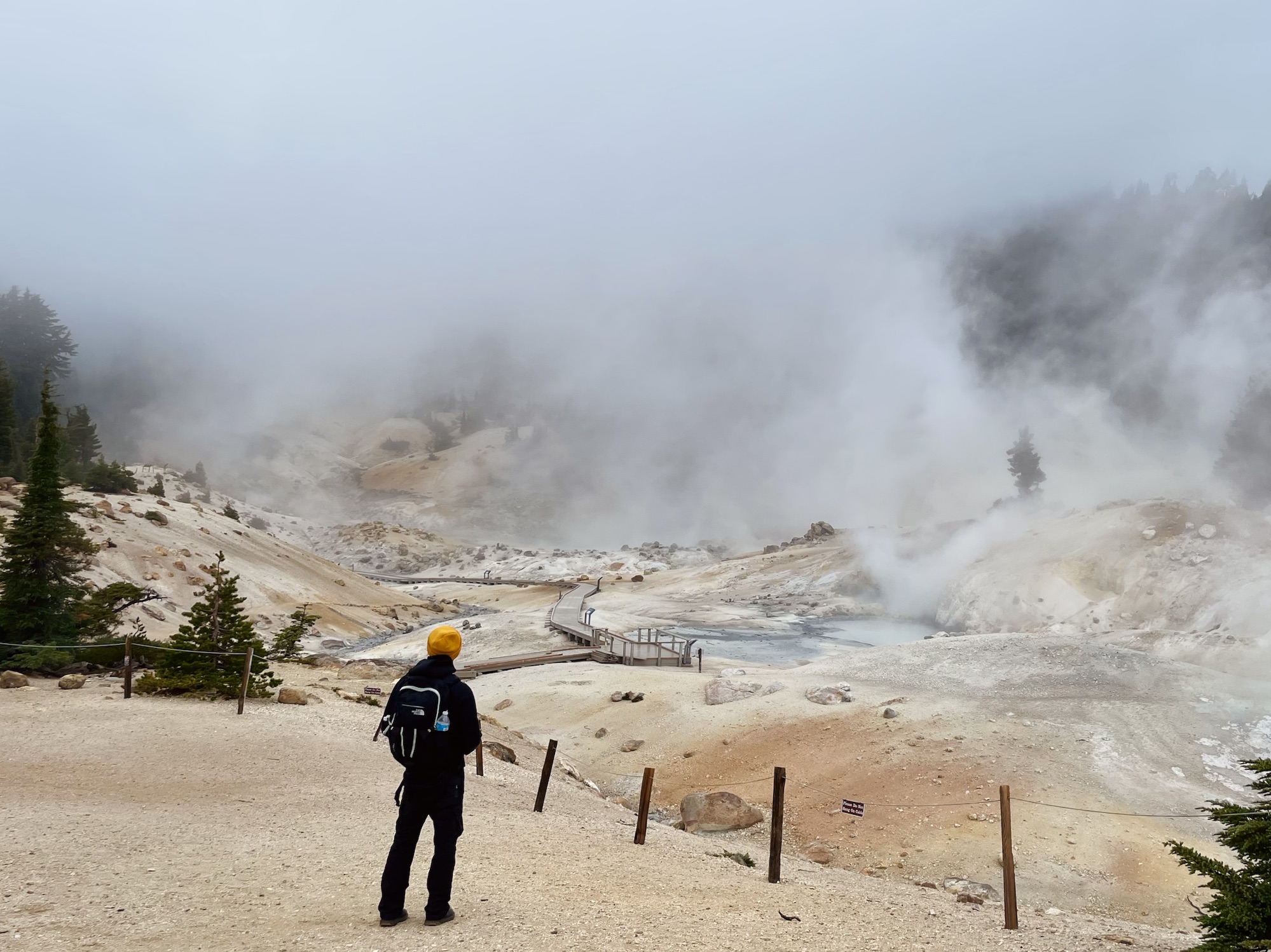 We started the trail to Bumpass Hell and were surrounded by fog on all sides and had no idea what the view actually looked like. In hindsight, we probably went faster because of this since we weren’t stopping to ooh and aah about how beautiful it was.