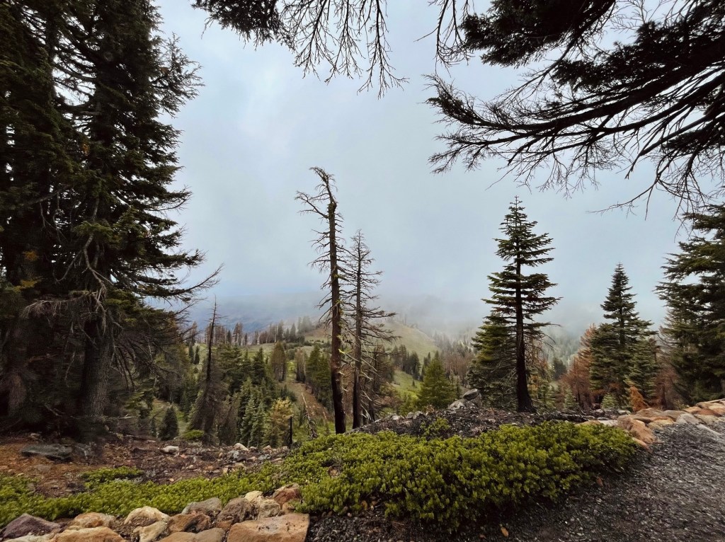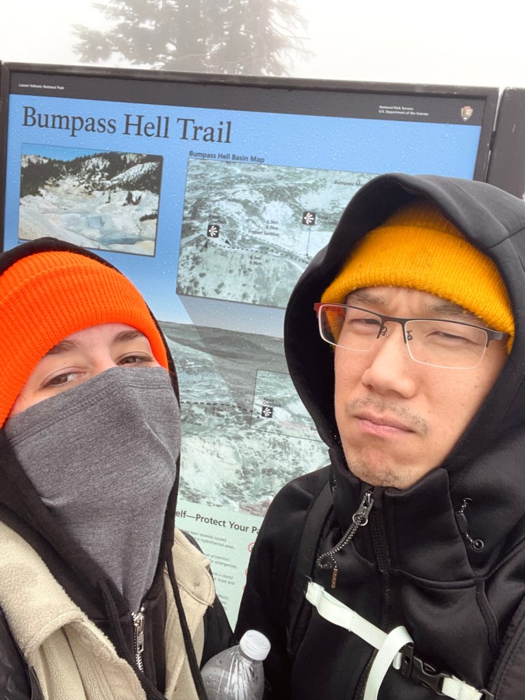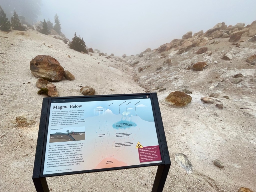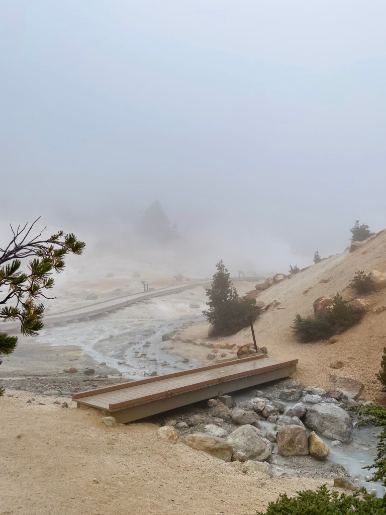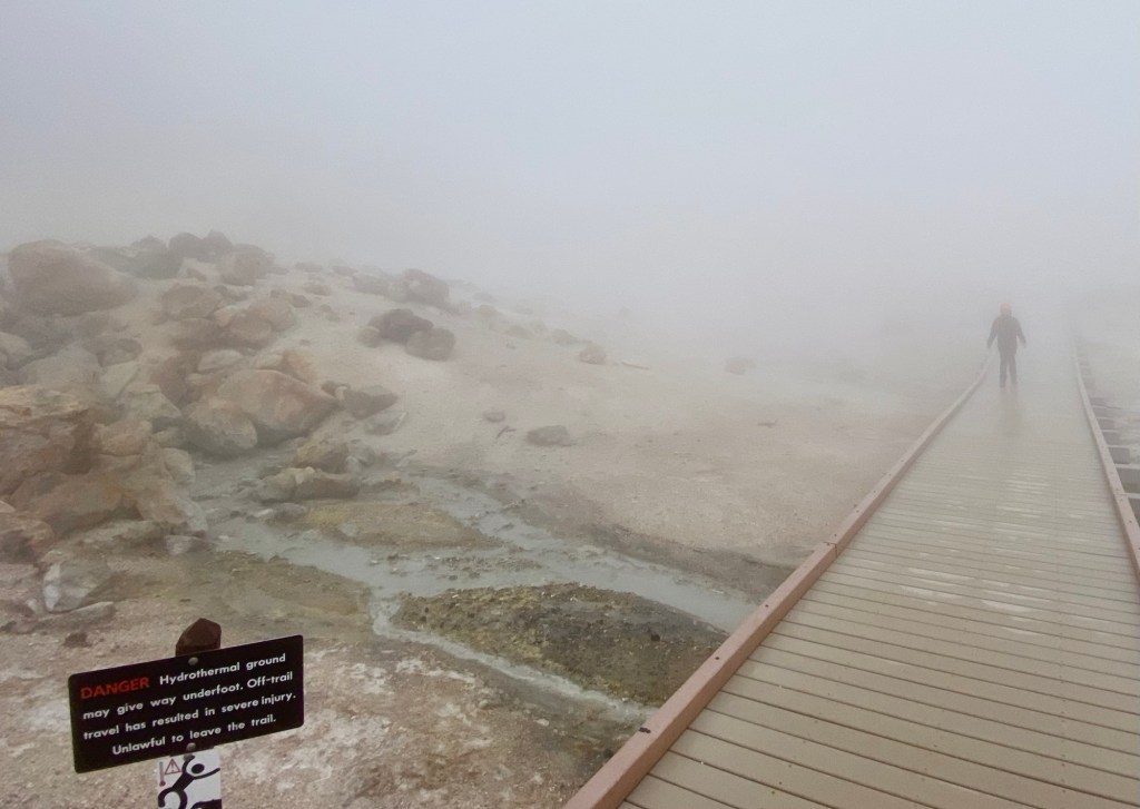We started the trail to Bumpass Hell and were surrounded by fog on all sides and had no idea what the view actually looked like. In hindsight, we probably went faster because of this since we weren’t stopping to ooh and aah about how beautiful it was.