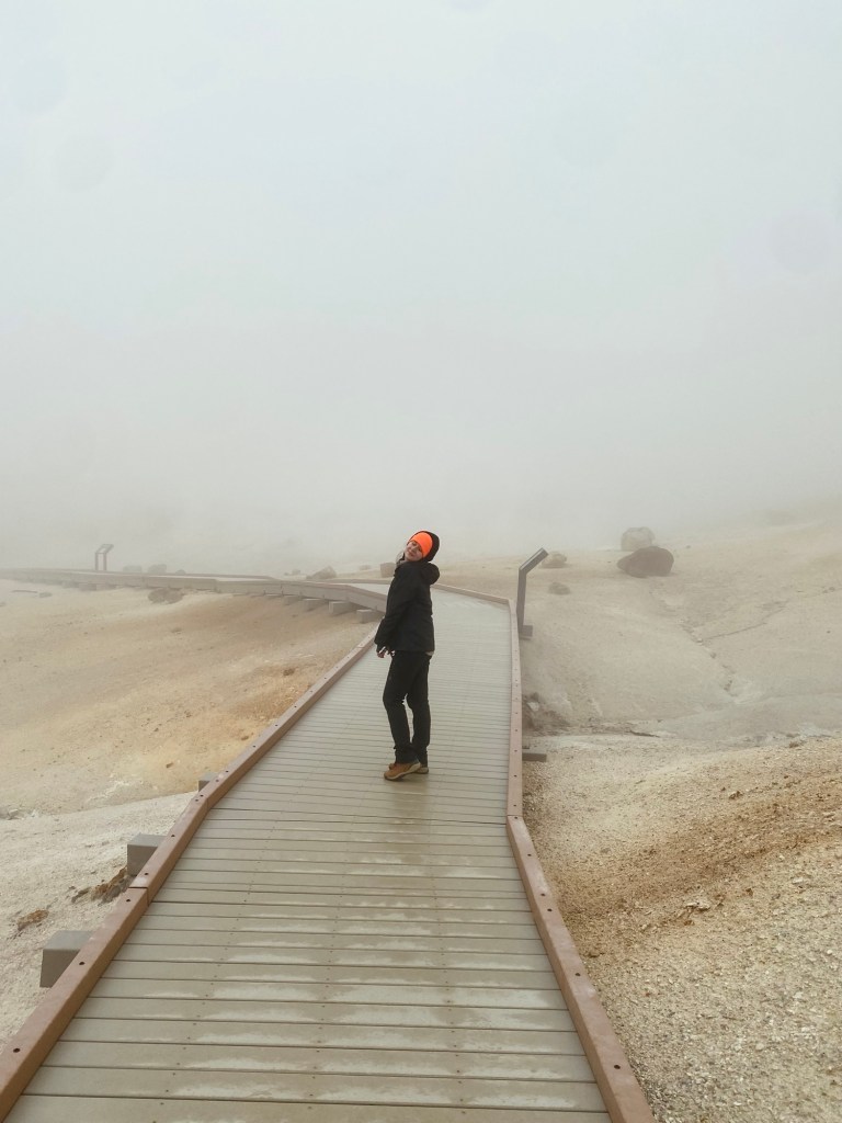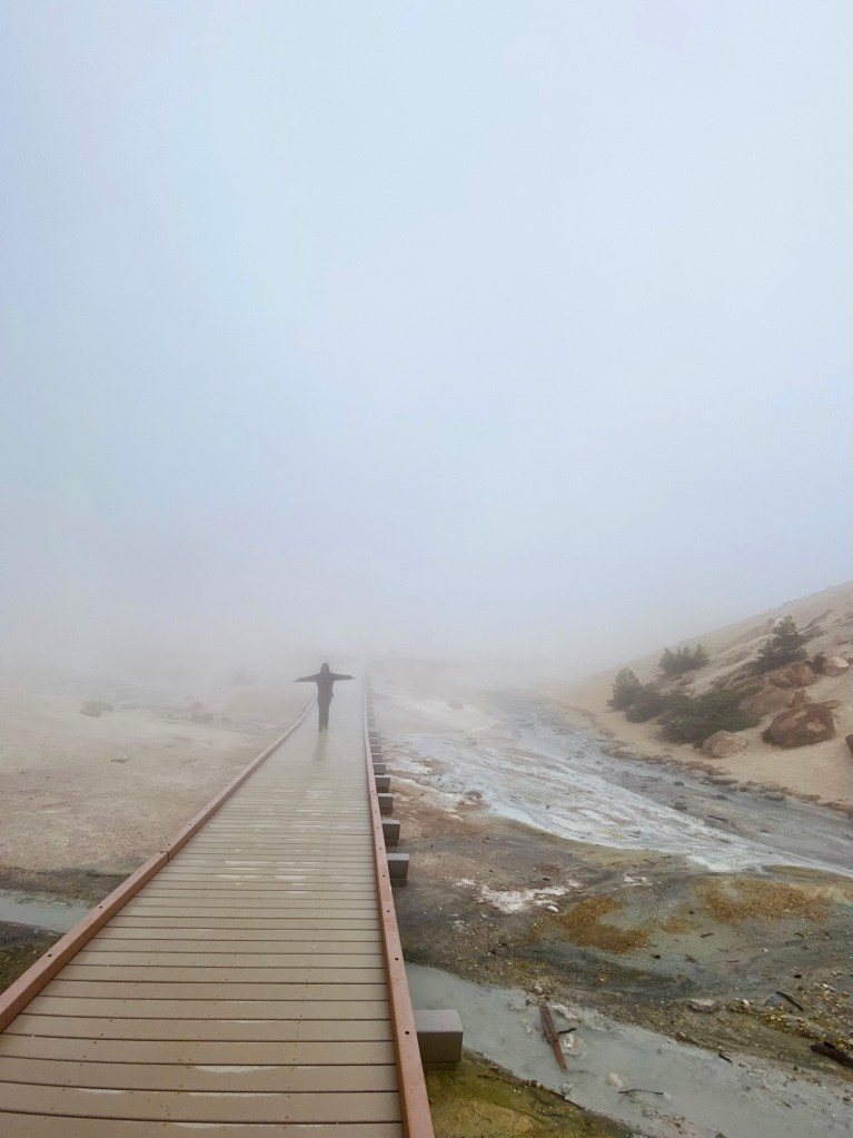 Like it sounds, it smells like stinky sulphur eggs (like Bumpass Hell does, but more). It’s weirdly humid and the fog coming off the pools is yucky and thick. Nature is so cool.