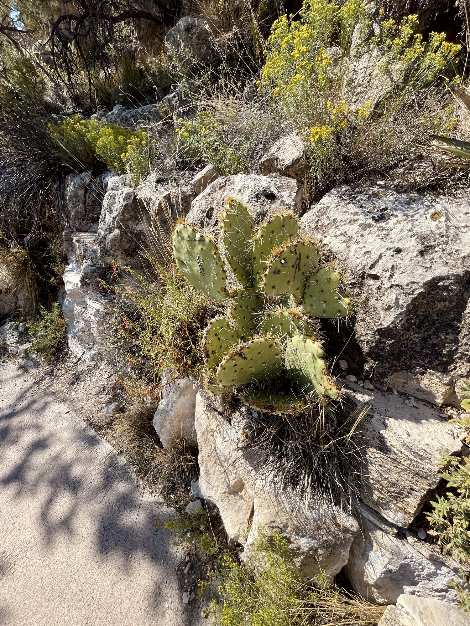 There’s a long paved downward path lined with desert plants and succulents ’til you get to the canyon. The path continues along the edge of the canyon and gives a panoramic view.