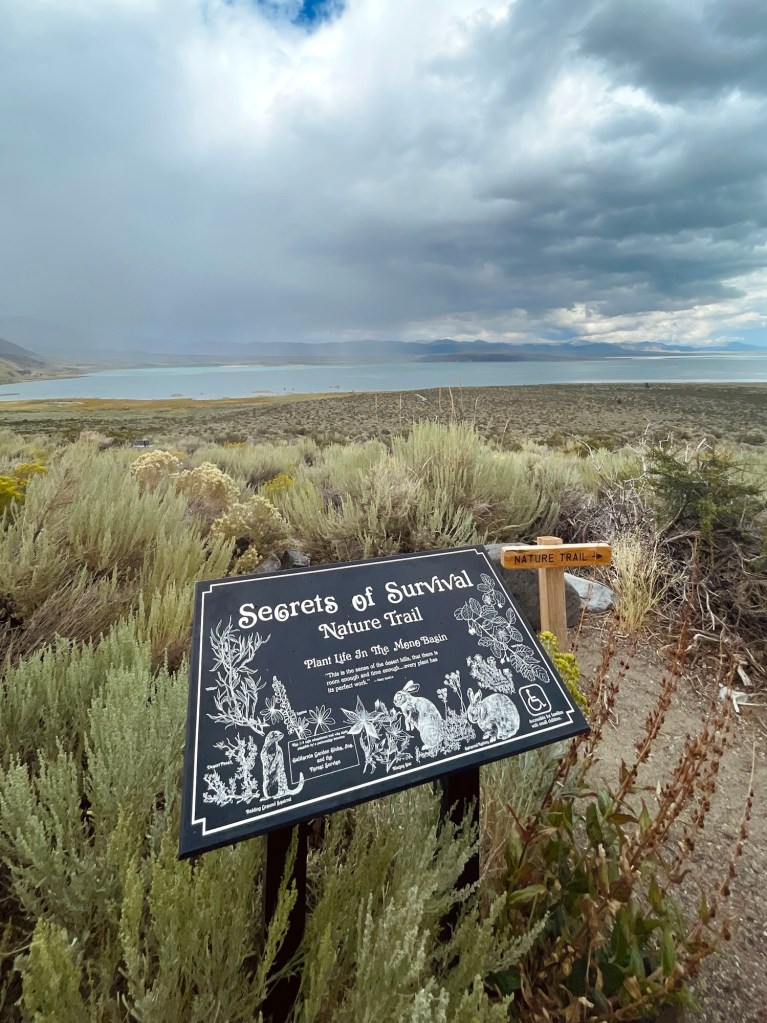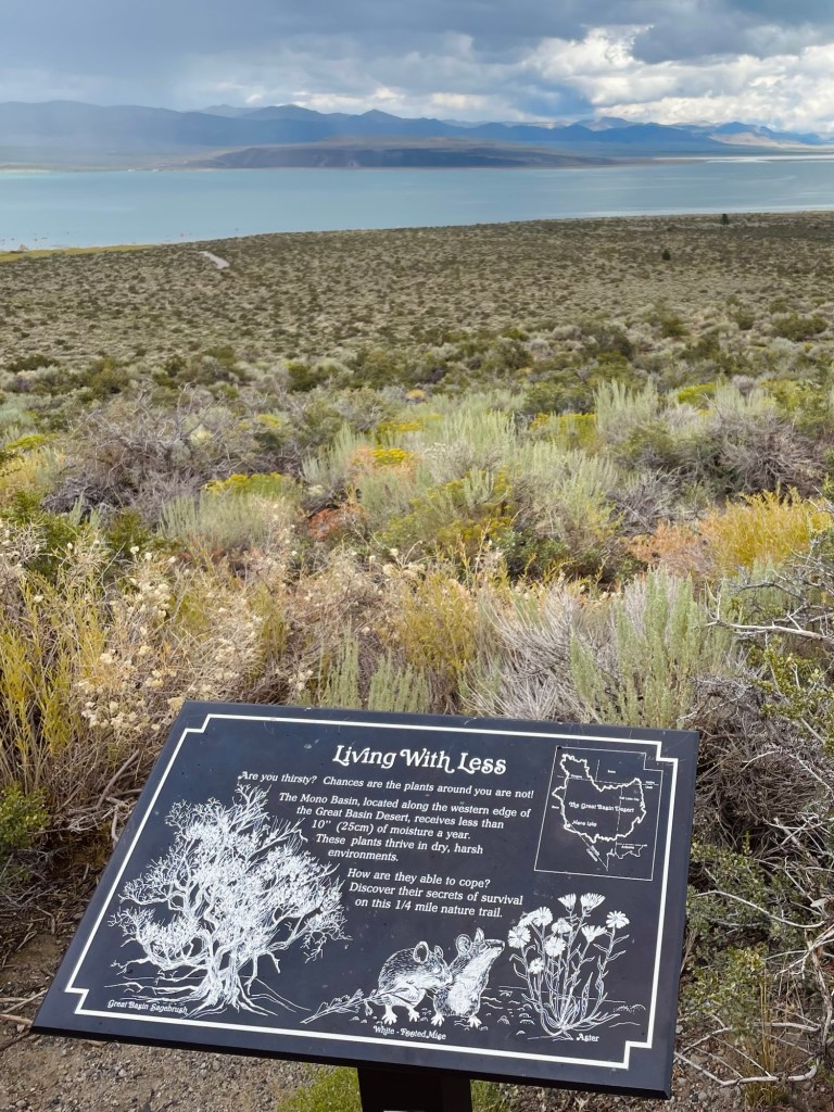 On our way, we stopped at the scenic overlook of Mono Lake, had a stranger take this cute photo of us, and stopped at the Mono Basin Visitor’s Center. We hoped to kill some time here since it’d started raining.