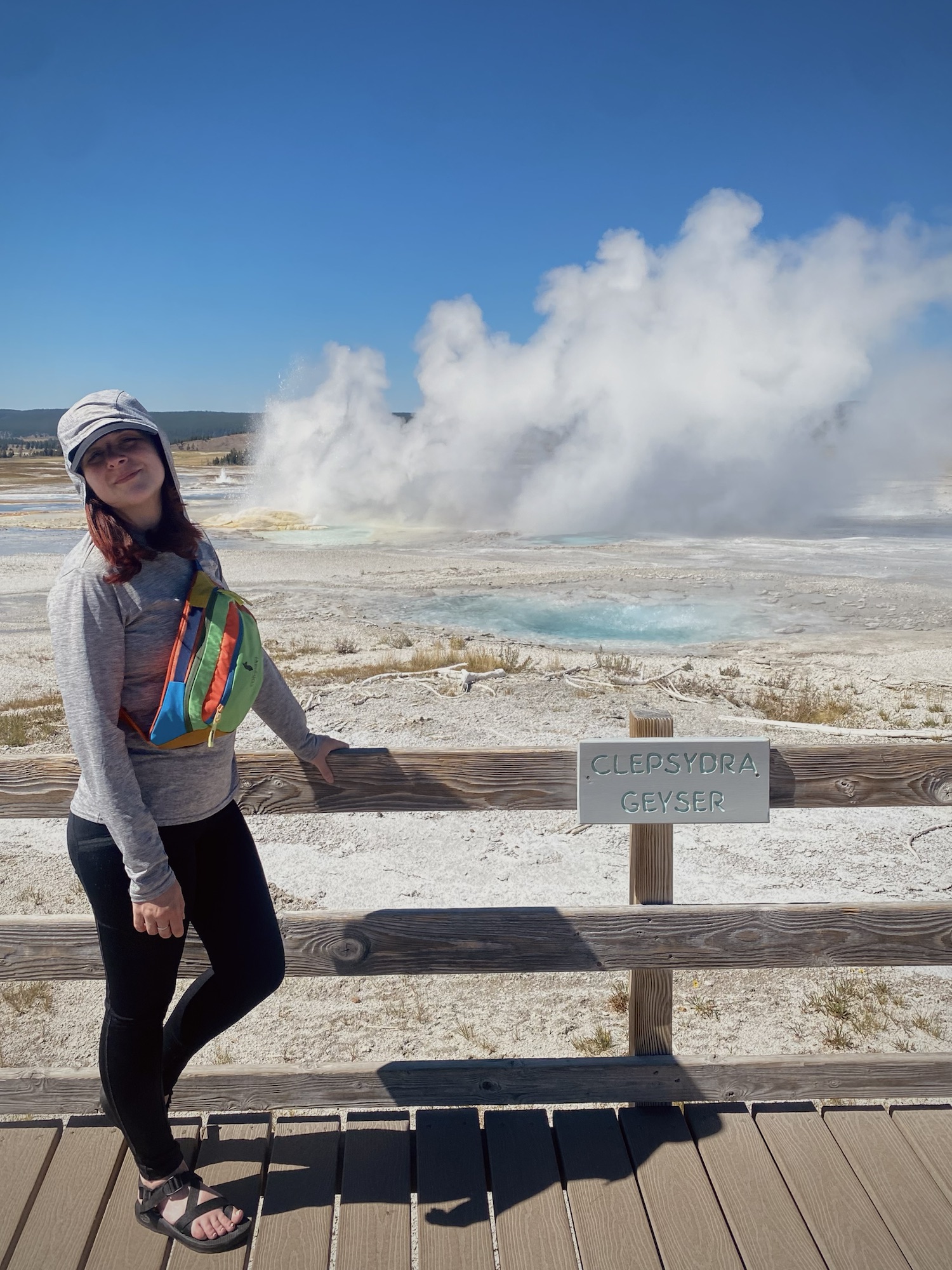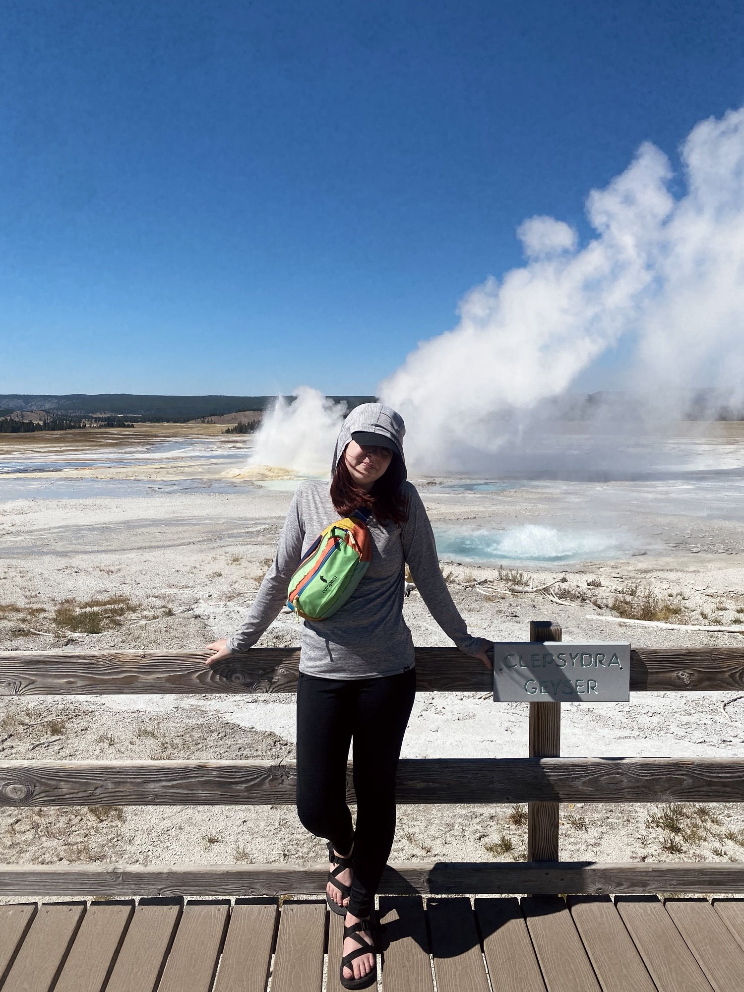 Yellowstone is super sunny and exposed because trees don’t grow on the geothermal areas, and the boardwalks that snake over/through them have zero shade. It’s November now and my feet still have the zigzag Chacos tan I got on this day haha.