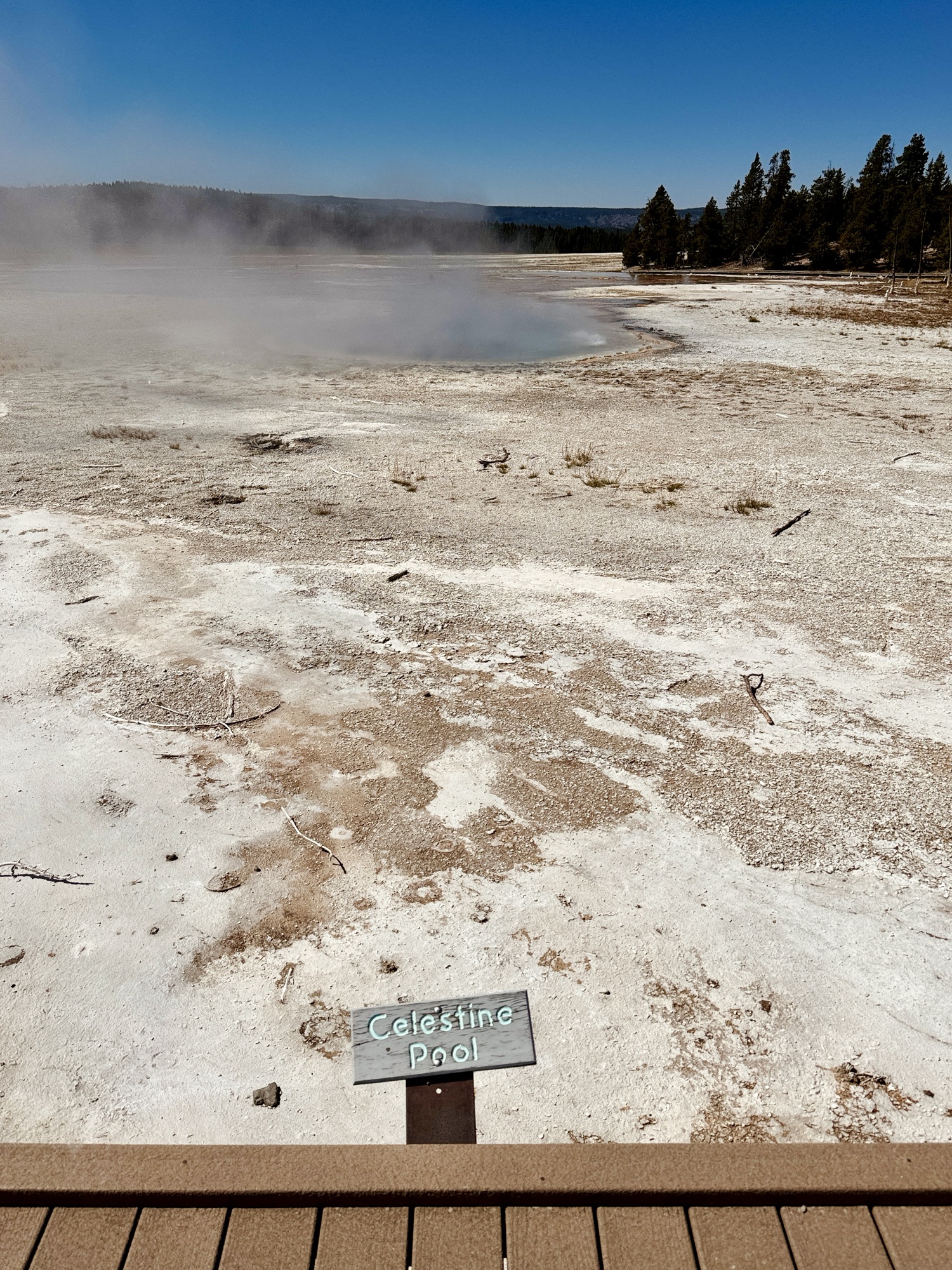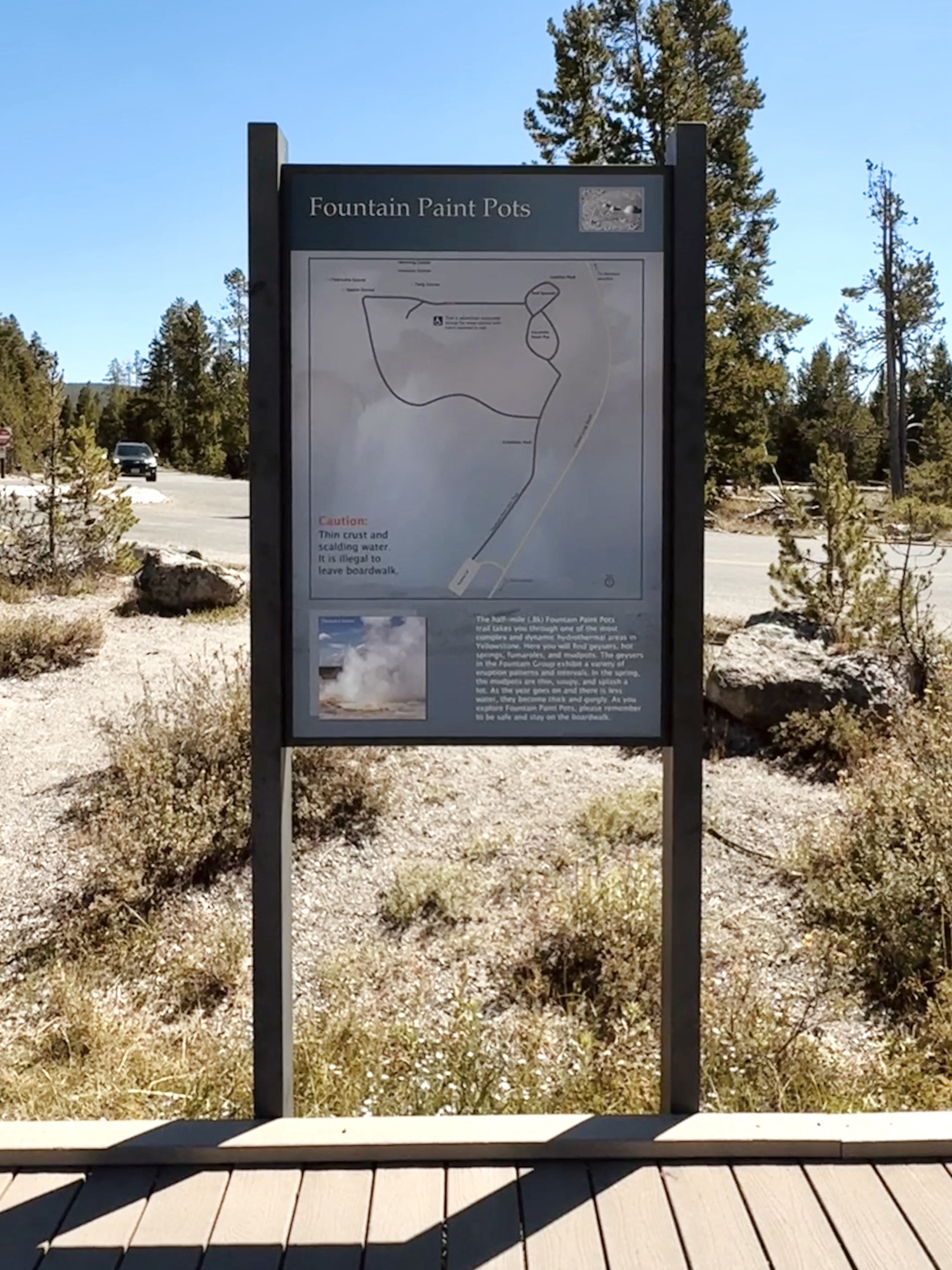 Like most of the roadside stops in Yellowstone, you park in a little parking lot and follow a long wooden boardwalk in a loop to see all of the cool geothermal things in the area.