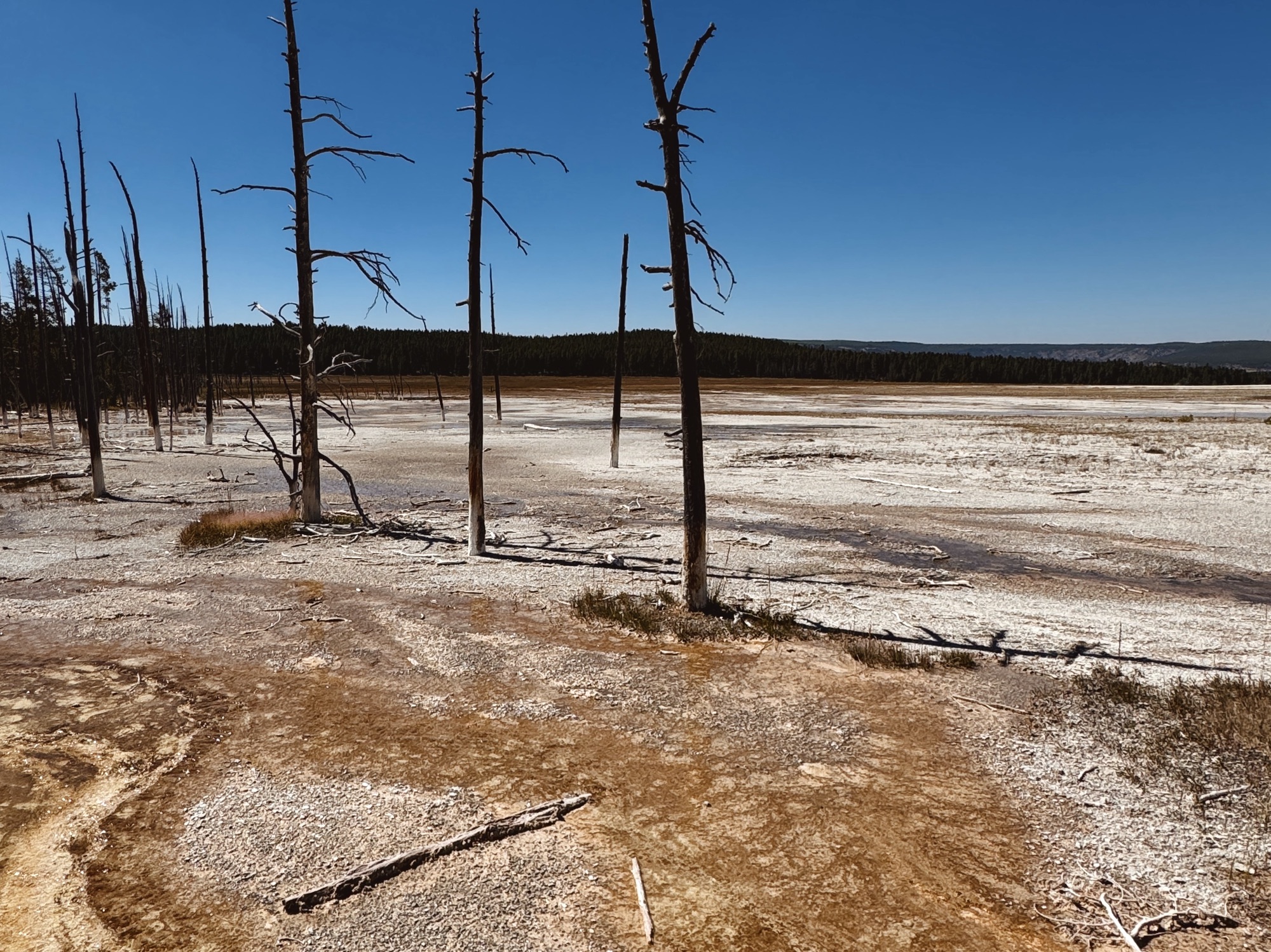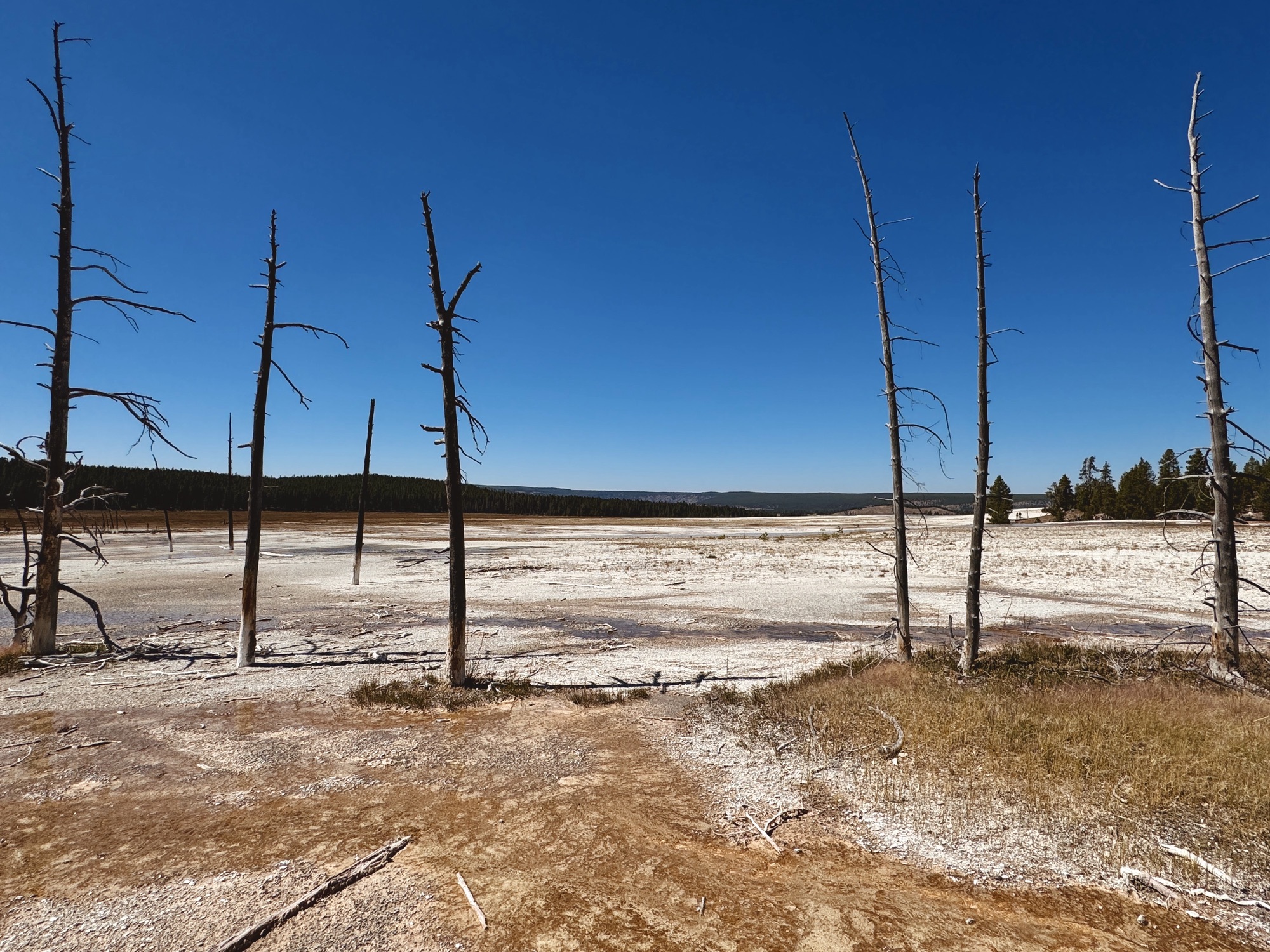 When you start, on left is a bunch of cool decimated trees within a hot bacteria mat. These are everywhere around the park and I think they’re so cool.