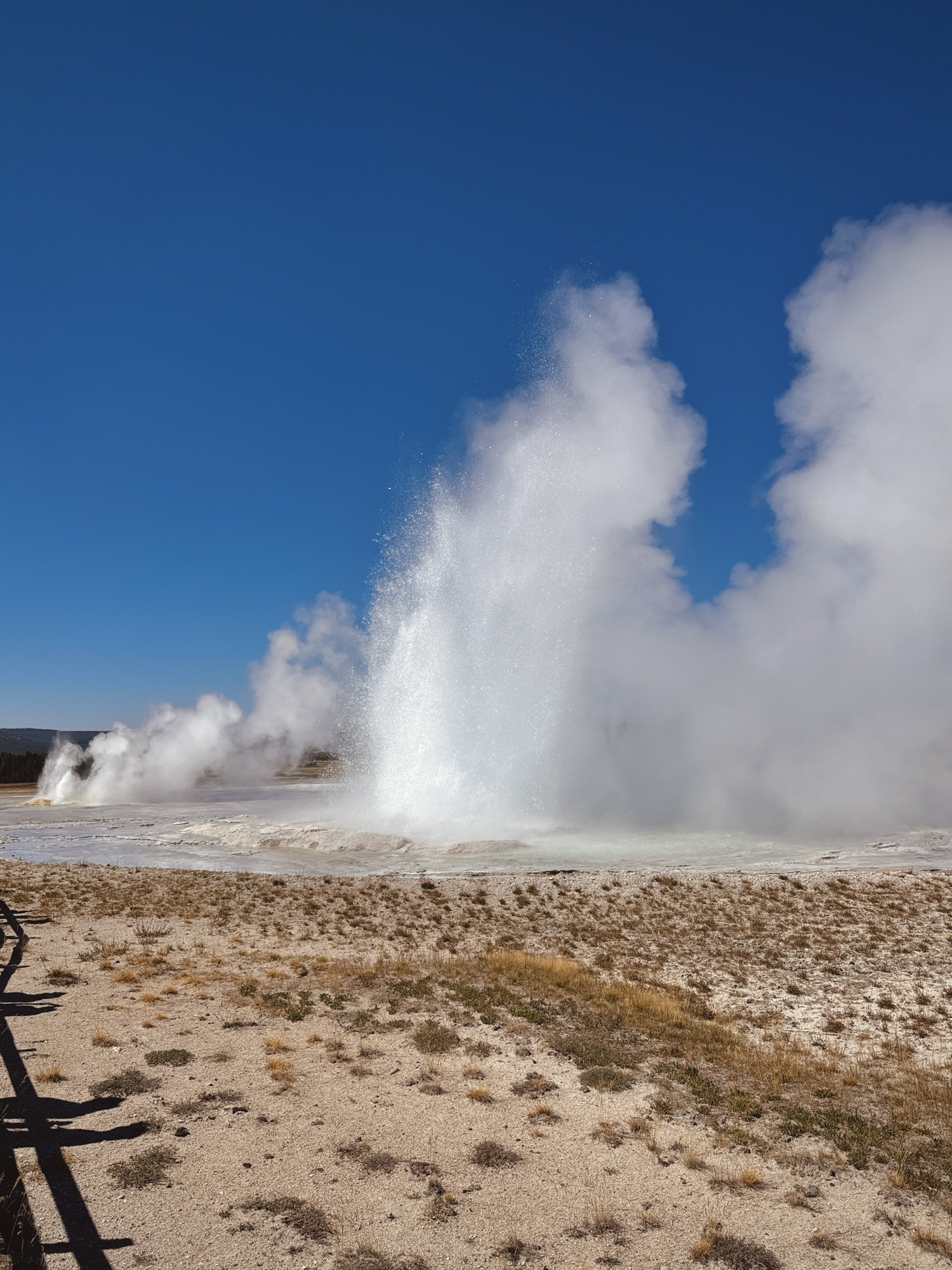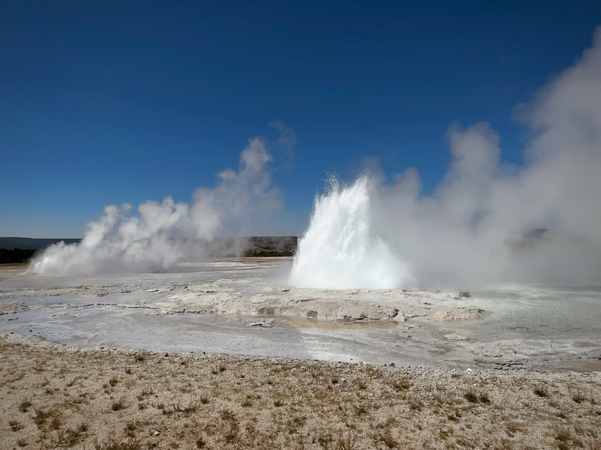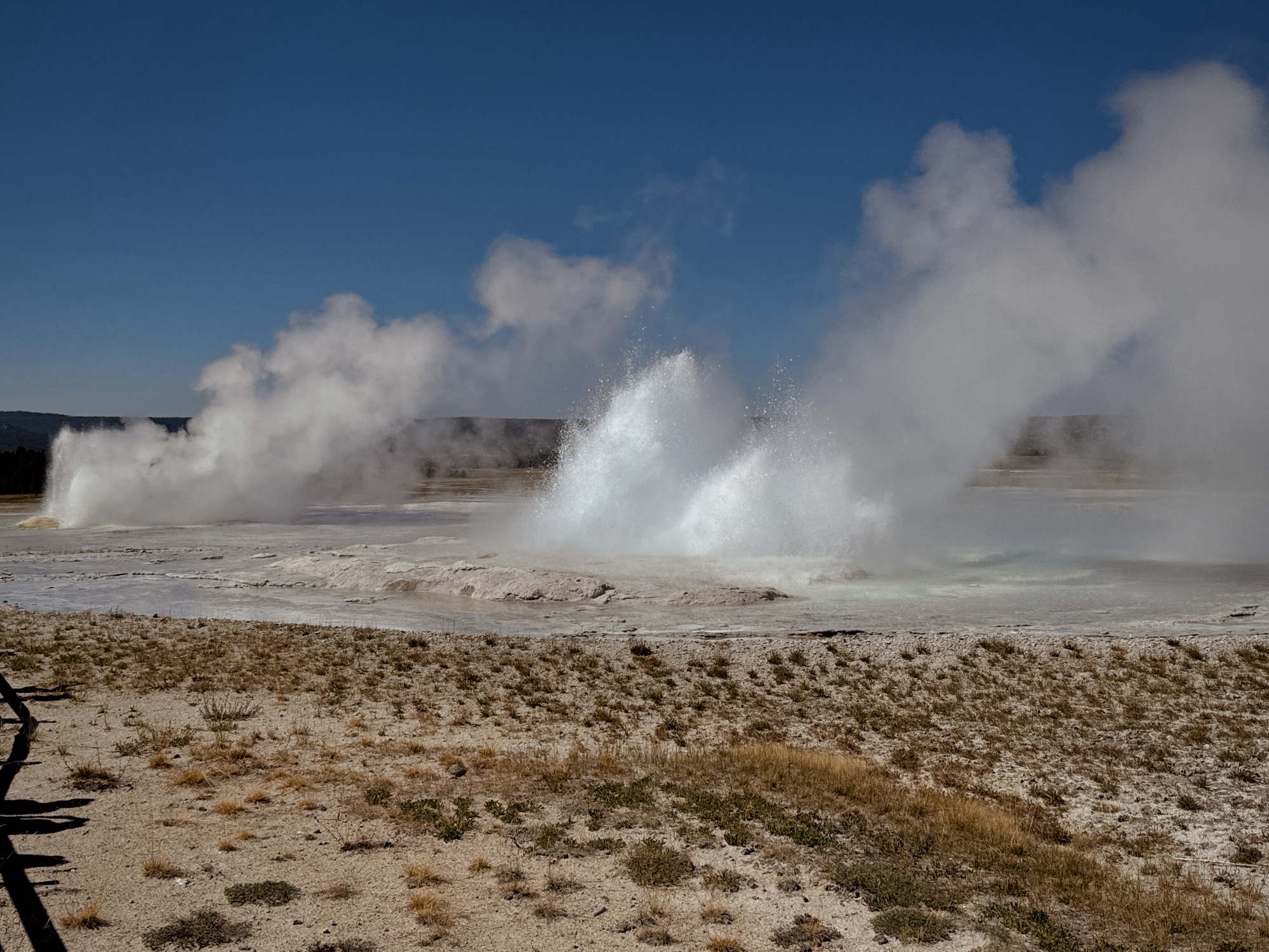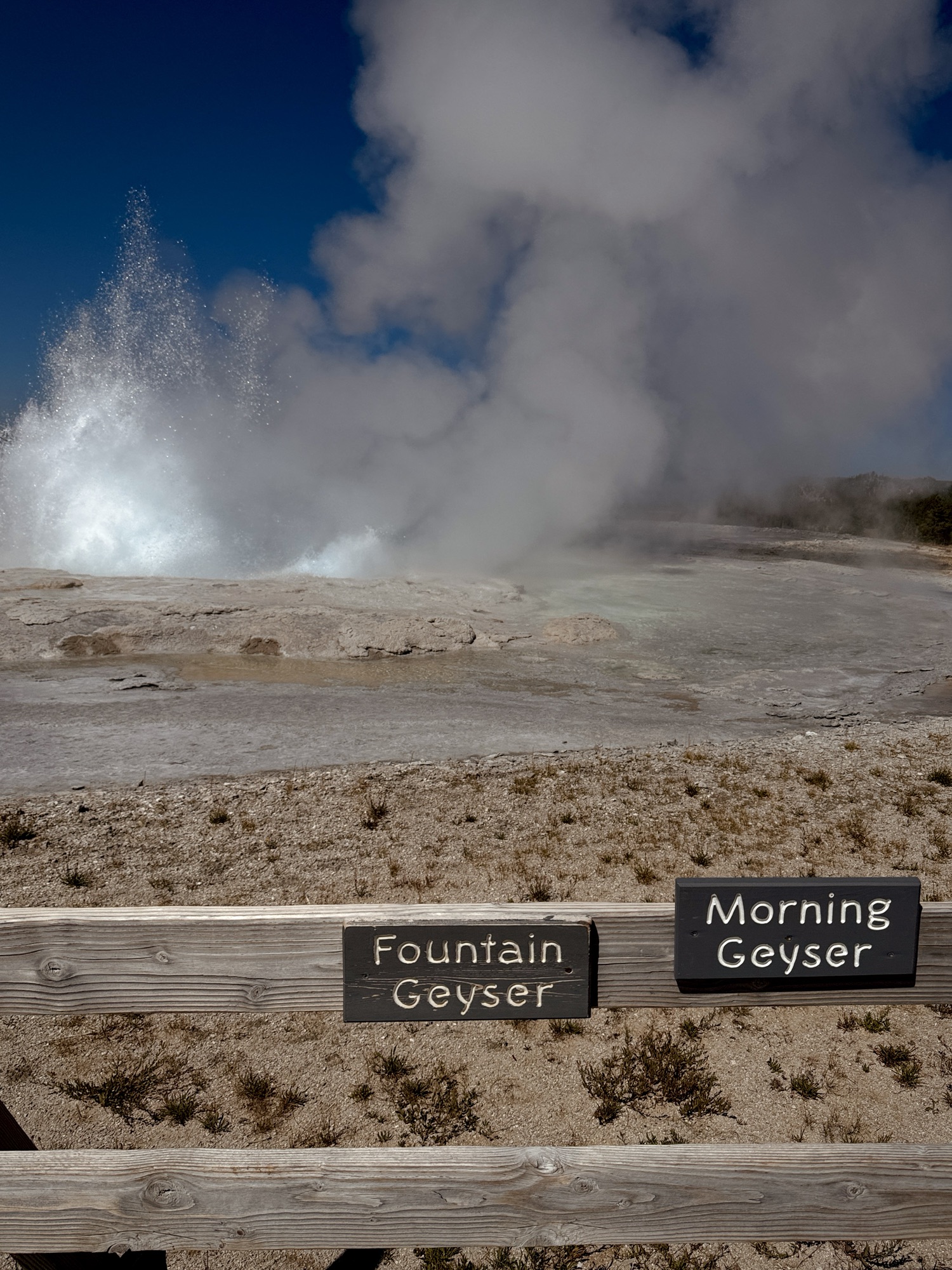 It didn’t occur to me that this is a rare thing because it’s the only time I’ve ever heard of them or seen them, but there was a lady on the boardwalk watching them in tears. We over heard her say that she’s been to Yellowstone 30+ times and had never seen Morning Geyser erupt, let alone with Fountain Geyser alongside it.