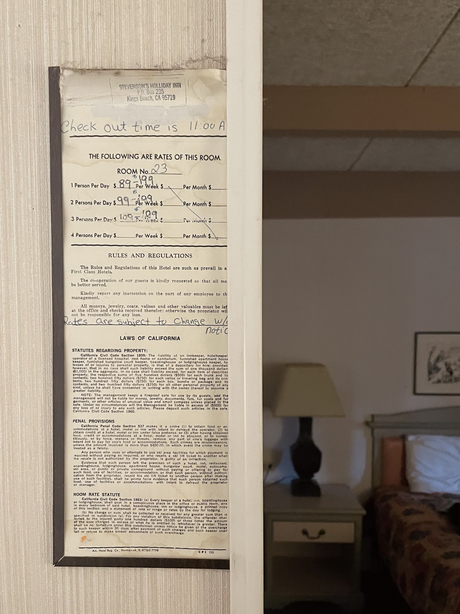On the way to Lake Tahoe, we looked up a place to stay, found the last room for a reasonable price at a small (but awesome) motel which we booked over the phone, and saw the most beautiful rainbow. It was all gonna work out.