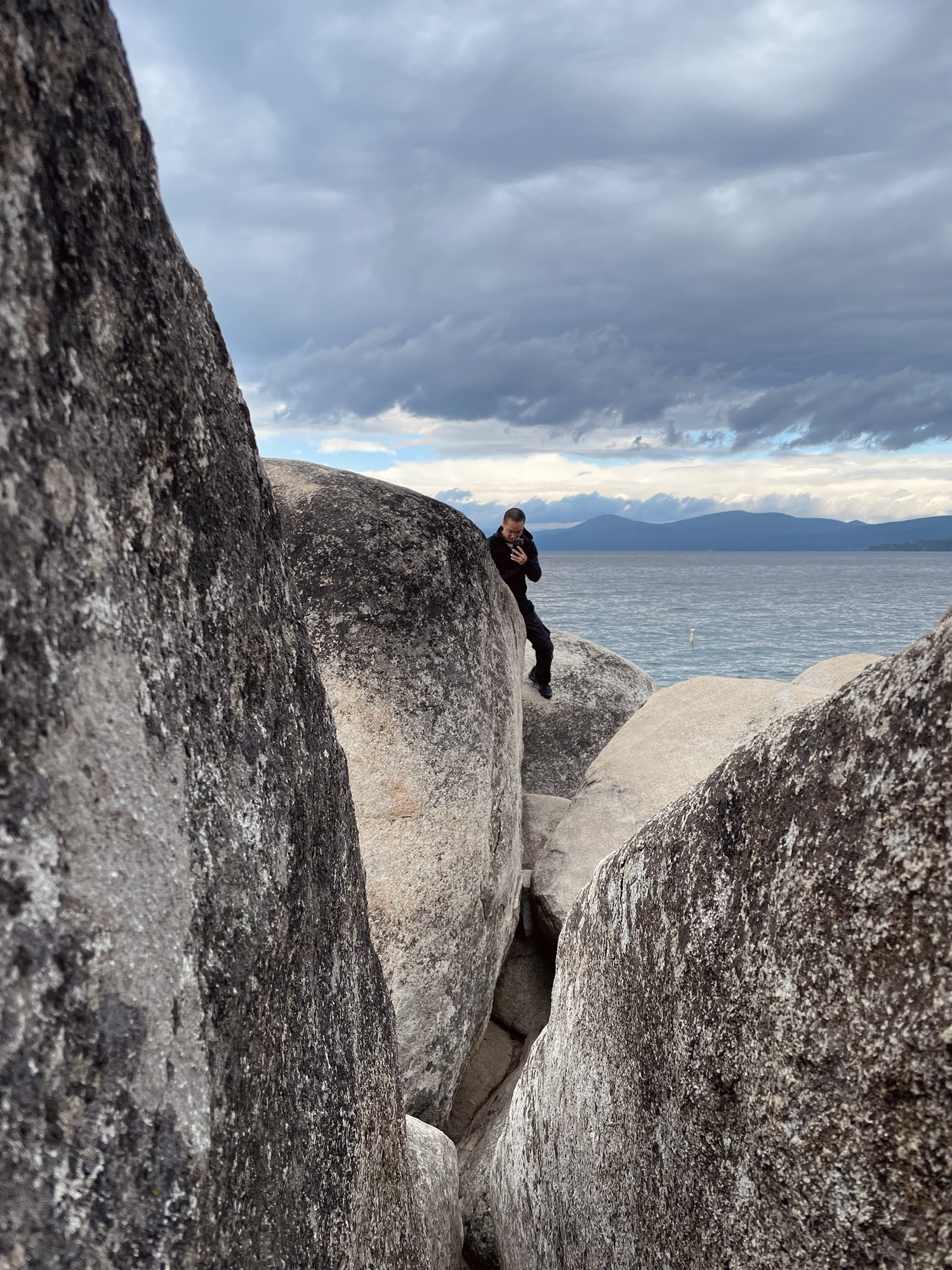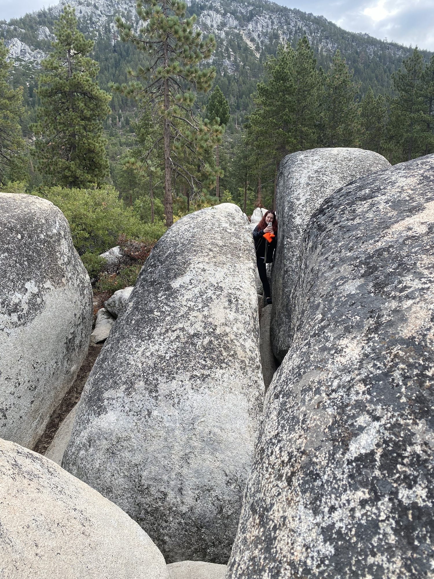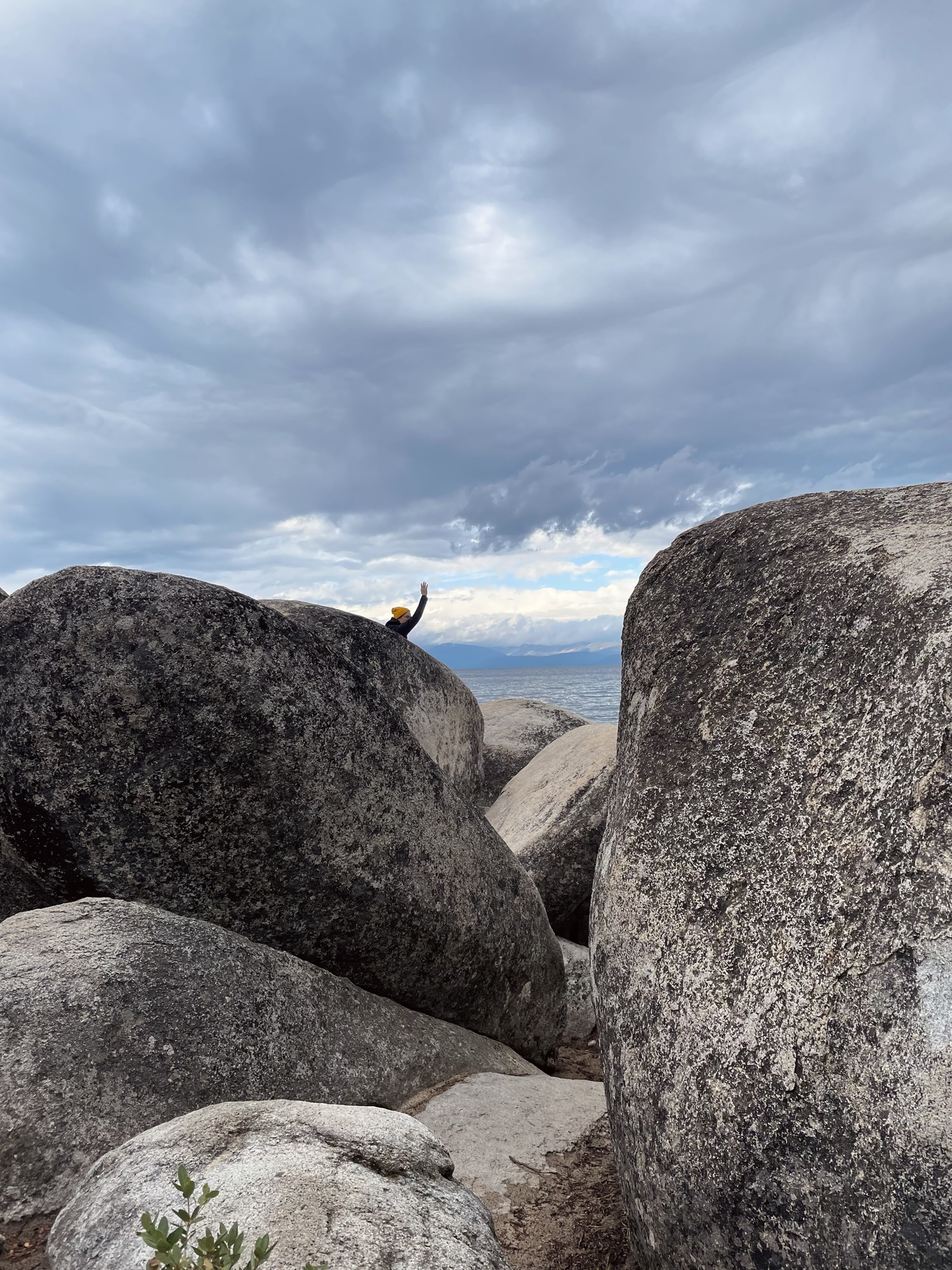 The boulders around the lake edge remind me of the boulders in Joshua Tree, and we had so much fun climbing around them and inside if the tiny caves they made everywhere.
