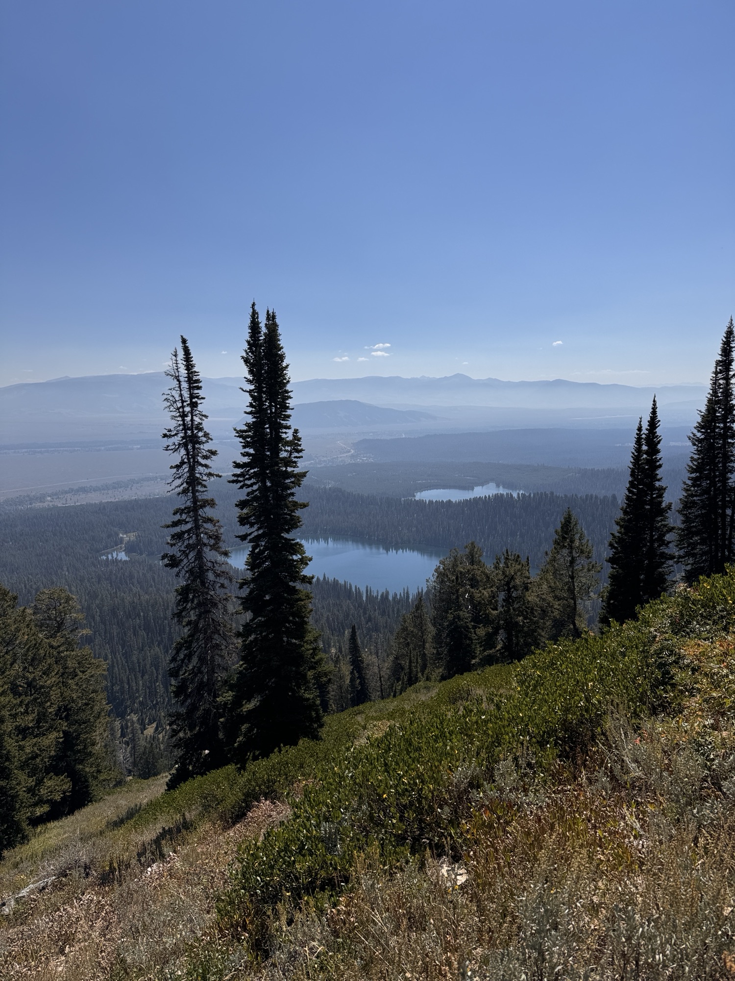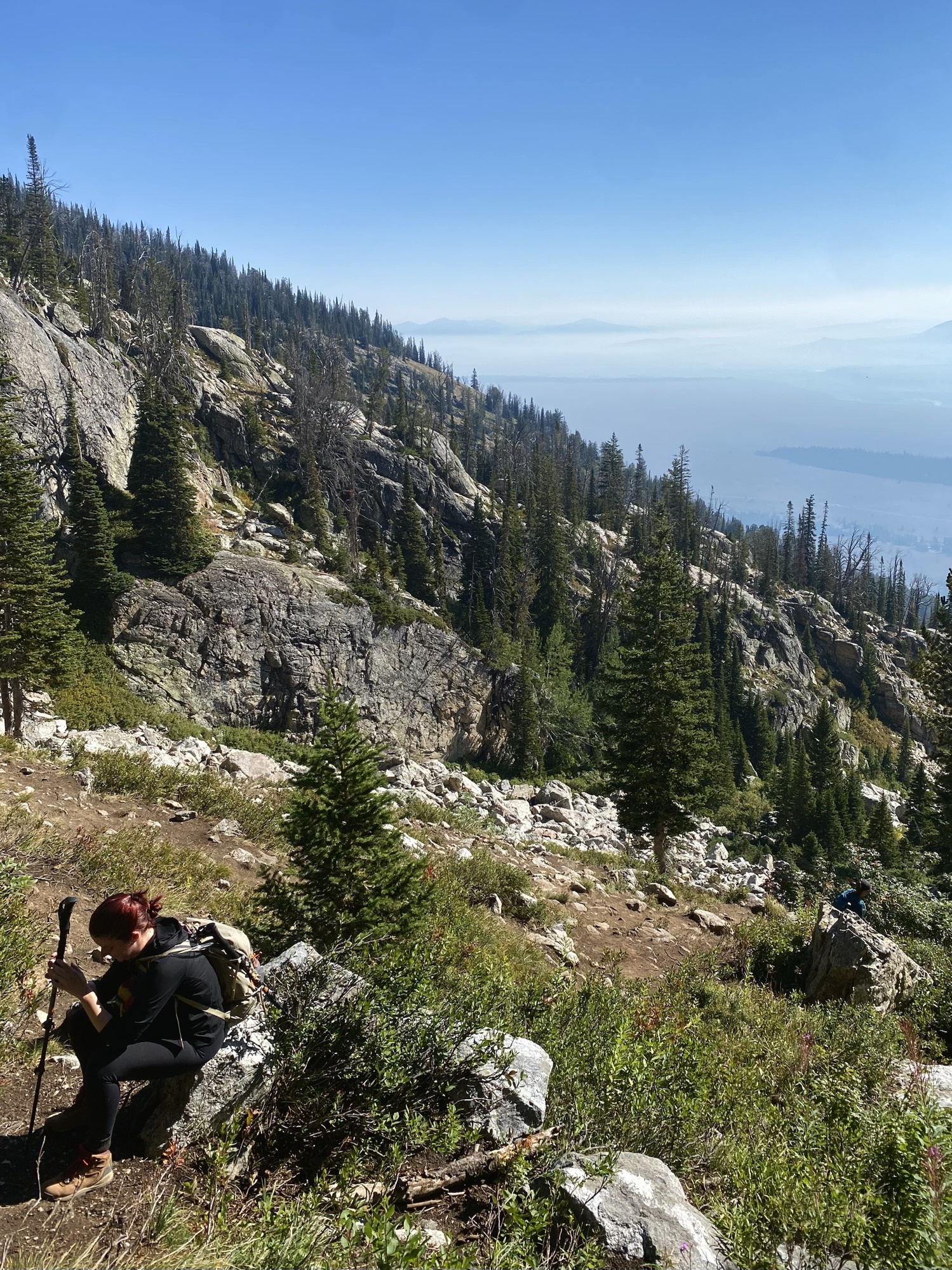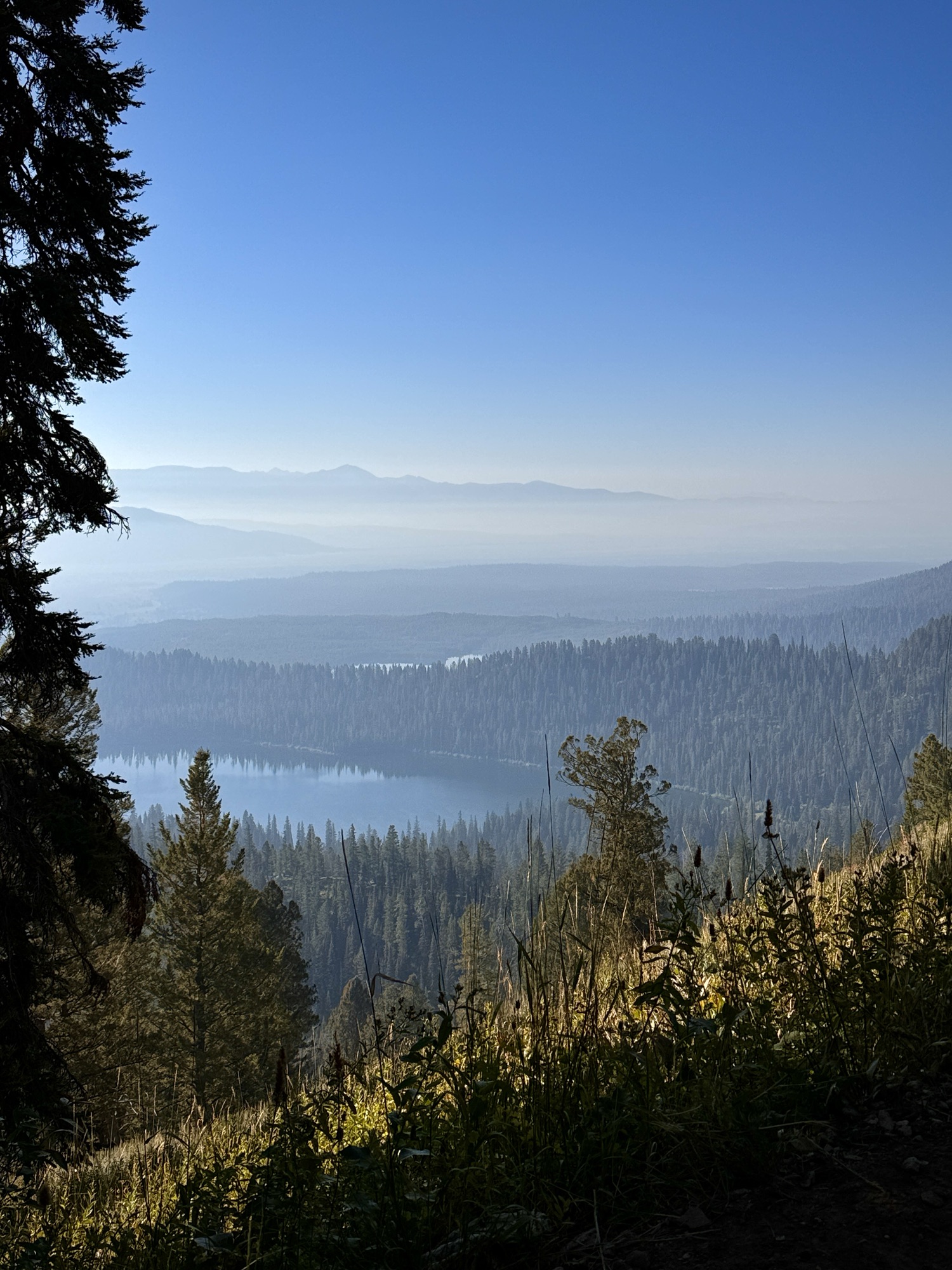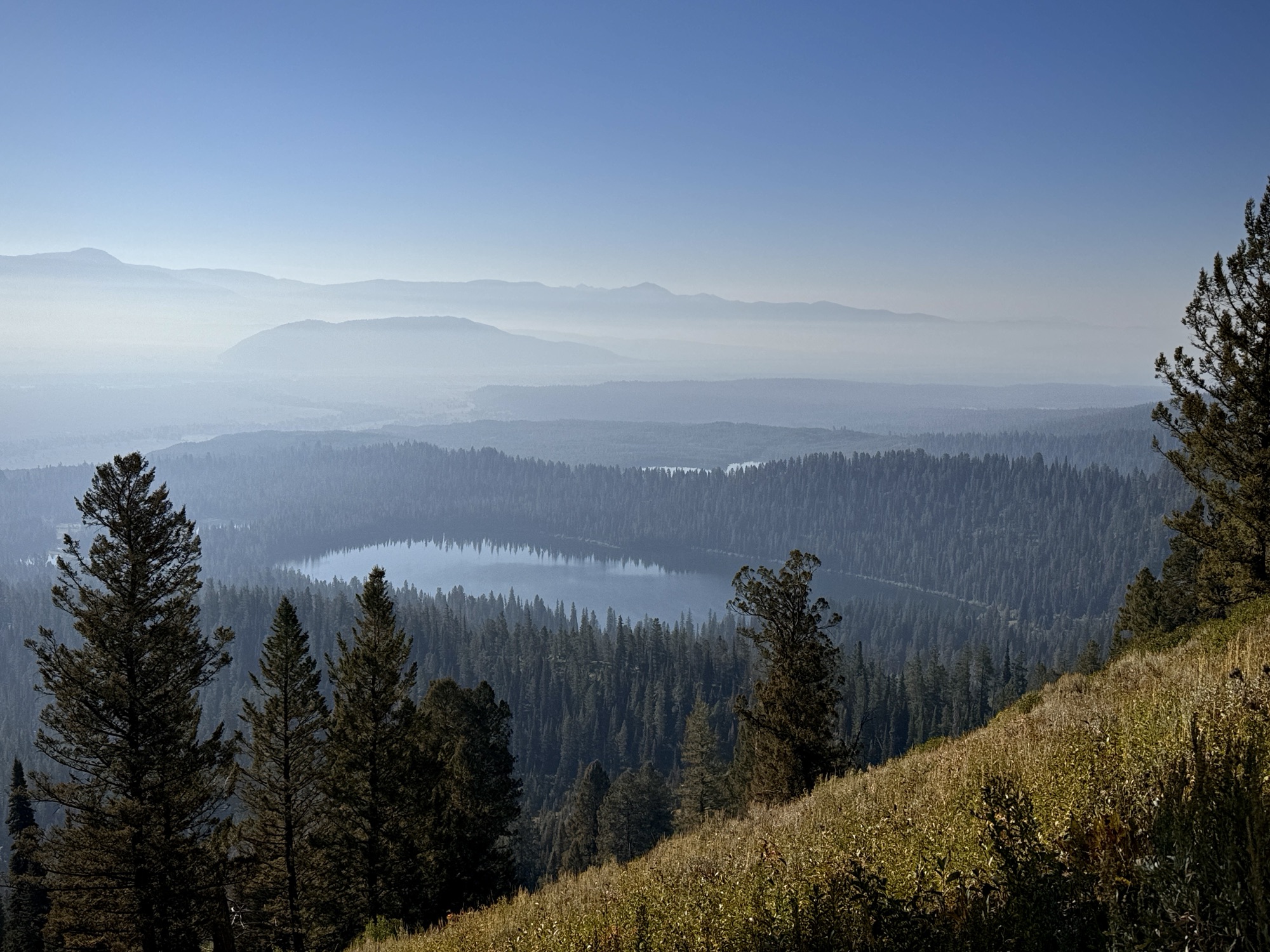 The higher you go, you get the prettiest view of Bradley and Taggart Lakes. It was SO smoky this morning because of a nearby fire that had multiplied overnight.