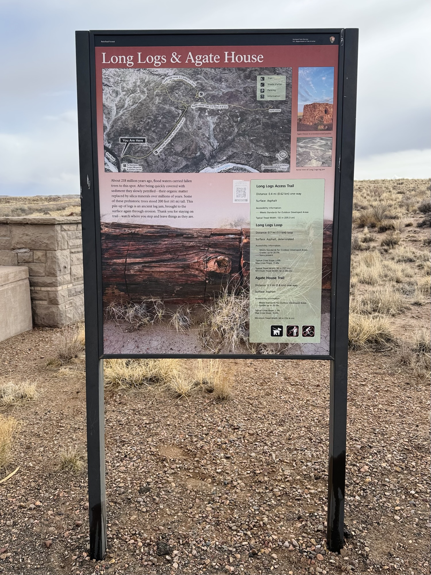 We entered the park from the south and our first stop was at the Rainbow Forest Museum. Here’s where you park to go inside, go to the Giant Logs trail, and go to the Long Logs/Agate House trail.