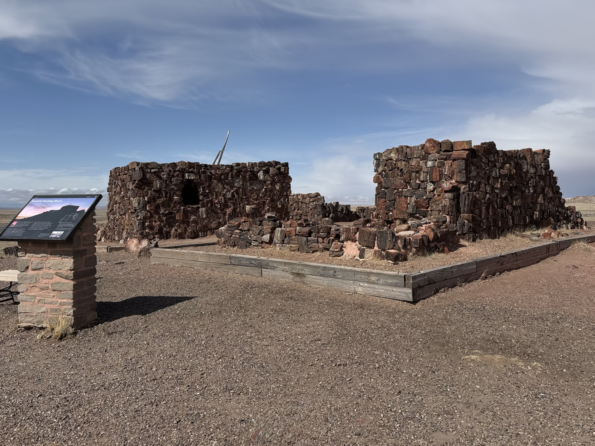 Indeed, Agate House was part of a much larger community. When first recorded by archeologists in the 1930’s, the petrified wood construction of Agate House was thought to be unique. Since then, hundreds of similar petrified wood structure sites have been found in the park, indicating a history of humanity as colorful and divers as the building blocks of Agate House.”