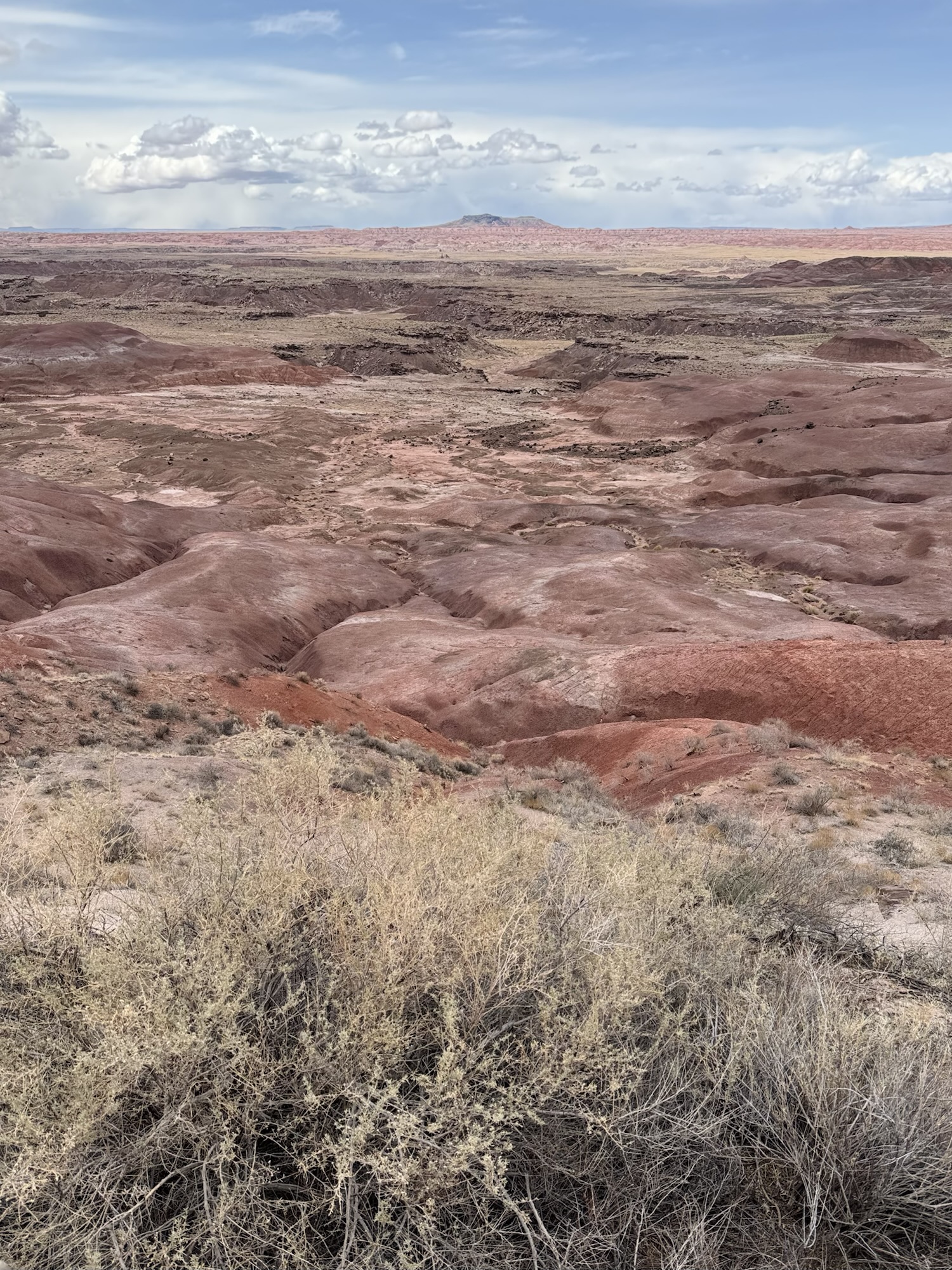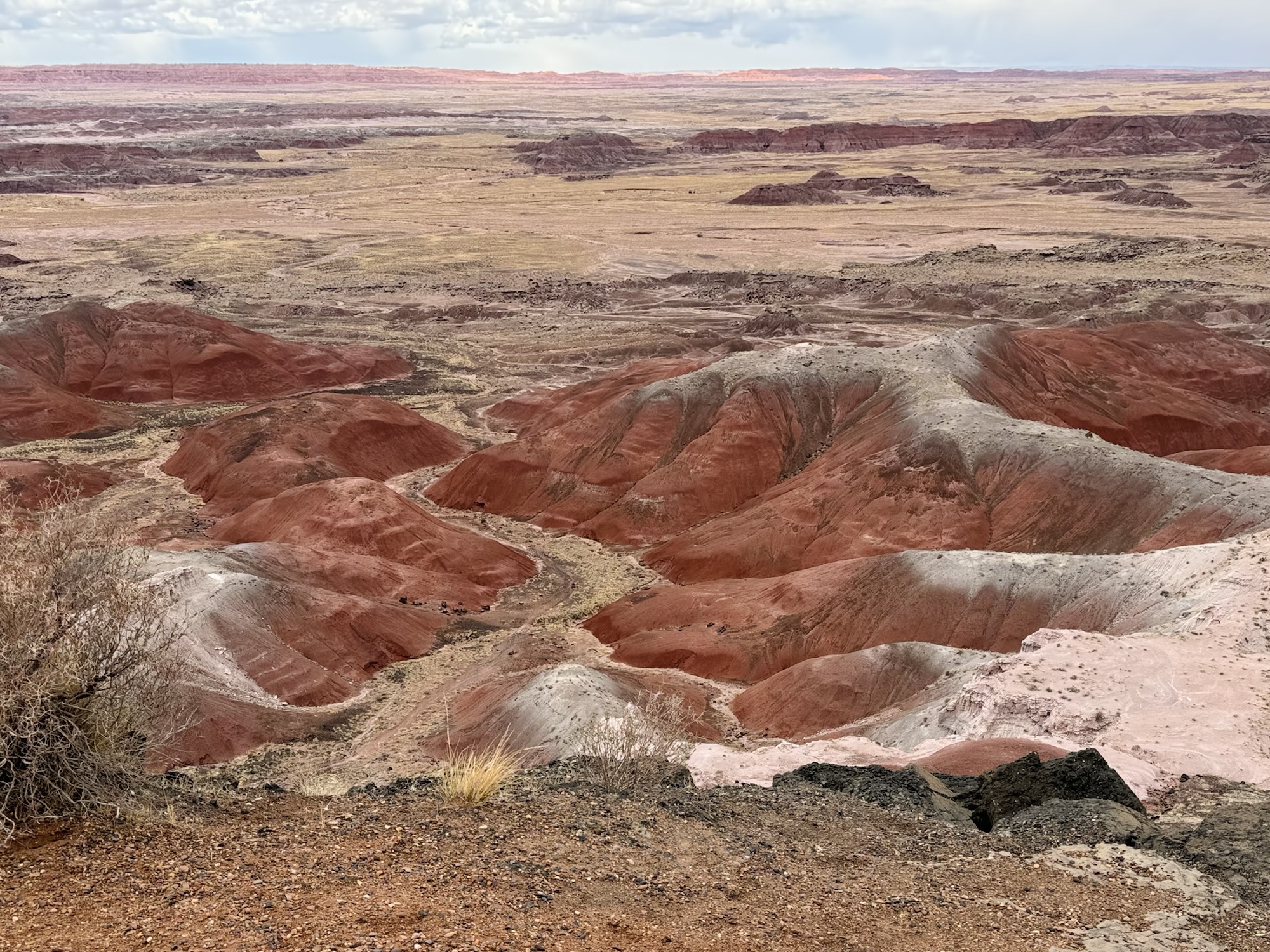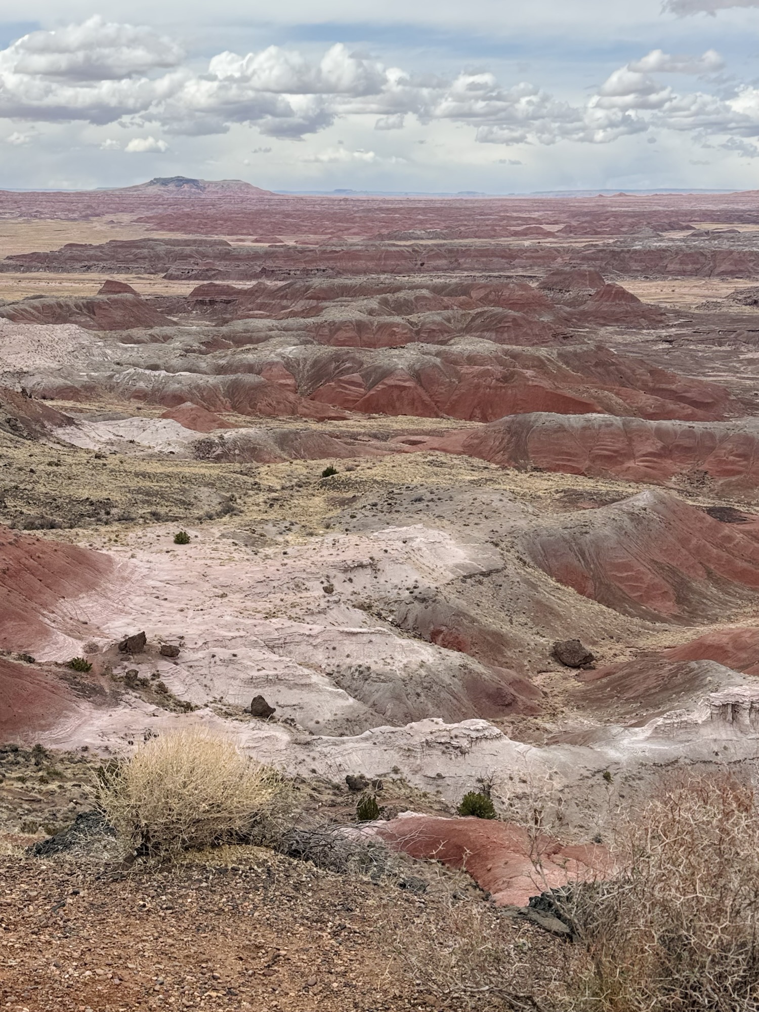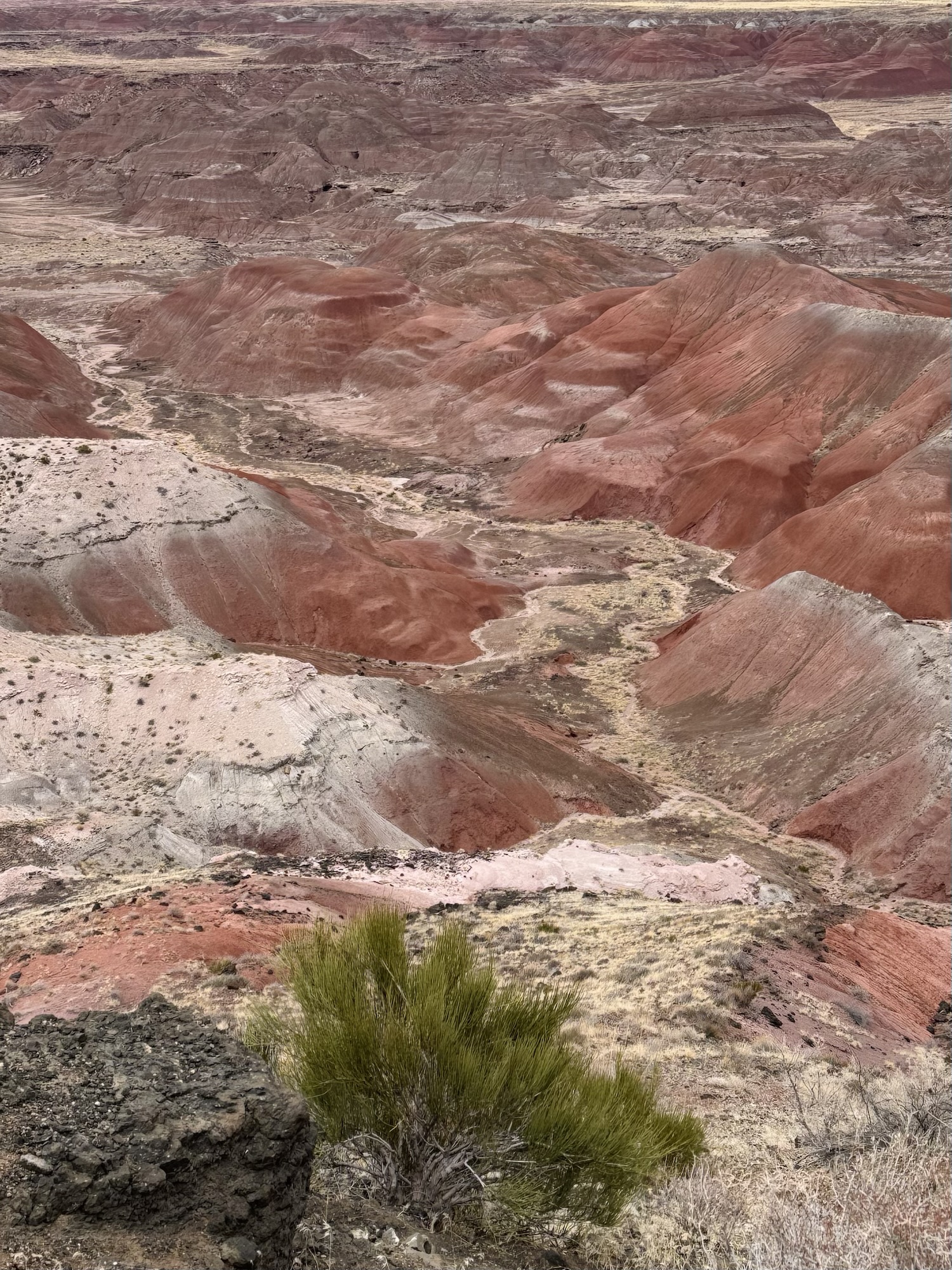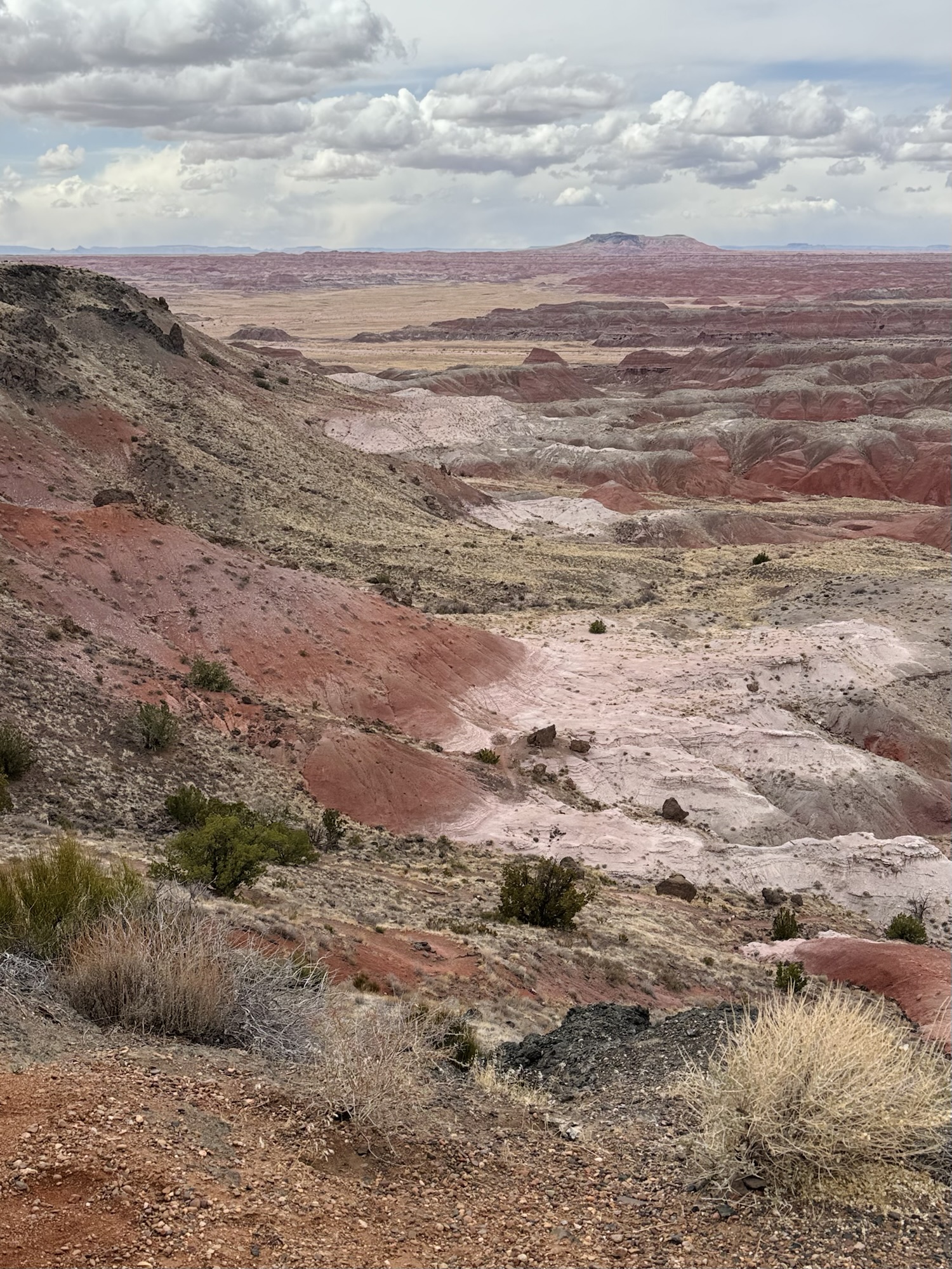 After entering Petrified Forest from the southern entrance and exploring nearly every stop along the main park road, we found ourselves smack dab in the pinkest and prettiest area yet: the Painted Desert.