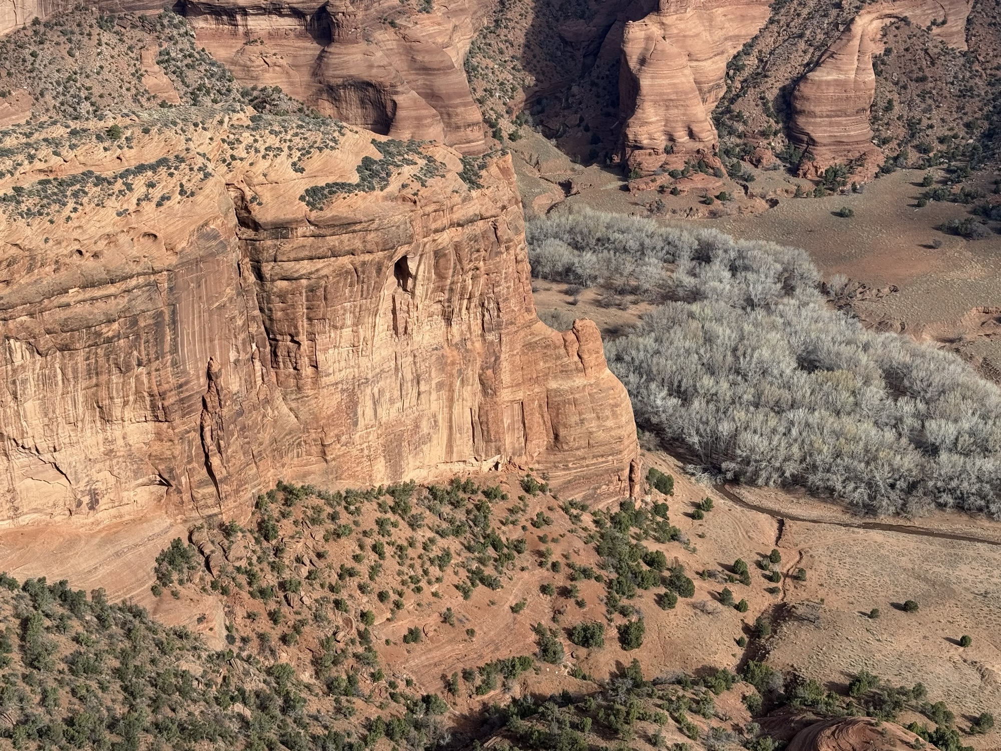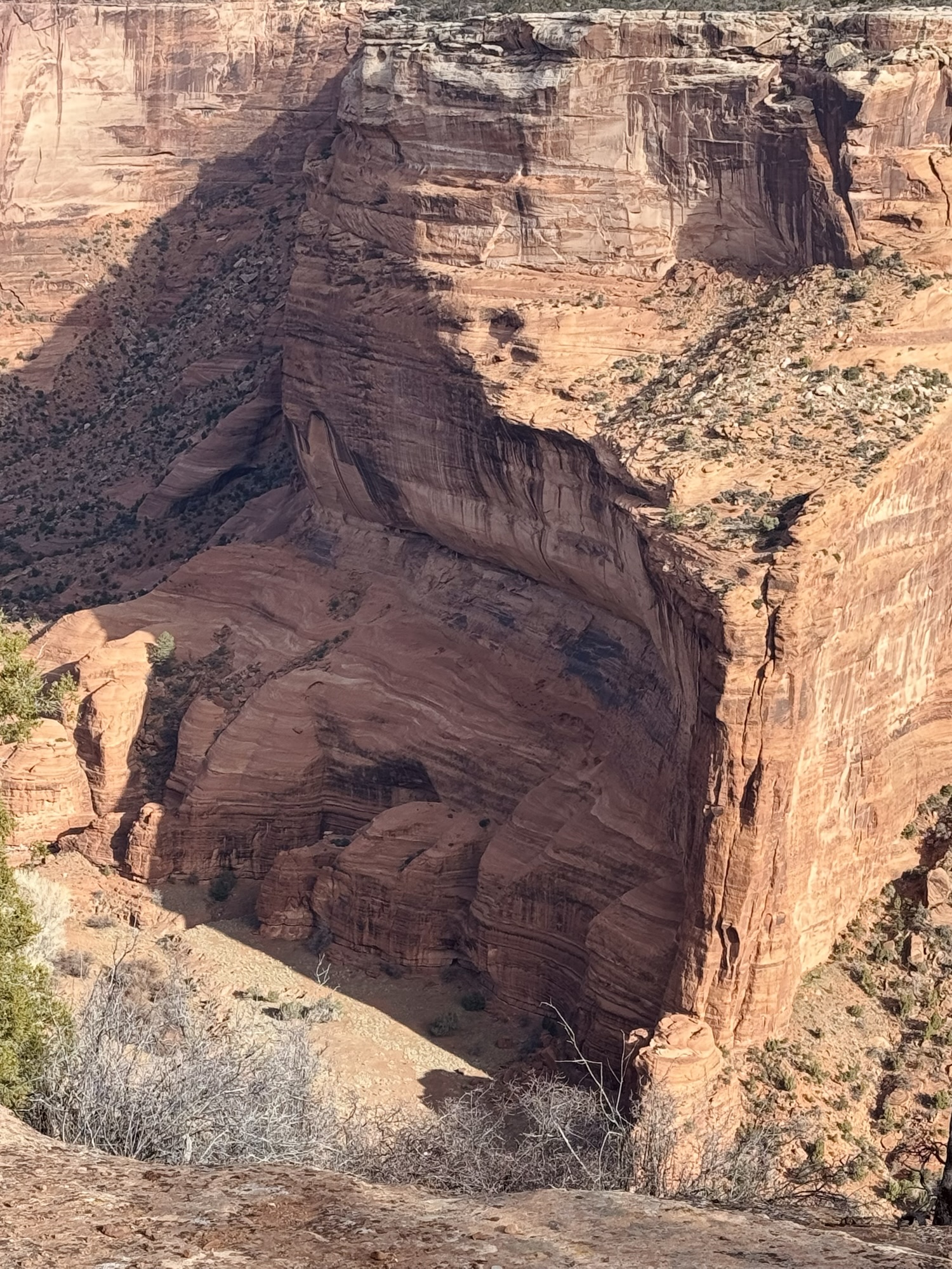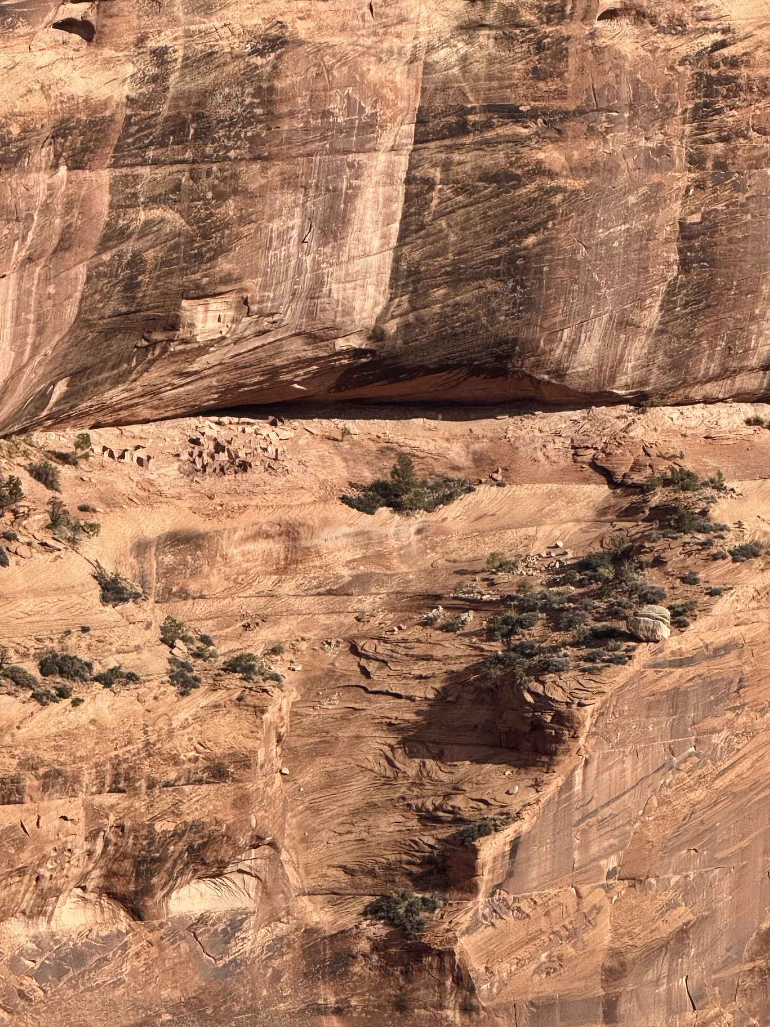 Face Rock has more binoculars and more beautiful canyon, but more bluey than Spider Rock. More intricate “ruins” within the shady cracks in the canyon wall.