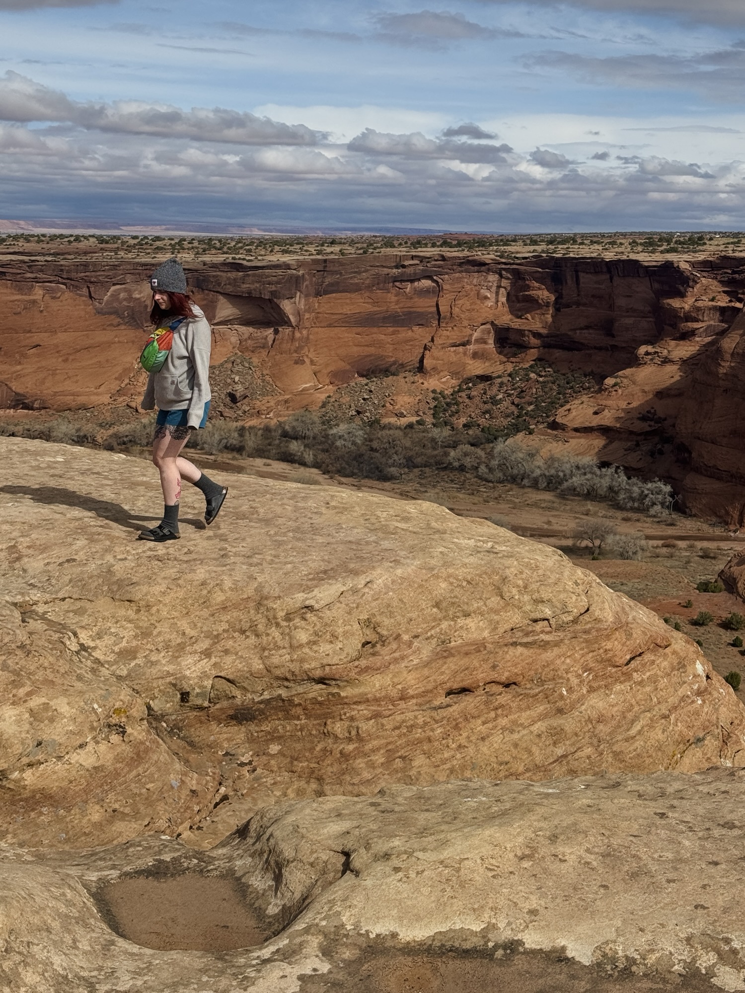The first was someone who lives in the area and paints Navajo pottery and petroglyphs from Canyon de Chelly onto large pieces of shattered sandstone. We ended up buying some art from him and just overall had the most wholesome experience.