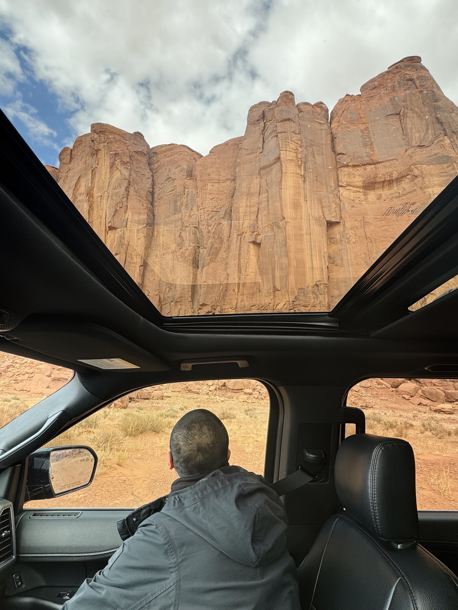 We stopped at the visitor center to get out mementos and scope out the food options. It’s here that has the most beautiful overview of Monument Valley. You can view the area from a million angles: inside, outside, from the parking lot, and from inside the gift shop and every other building.
