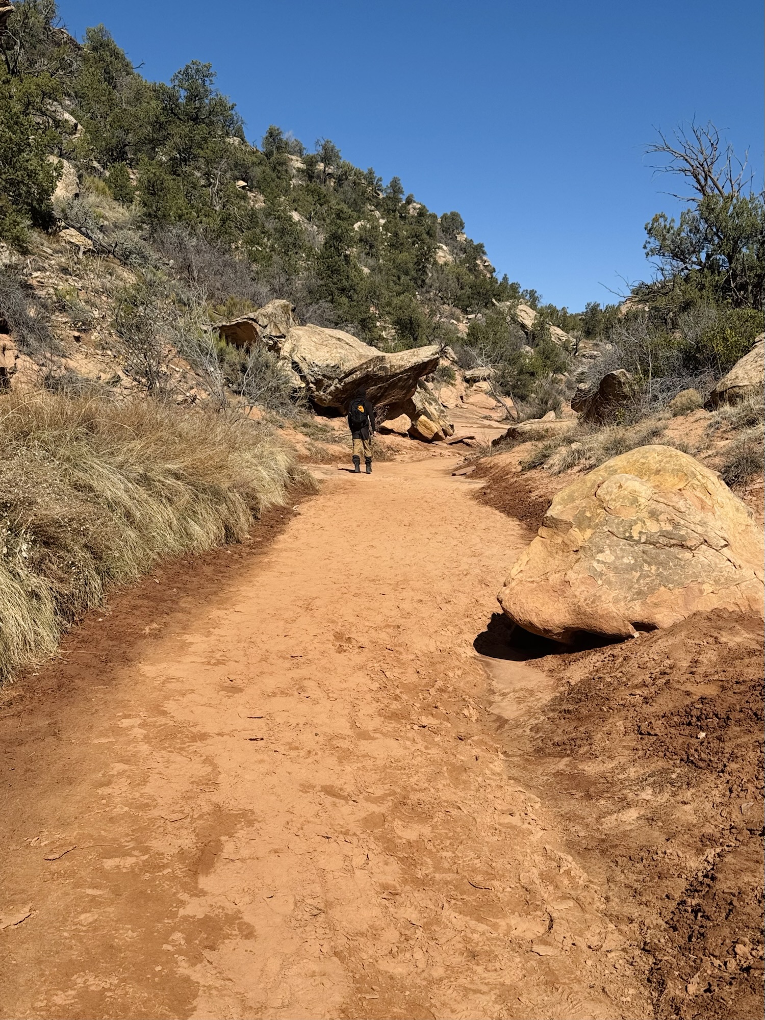 After having every beautiful stop to ourselves along the scenic drive of Natural Bridges National Monument, we backtracked onto the main road and found the elusive driveway to the Mule Canyon trailhead which would lead us to House on Fire.