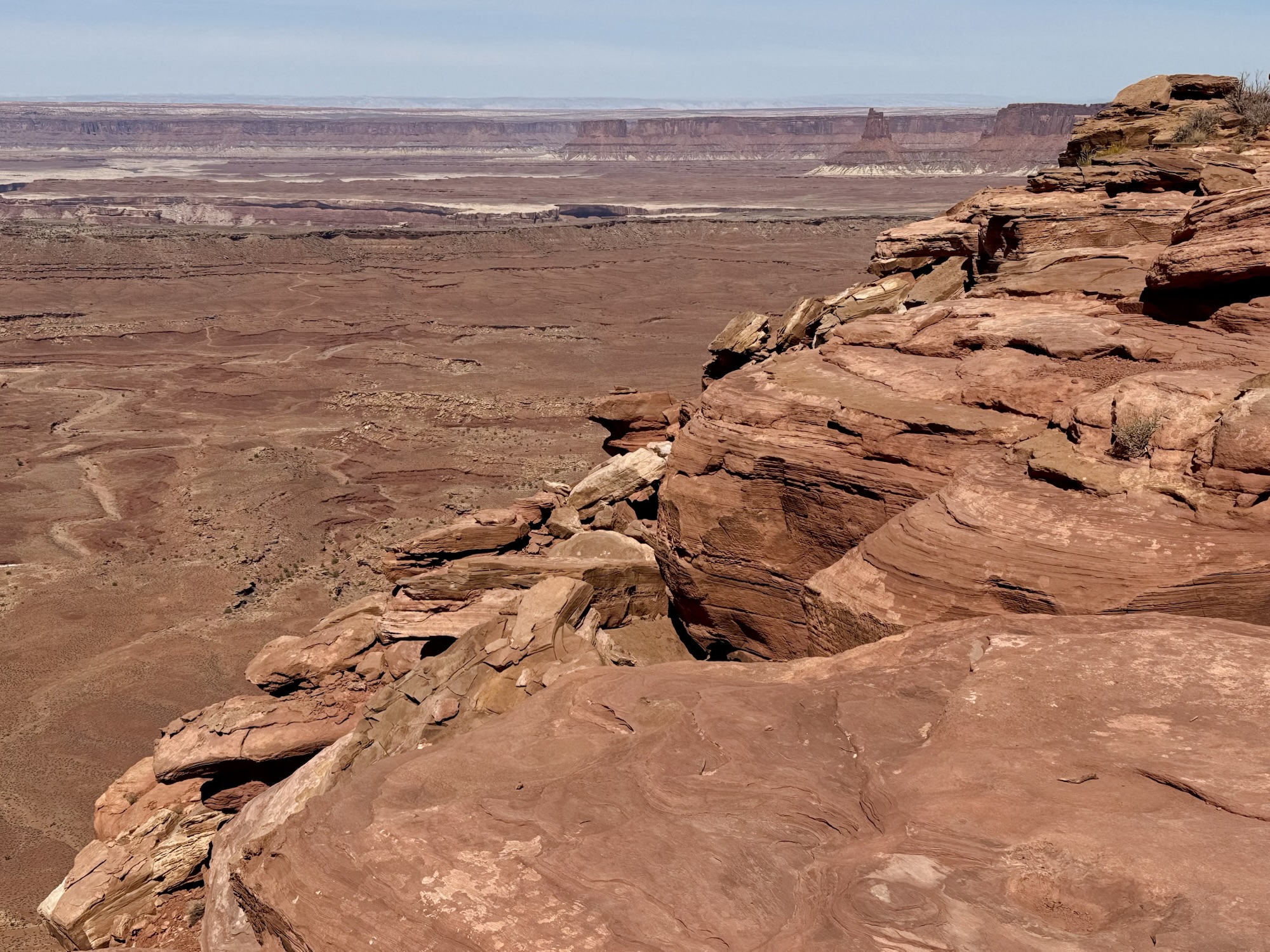 - White Rim Sandstone: A hard layer of white sandstone that forms a sharply defined rim above the lower level canyons. Made of ancient coastal sand dunes, the White Rim lies about 1,100 below this point.