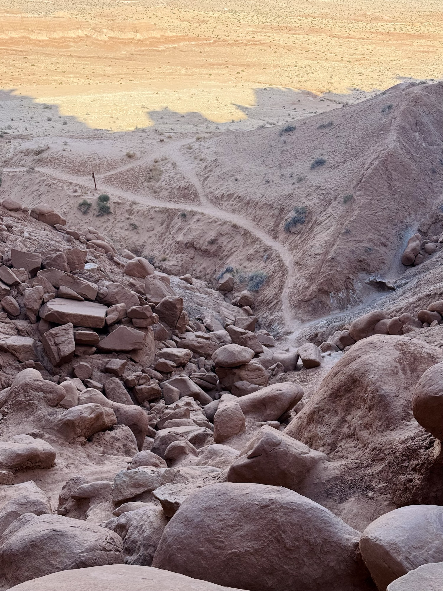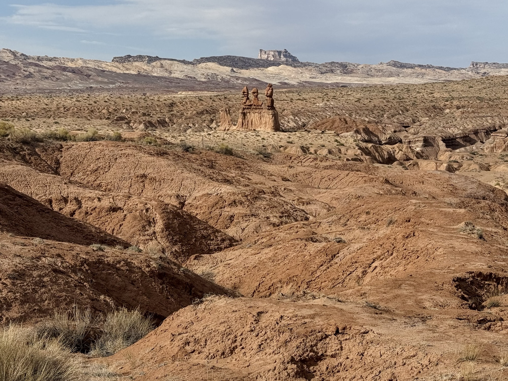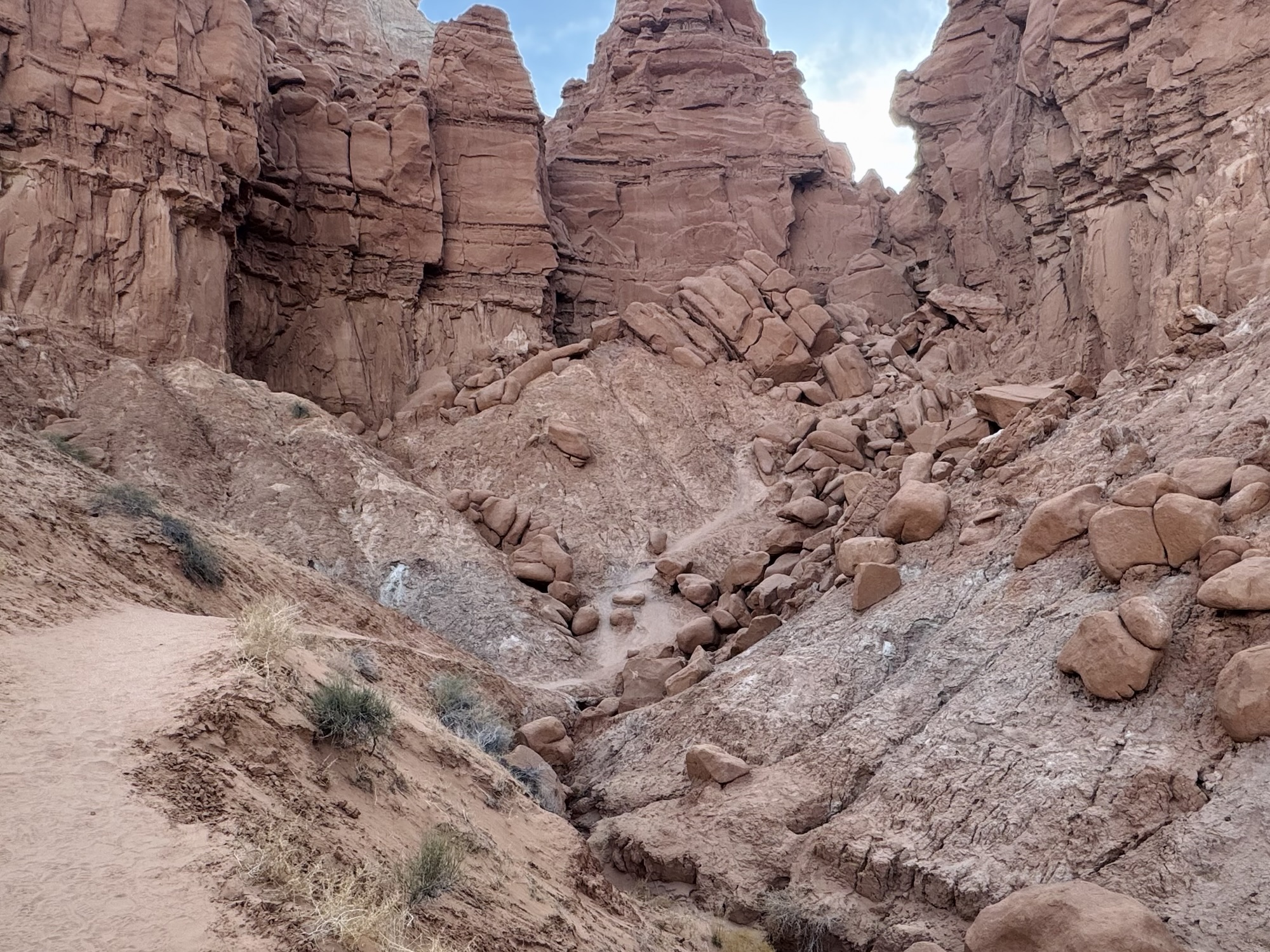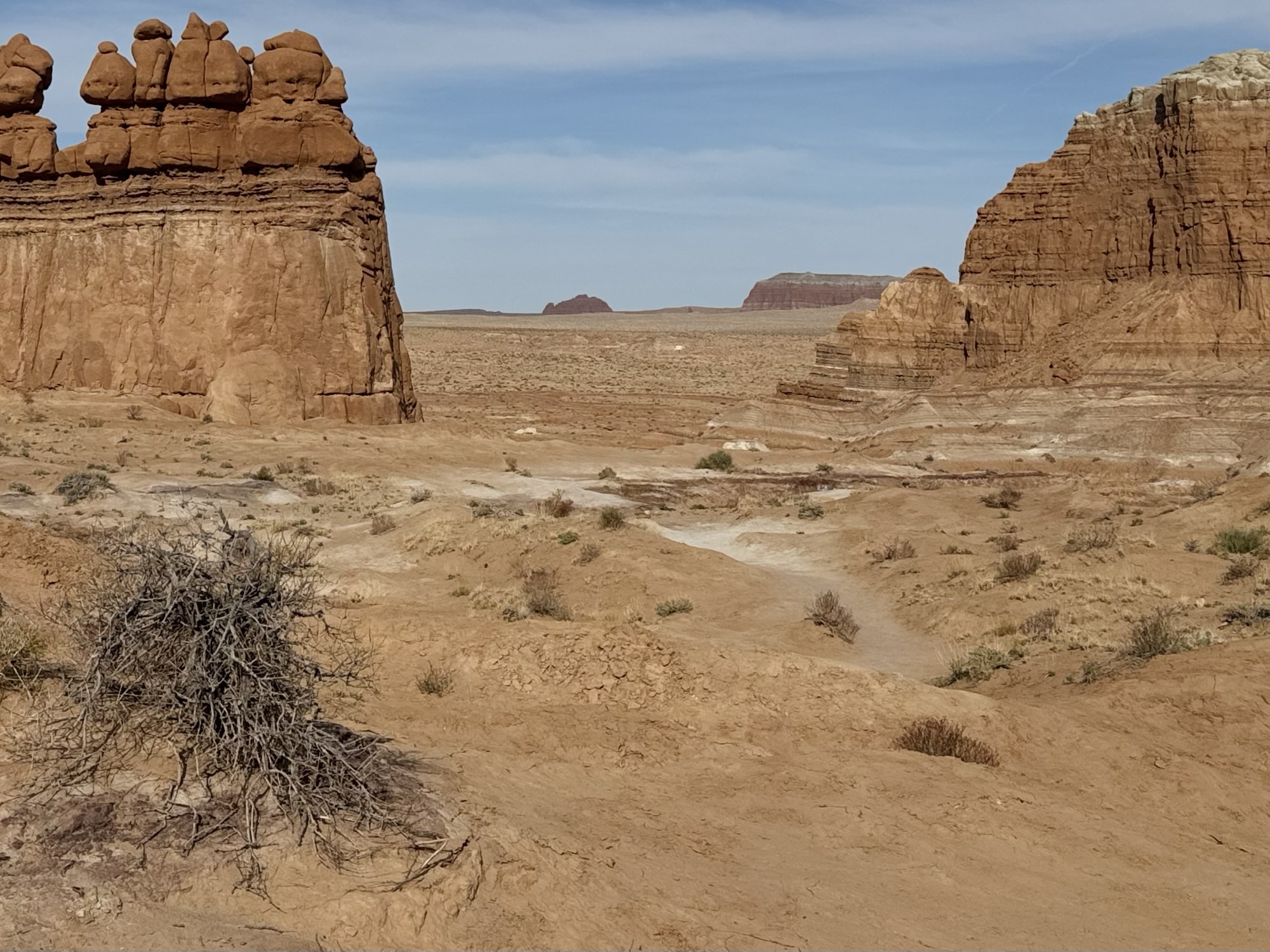 We drove in to the park and headed to the trailhead for Valley of the Goblins which would be our home base for both things we wanted to do, the first being a 2.5 mile roundtrip to the Goblin’s Lair. At the visitor center’s tiny parking lot, there’s a sign saying it’s the trailhead for the Goblin’s Lair. You can do that too, but I liked our way better and it leaves you car in a way more centralized place.