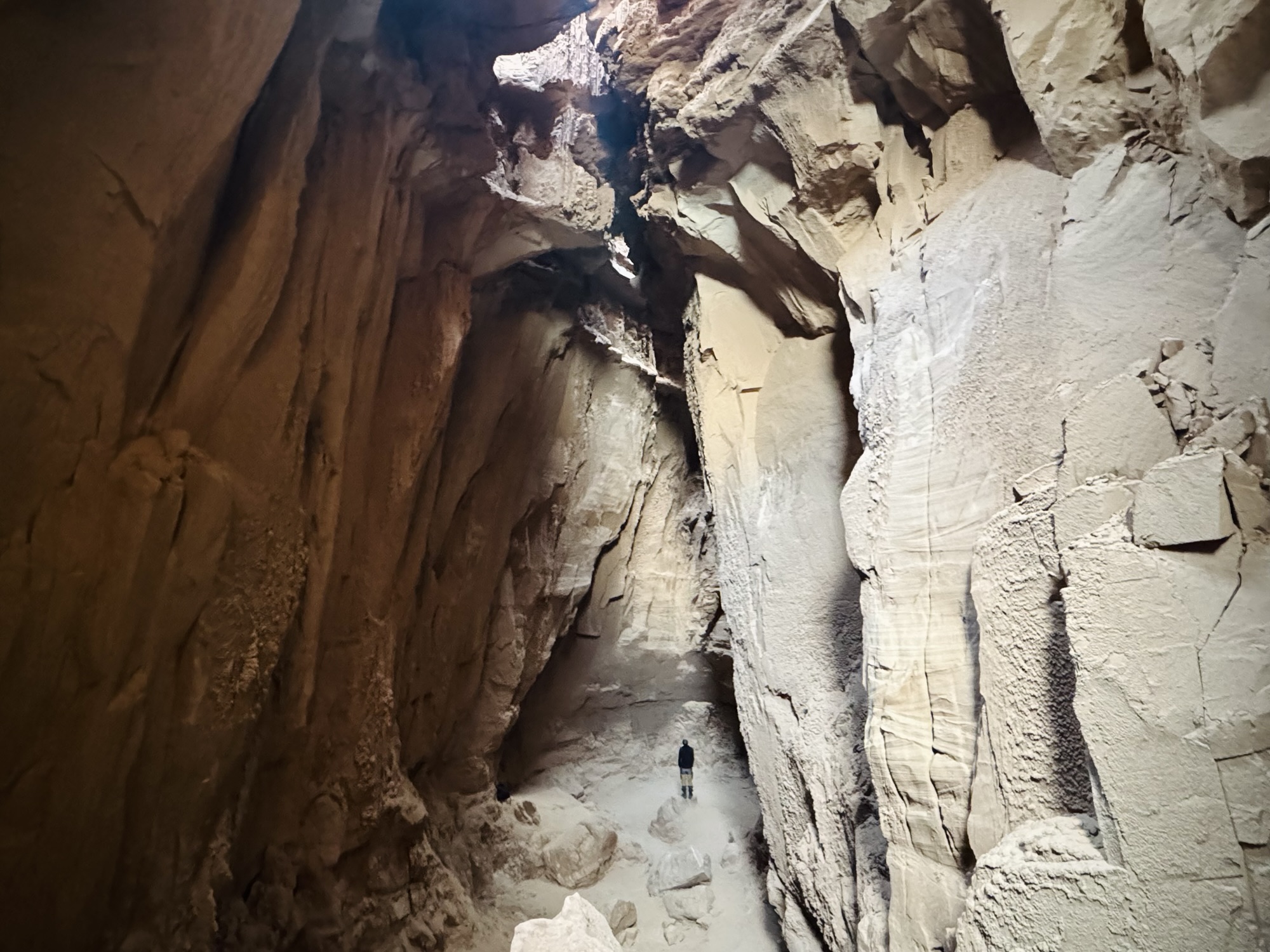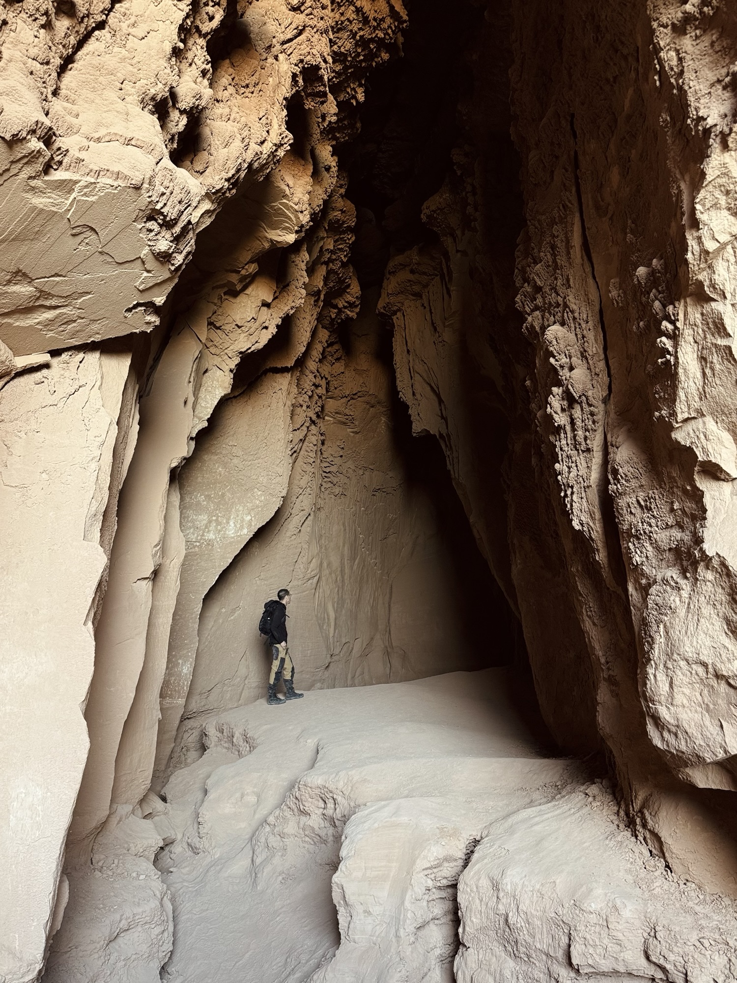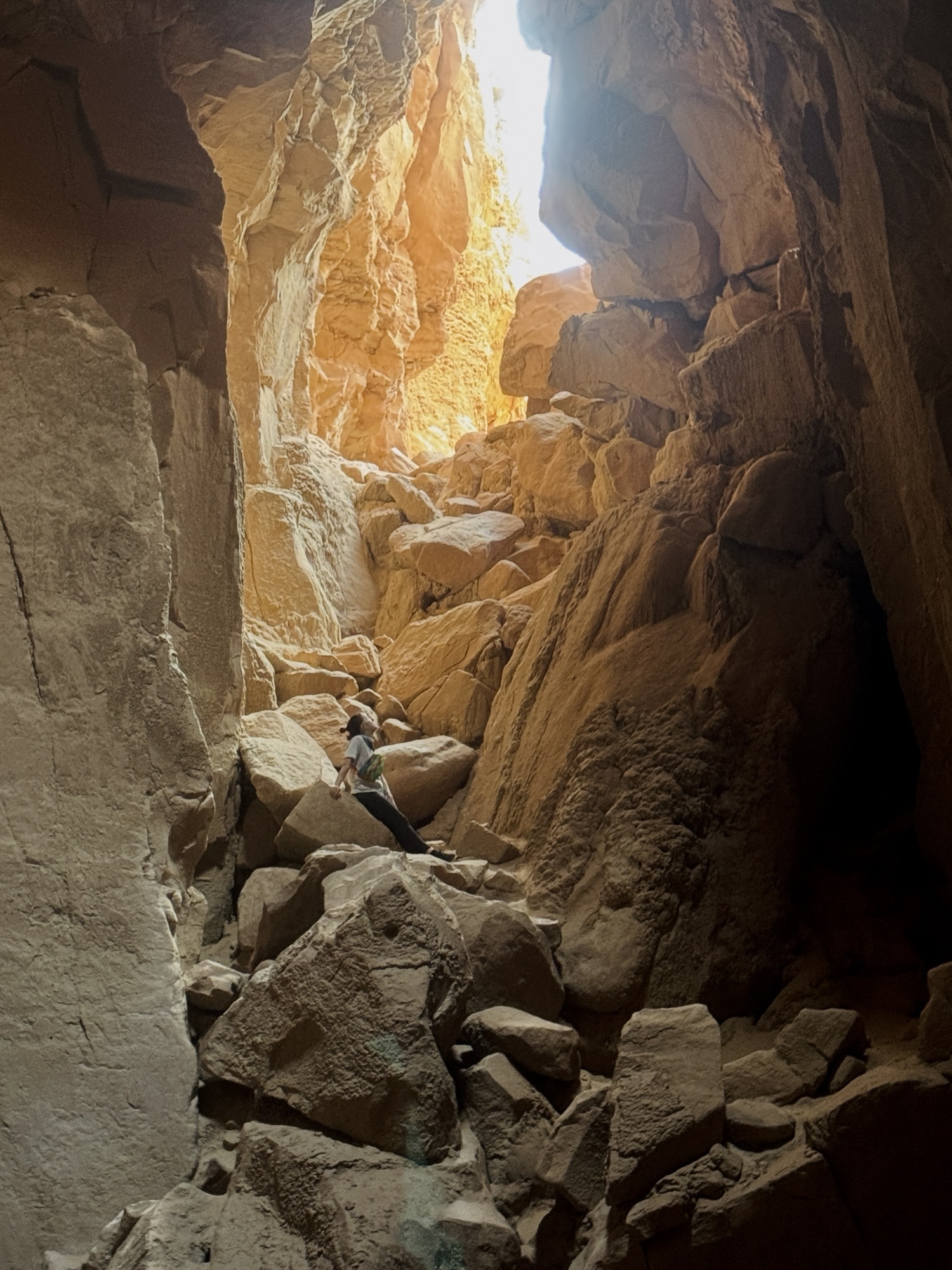 When I saw that squiggly trail disappear into the pile of rocks, that’s when I realized that we were gonna have to do some rock scrambling to get into this cave. Our journey uphill to the mouth of the cave can’t adequately be done justice by photo, but it was *not* the most fun I’ve ever had haha. There were a few people up there when we arrived, and a couple with their toddler who’d actually descended into the cave from the top. Crazy.
