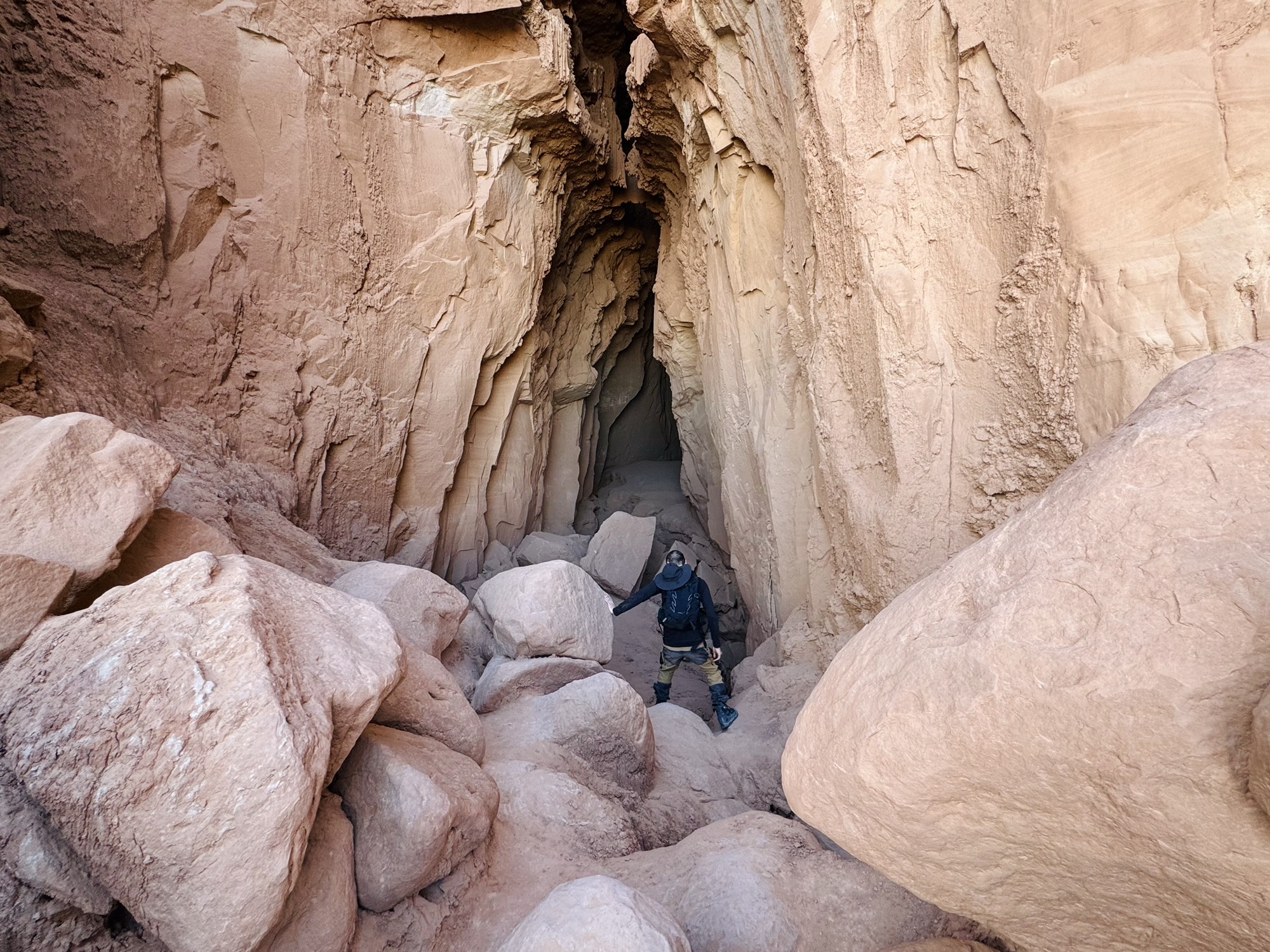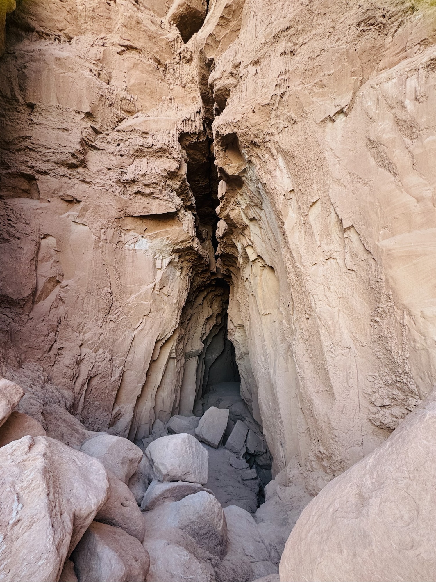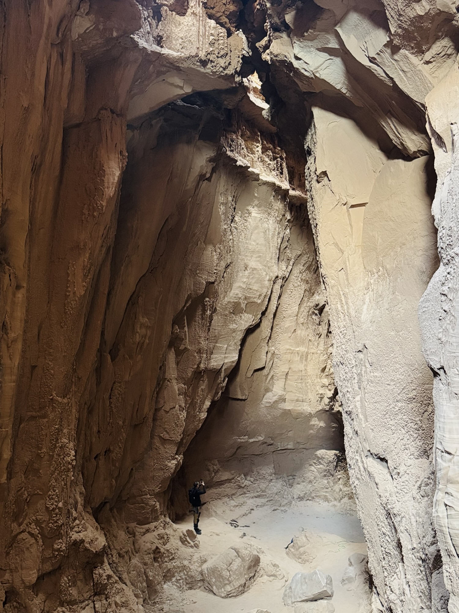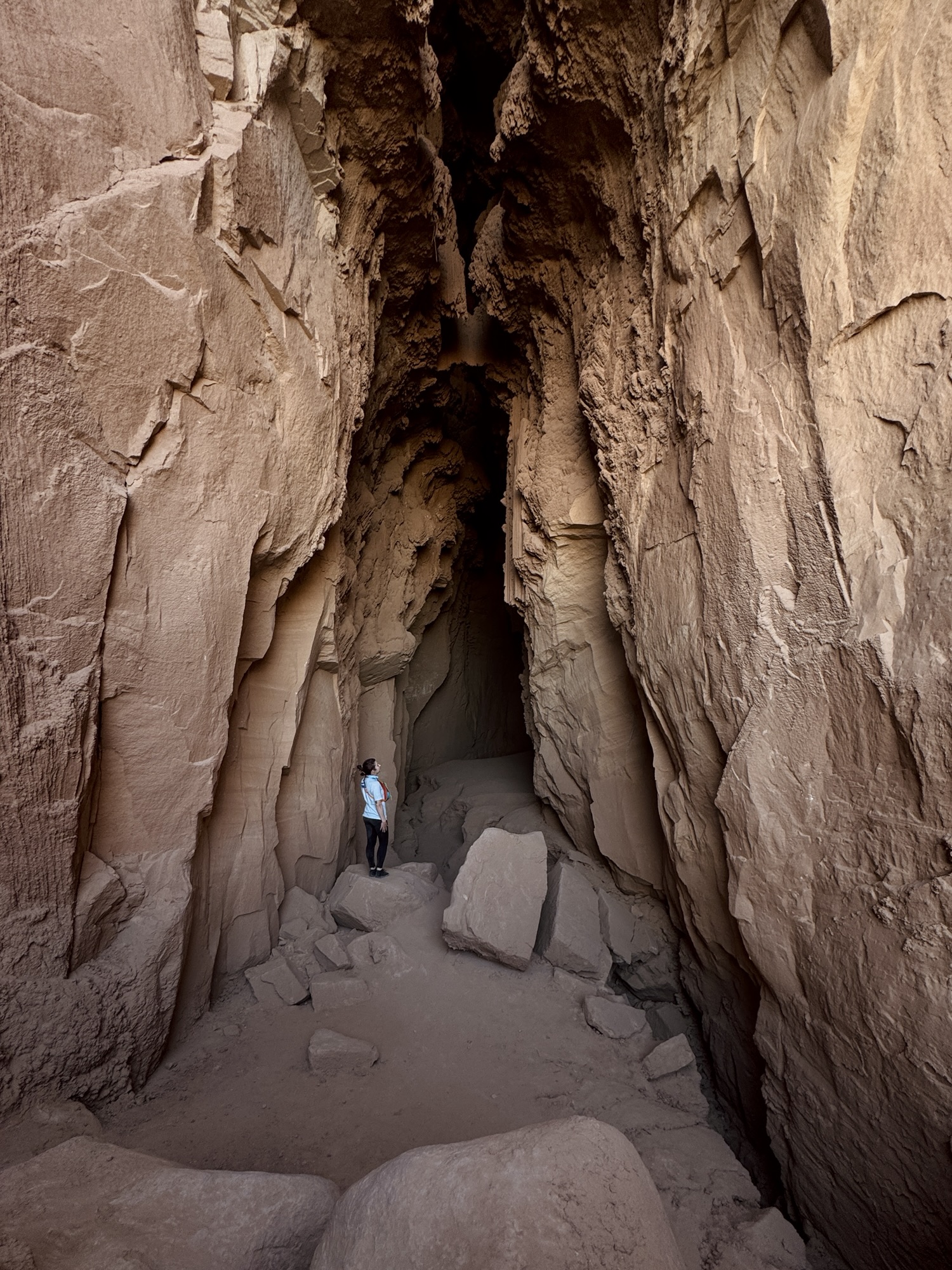 When I saw that squiggly trail disappear into the pile of rocks, that’s when I realized that we were gonna have to do some rock scrambling to get into this cave. Our journey uphill to the mouth of the cave can’t adequately be done justice by photo, but it was *not* the most fun I’ve ever had haha. There were a few people up there when we arrived, and a couple with their toddler who’d actually descended into the cave from the top. Crazy.