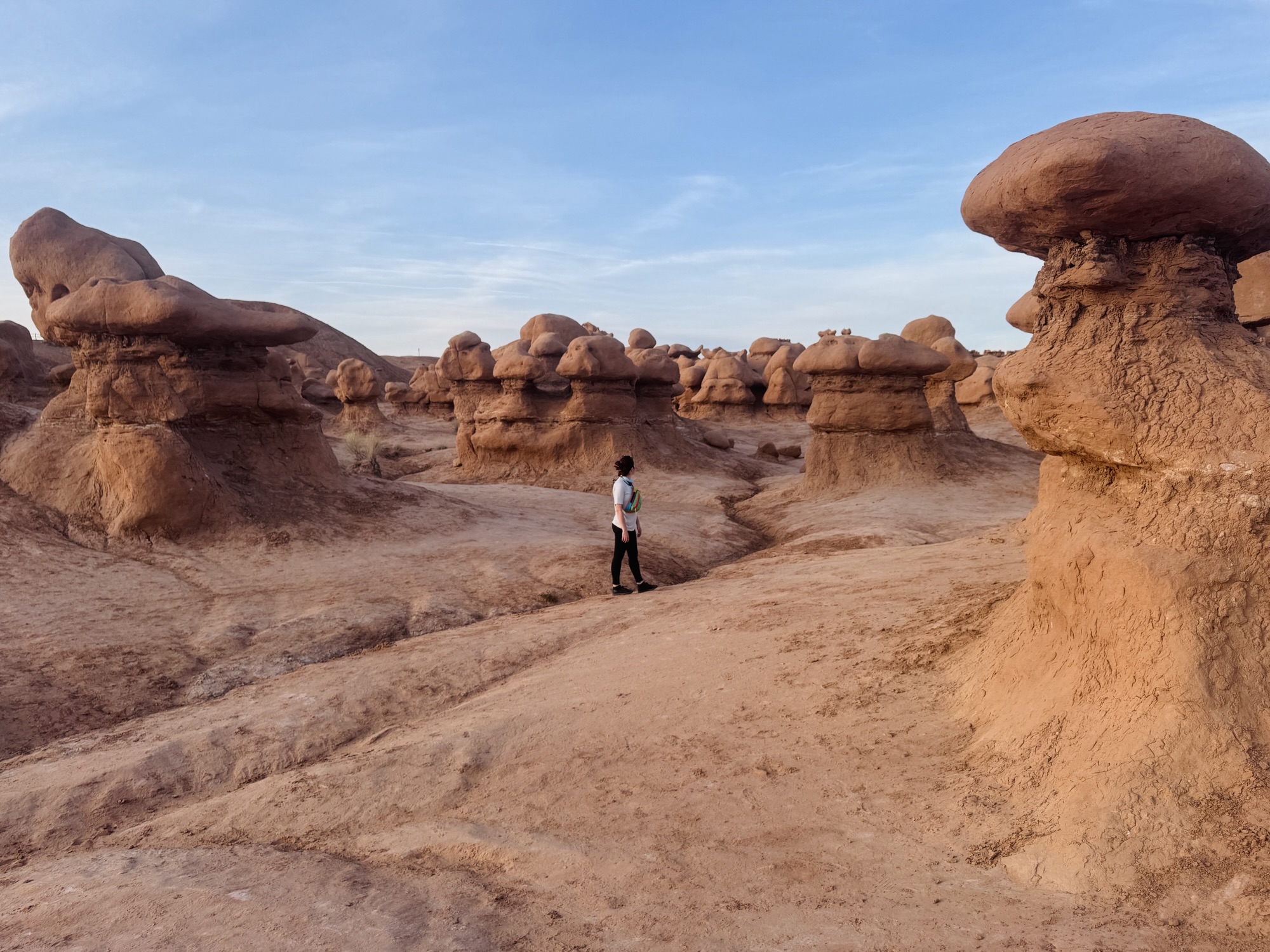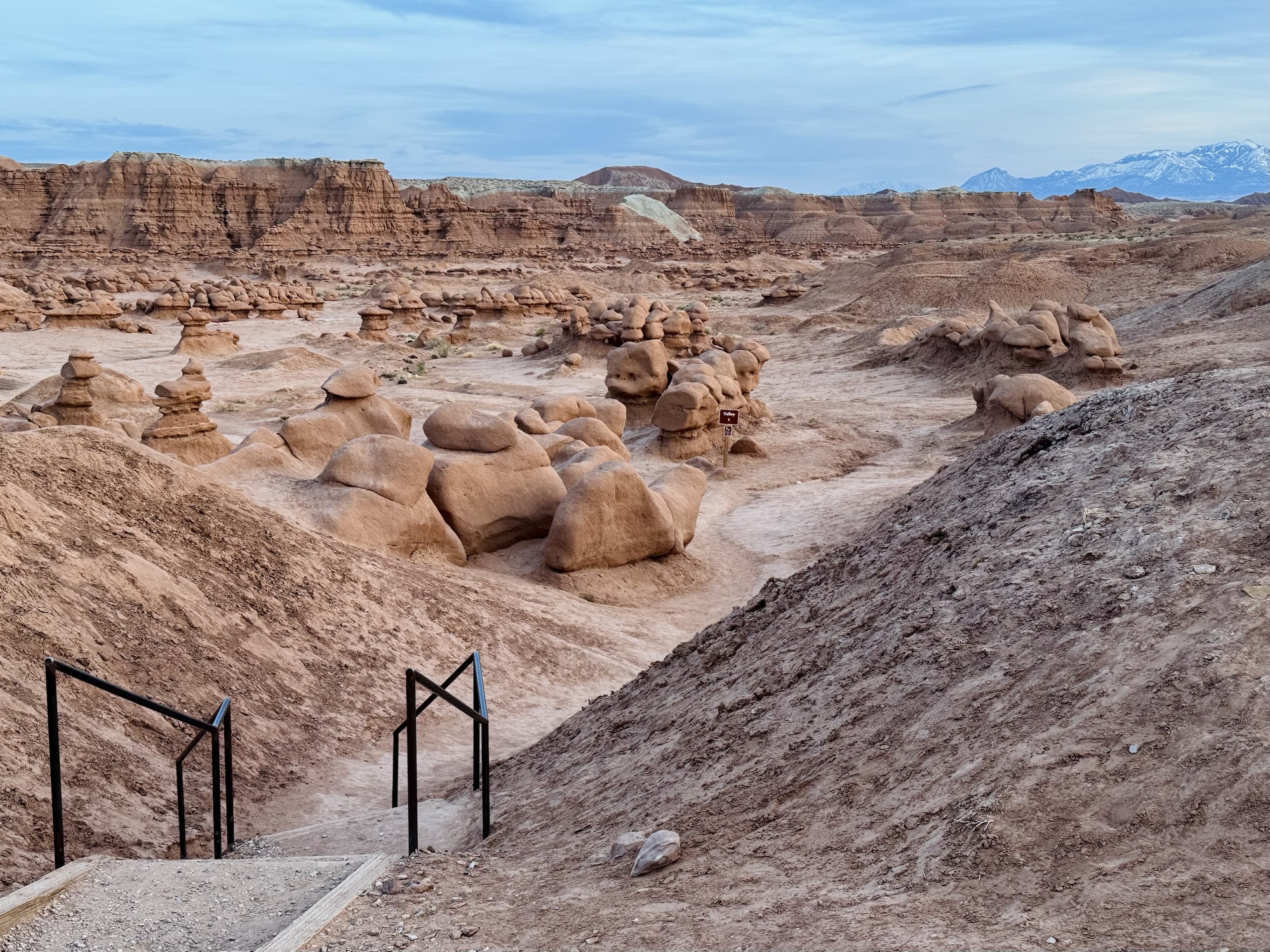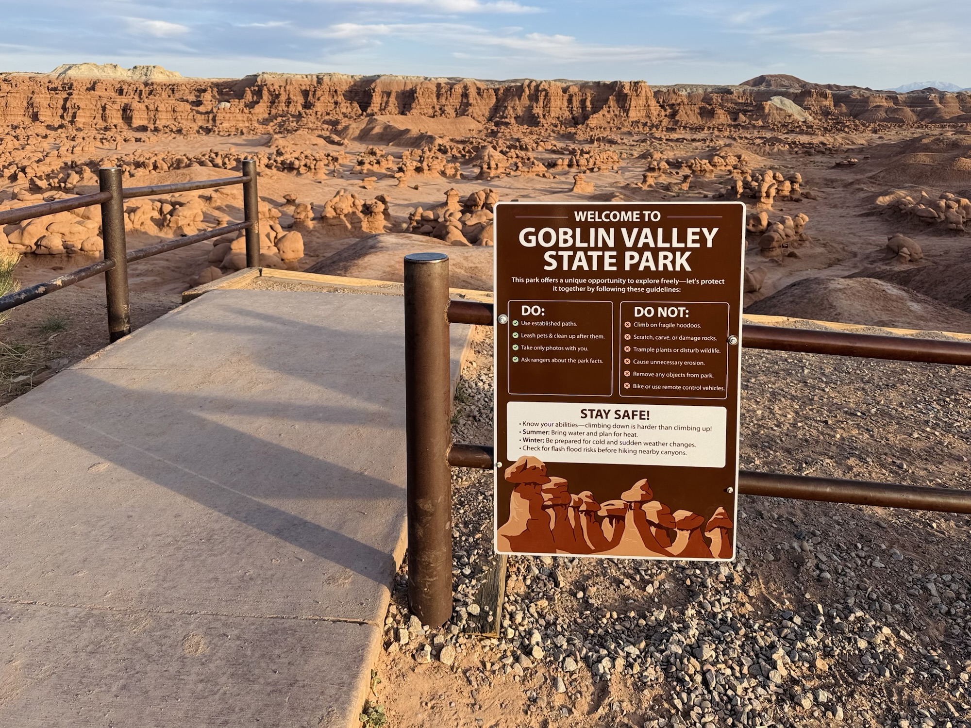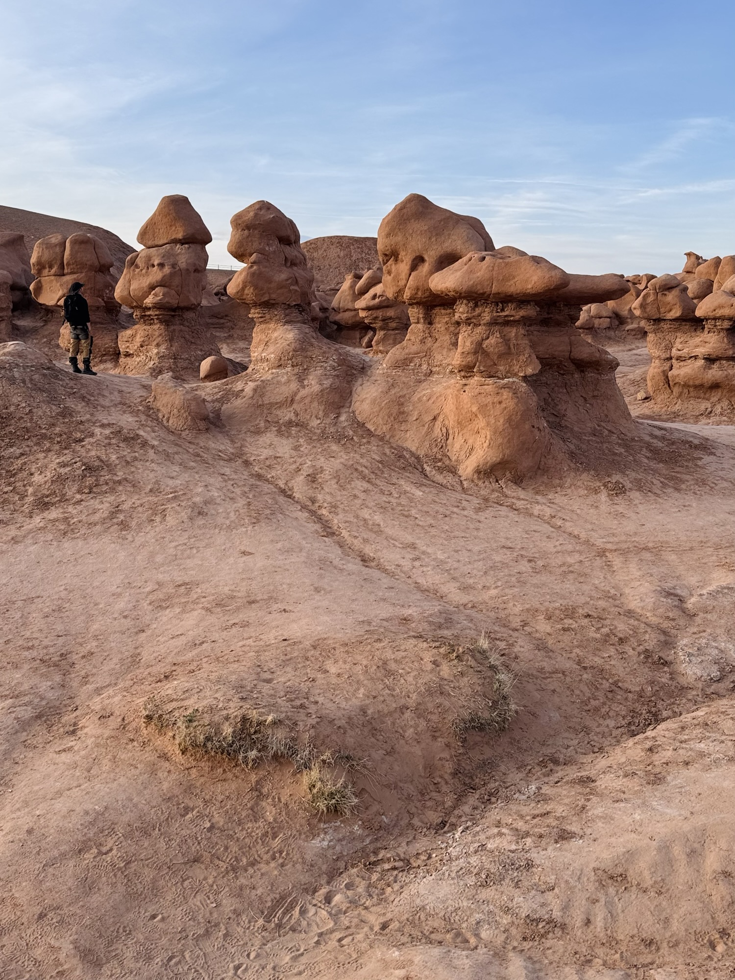 We arrived at Goblin Valley State Park by 5pm, hung out on the Goblin’s + Goblette’s Lairs trail for a couple hours, and finally descended the stairs into the Valley of the Goblins by 7pm.