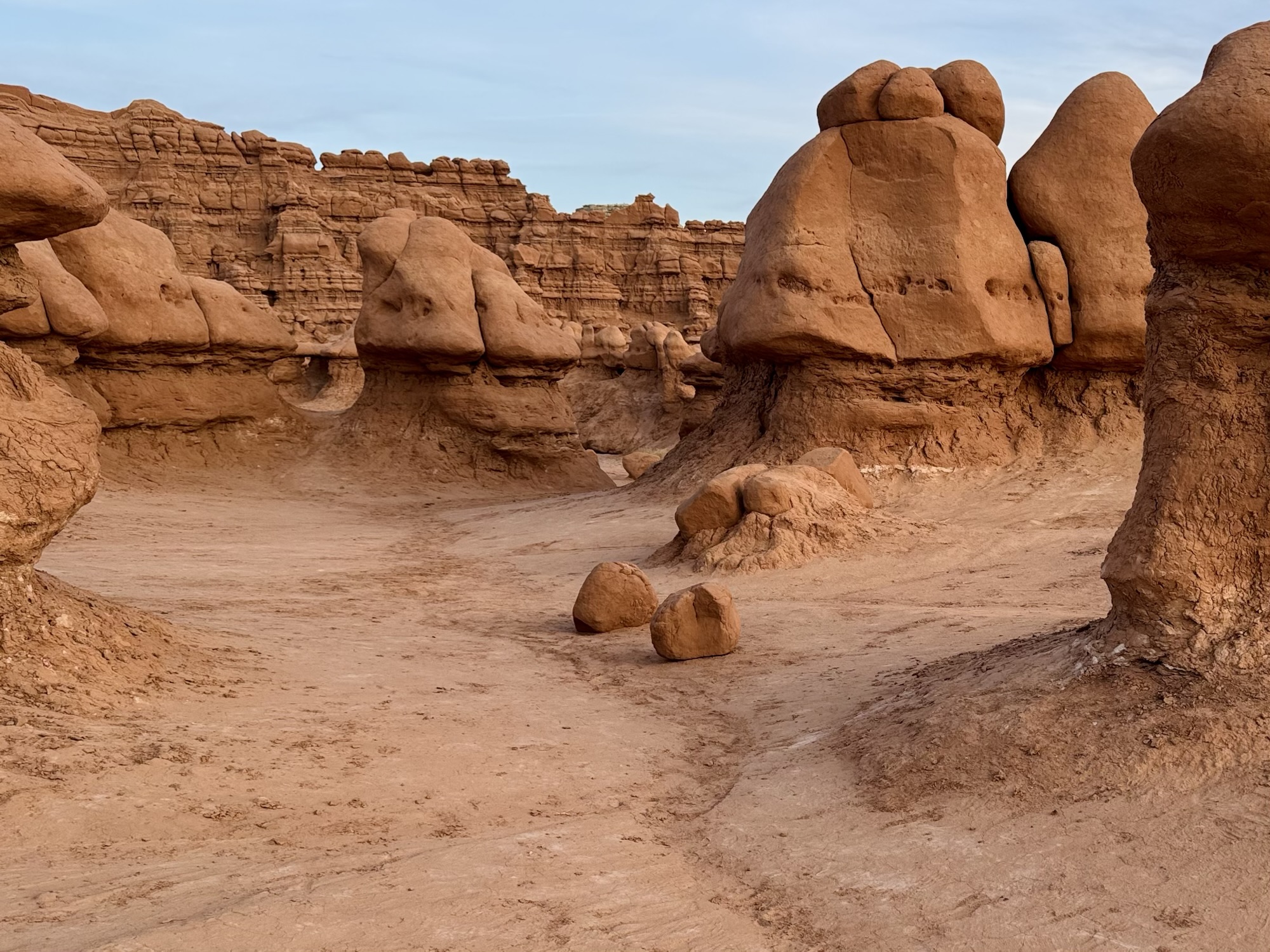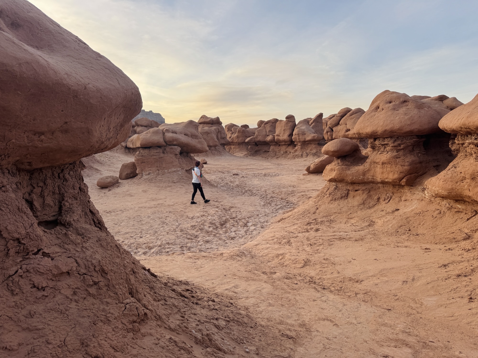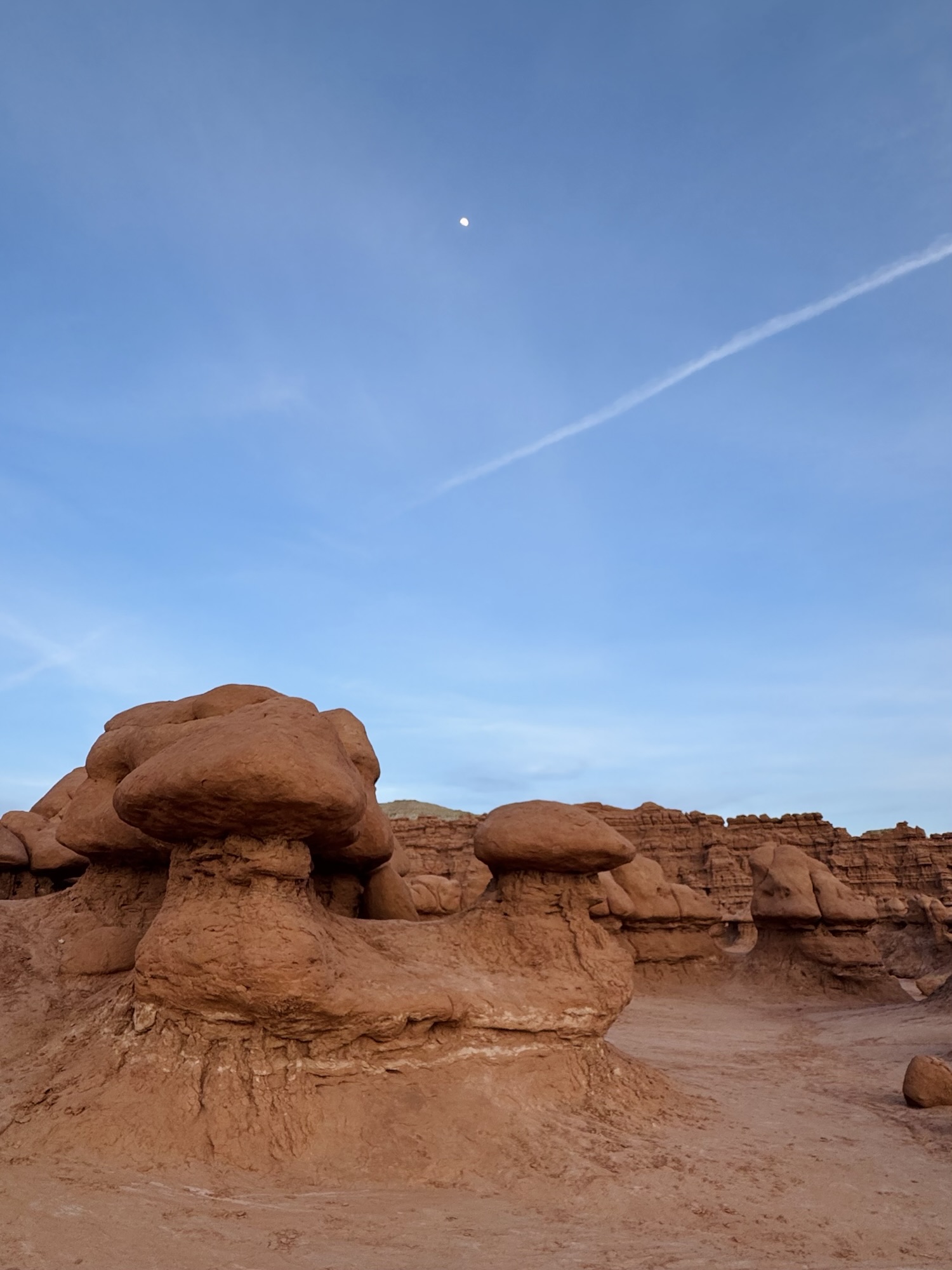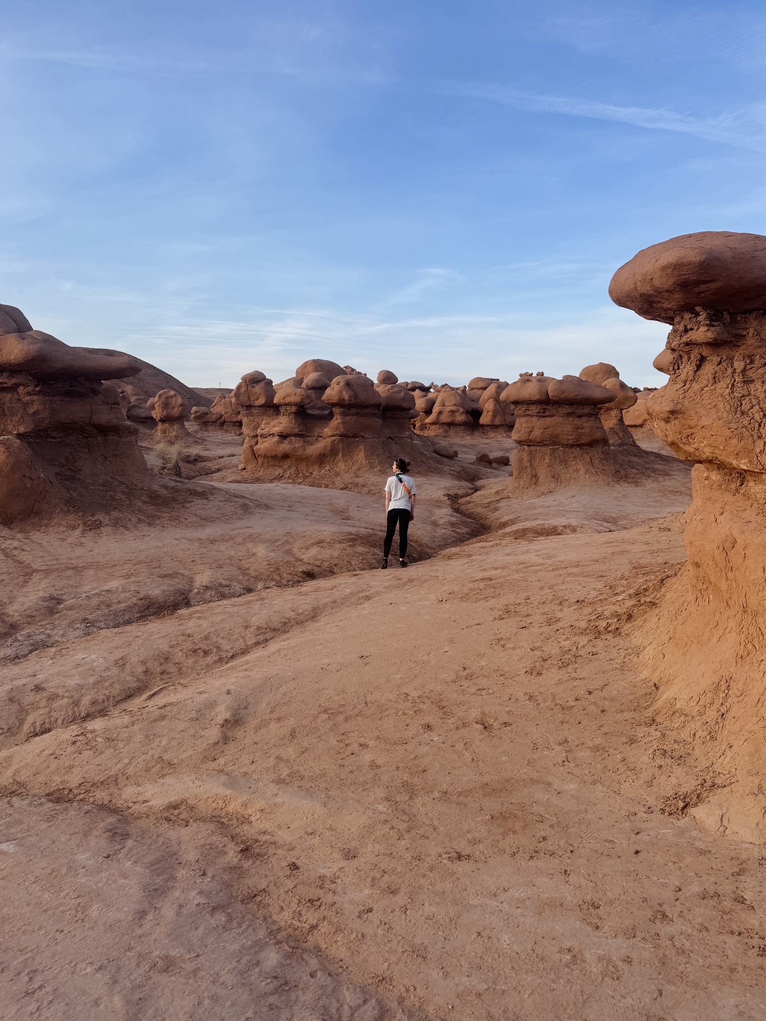 We arrived at Goblin Valley State Park by 5pm, hung out on the Goblin’s + Goblette’s Lairs trail for a couple hours, and finally descended the stairs into the Valley of the Goblins by 7pm.