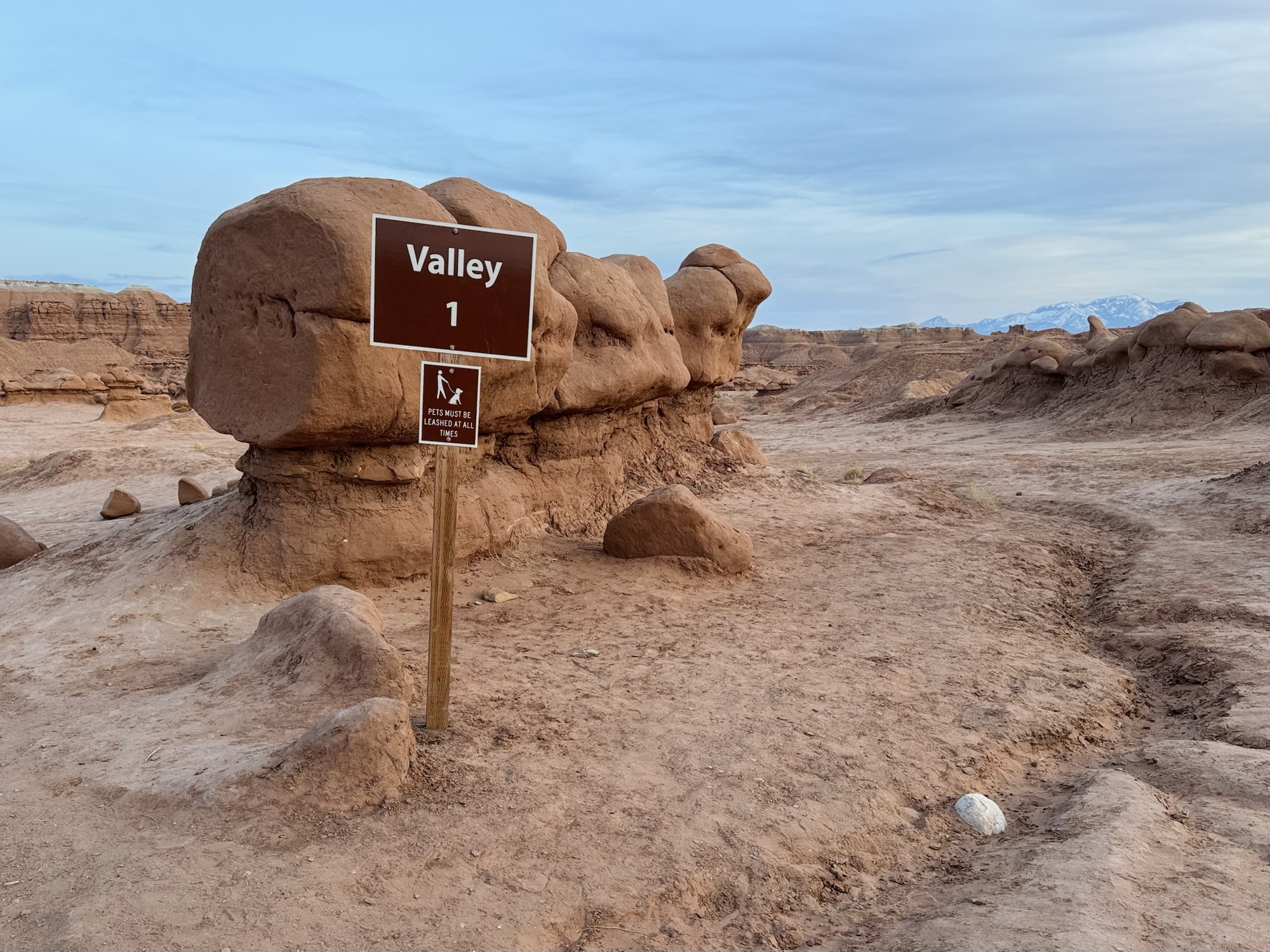 At the trailhead for Valley of the Goblins, there’s a big ol’ covered pavillion with benches and a bunch of interpretive signs. Two talk about how this place used to be underwater, and the other talks about how a bunch of movies have been filmed here.