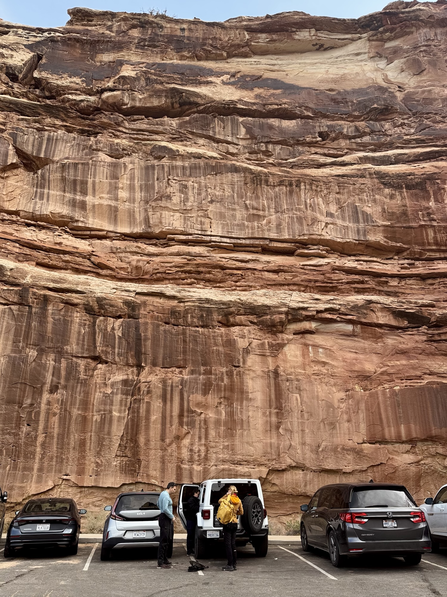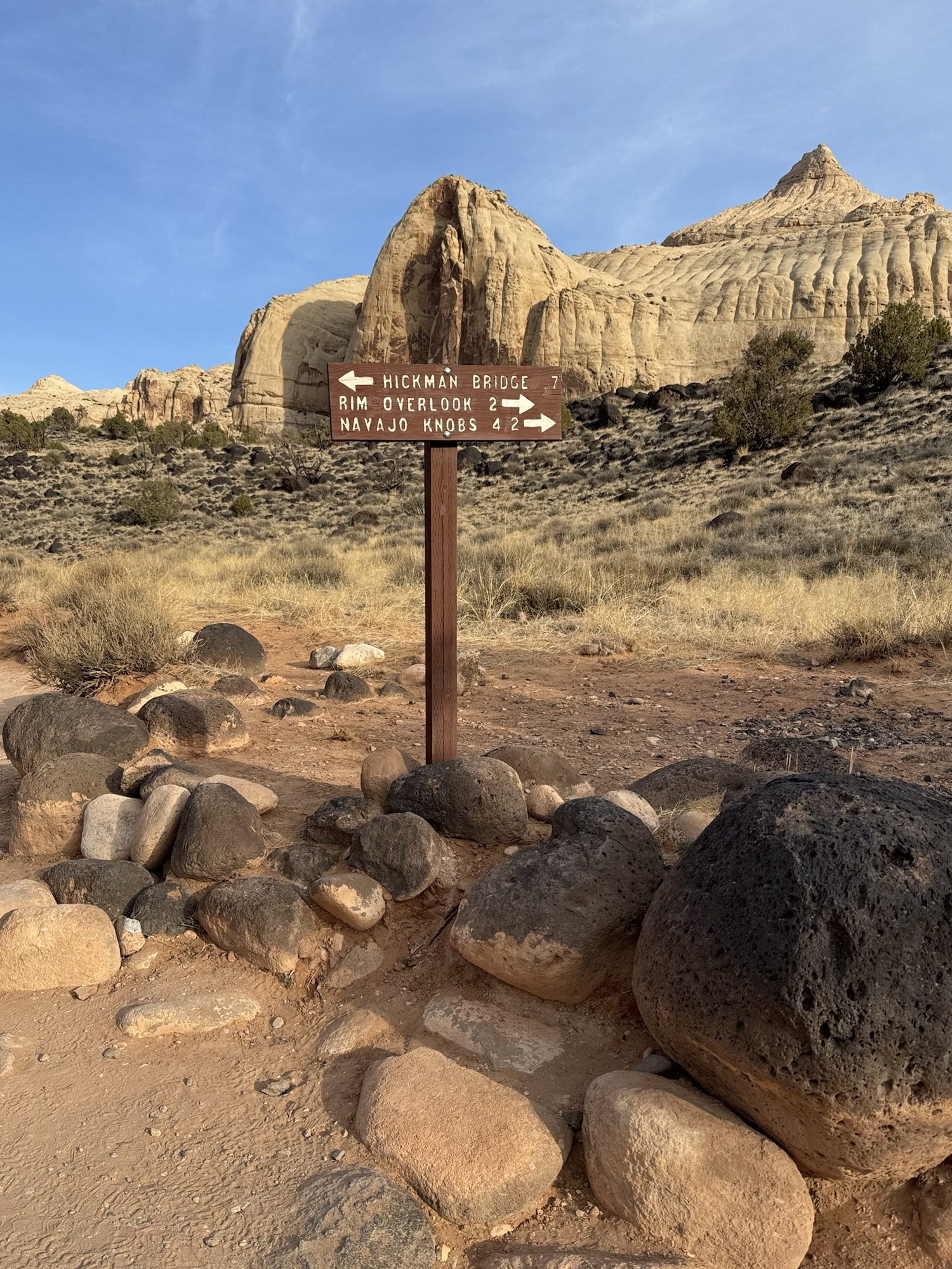 We’d spent the night at Whispering Sands Motel in Hanksville, UT the night before, then headed out a little after sunrise to make the 45-ish minute drive to the Hickman Bridge trailhead. We entered the park at 7:45am on April 8. 🙂