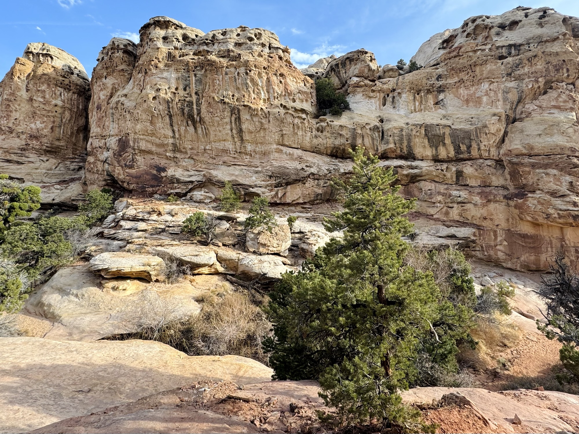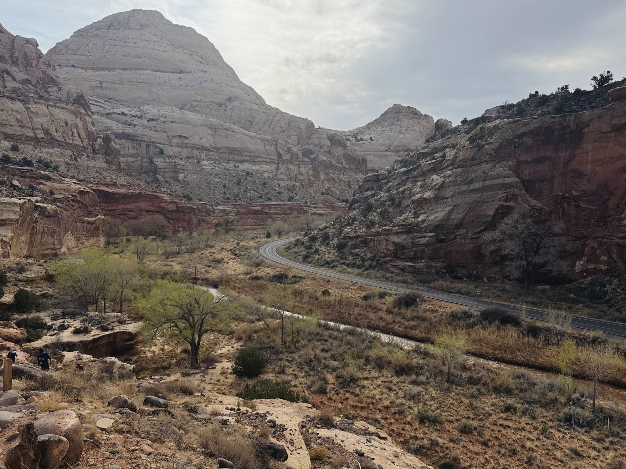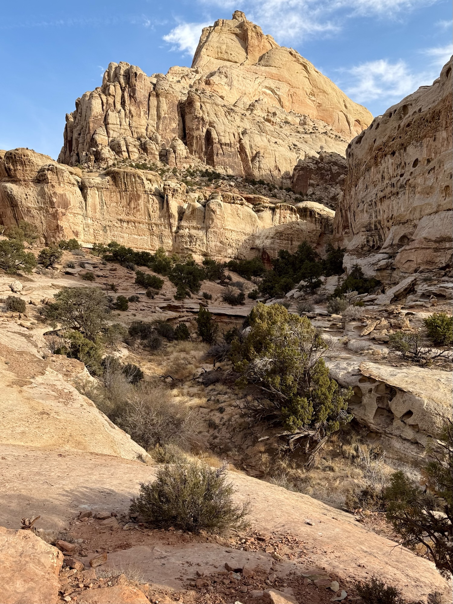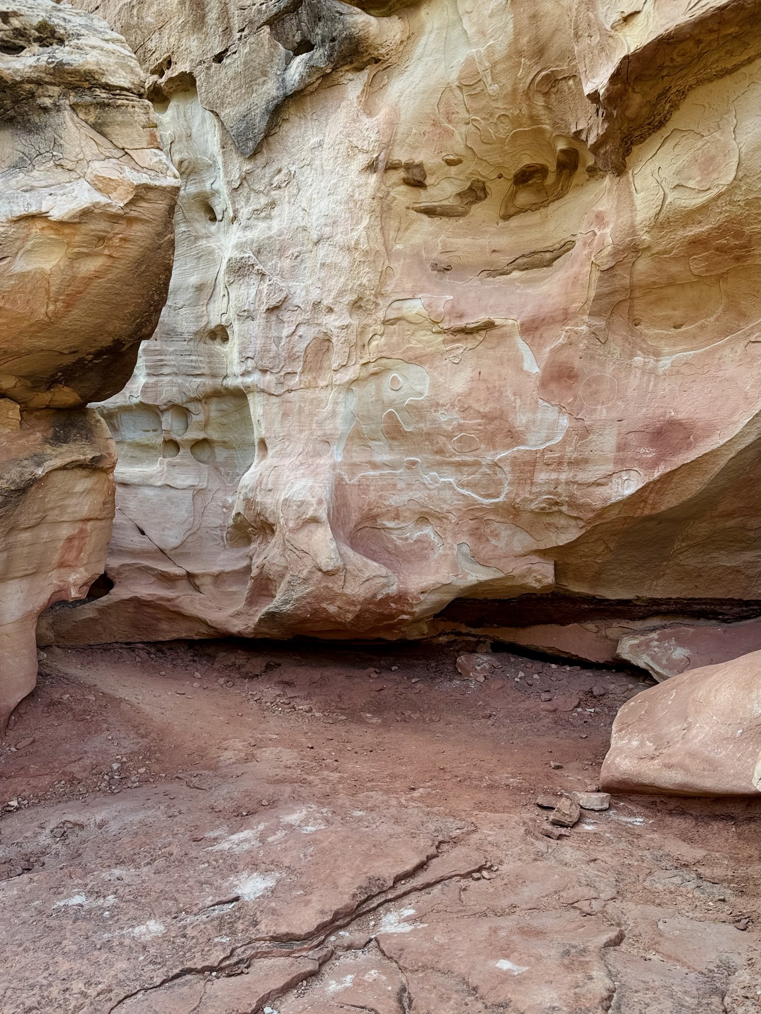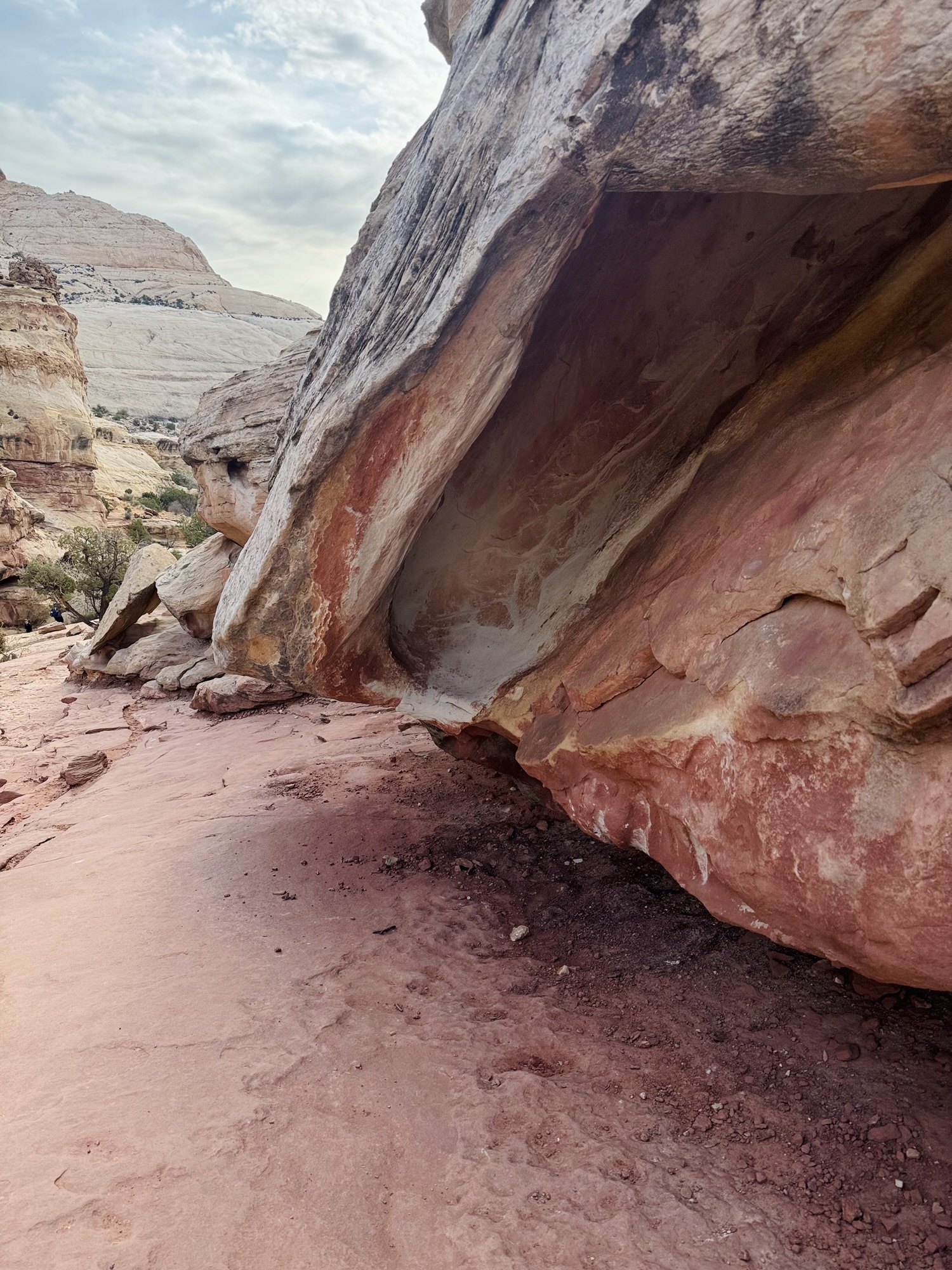 There’s such a wide variety of rocks here. While we were admiring and feeling all over this pink one below, a National Park Service volunteer geologist came up to us and started chatting. Then we ooh-ed and aah-ed and it together. It was such a cute moment. She said that she was a lifelong high school geology teacher and now that she’s retired, she spends time perusing Capitol Reef’s trails looking for people who wanna talk about rocks with her. That’s the dream.