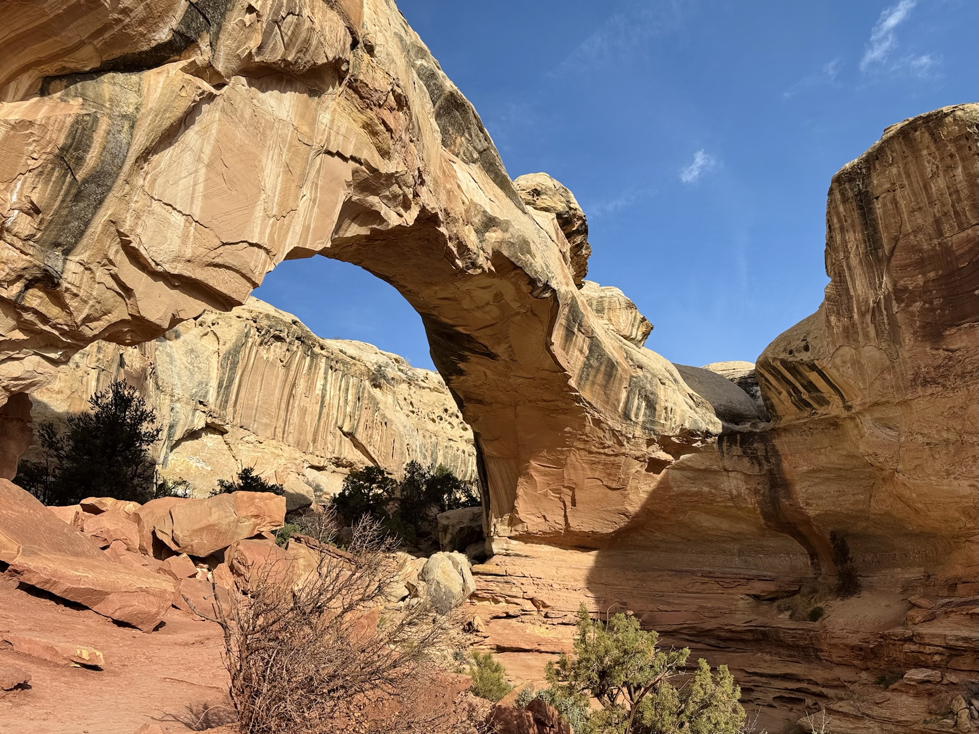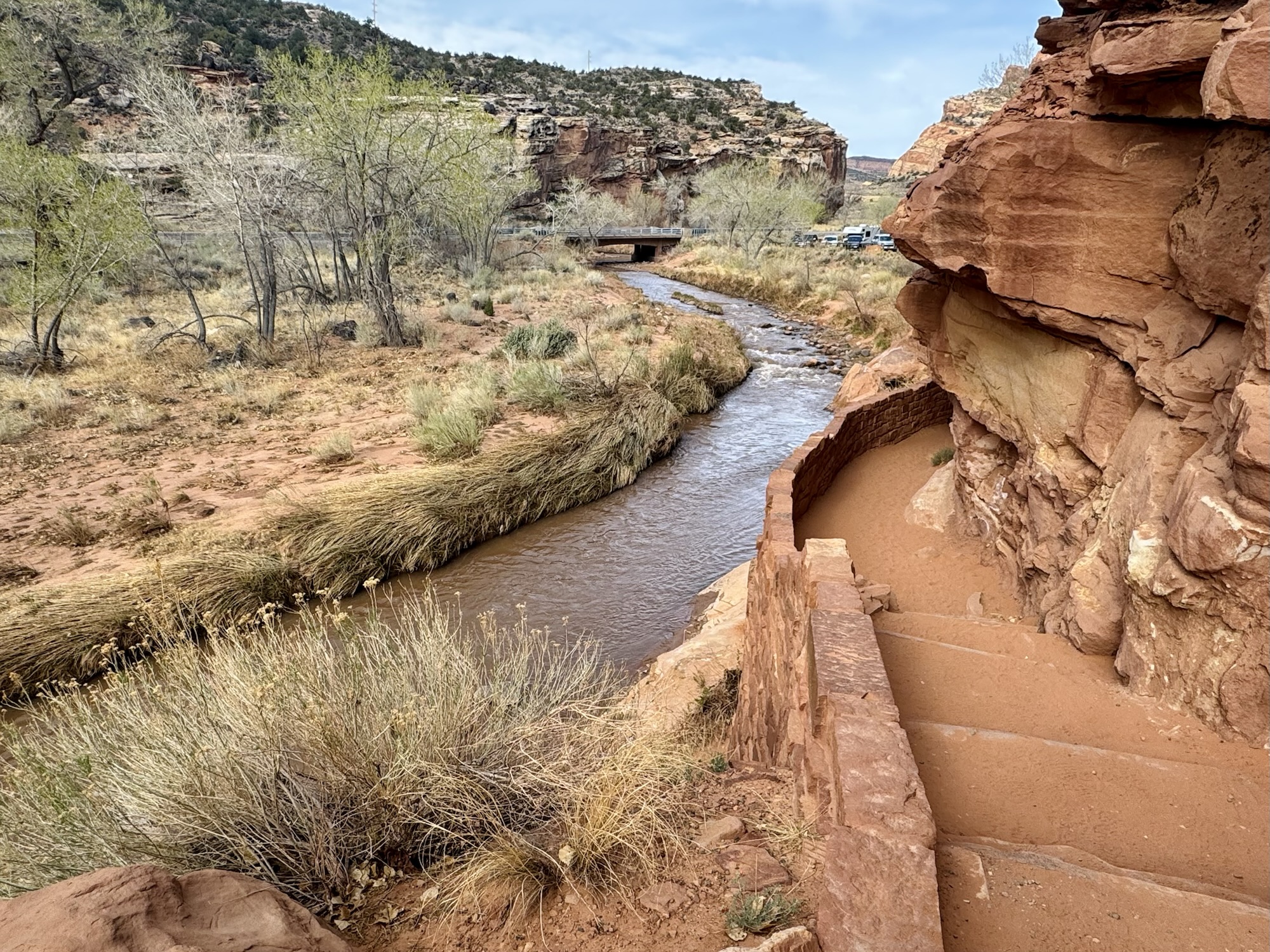 The Fremont River is what cuts through the park and under Hickman Bridge, and what shaped this landscape completely with it’s wild floods.