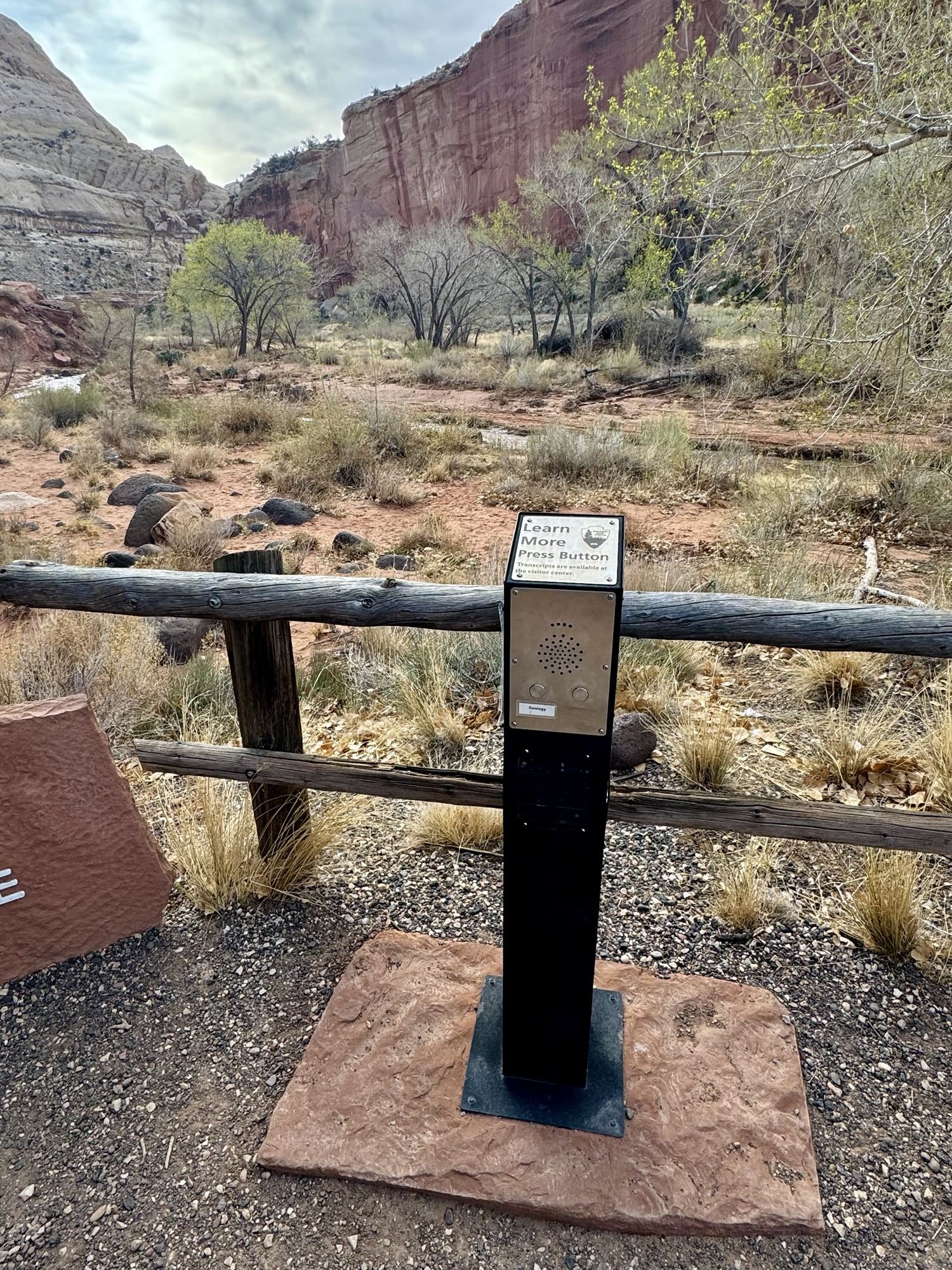 One of the cool things that Capitol Reef had that I’ve never seen at any other park are these posts where you press a button and a voice starts talking to you about what you’re looking at. So while we stood here to soak in the view from the parking lot after our hike, we listened and learned so much more about it.