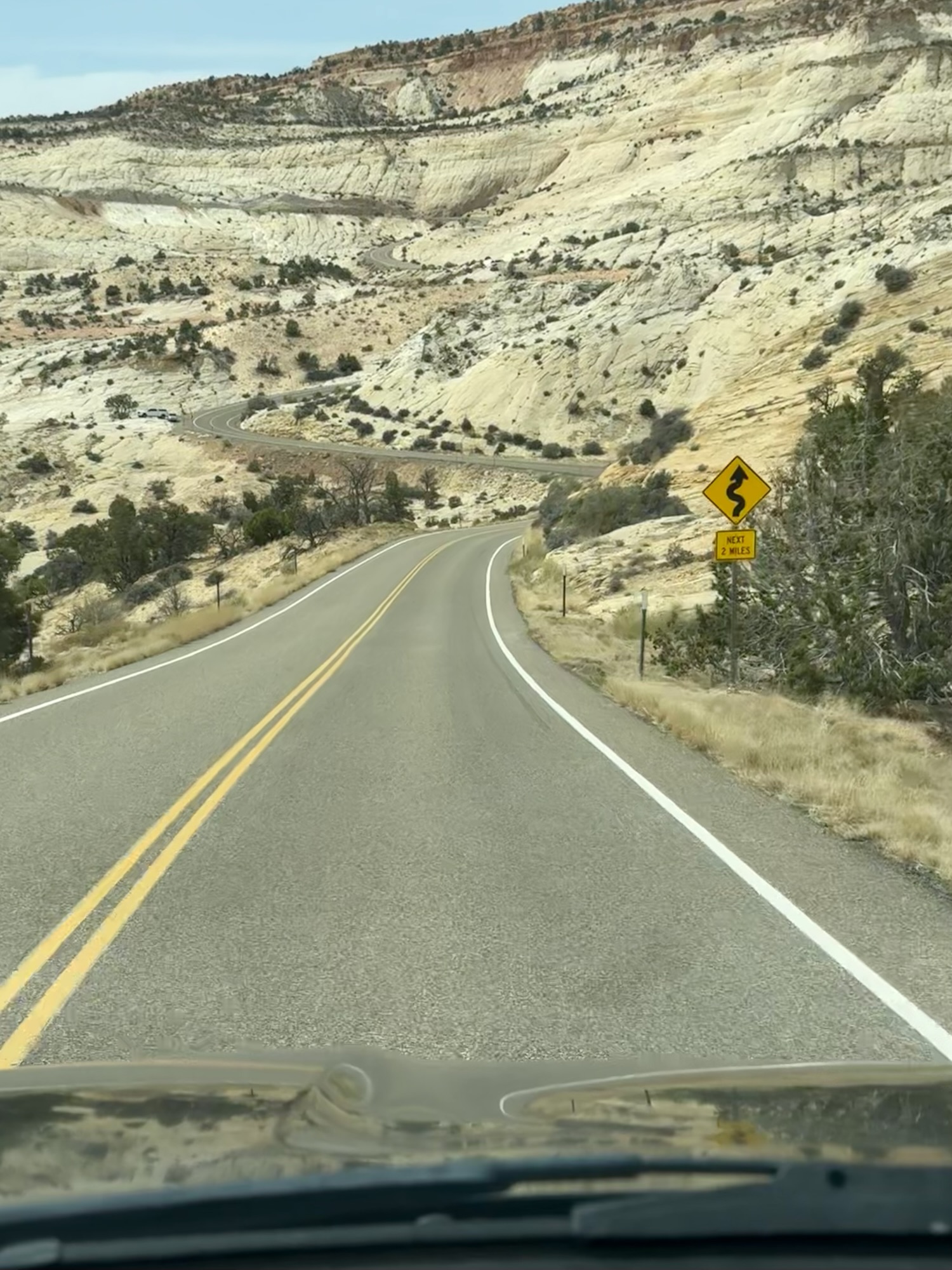 We made a pit stop at the Escalante Interagency Visitor Center to stretch our legs, get a Passport Stamp, and use the bathroom. I was super enamored with the road on the way in and how it looked snaking through the desert, up, down, and all around.