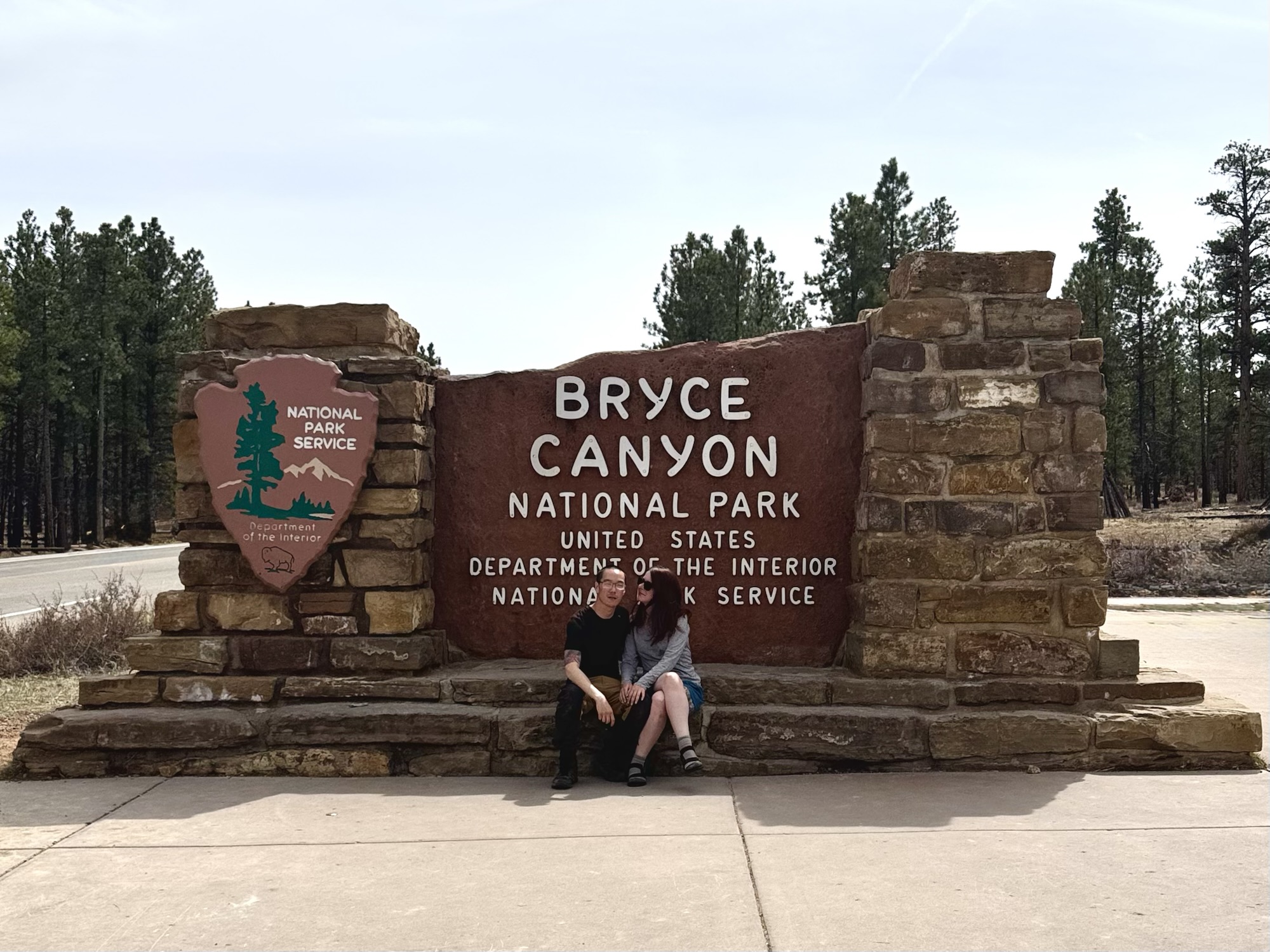 It took us almost exactly an hour to get from the first “entrance sign” (there are a million different ones on the way in) below to the parking lot for Inspiration Point. I can easily say it was the most crowded area we’d been on the trip so far, the most tourist buses, the most people noise, and the most languages we heard spoken. Granted, we did go in the afternoon around prime time… but still, it was a random Tuesday in April.