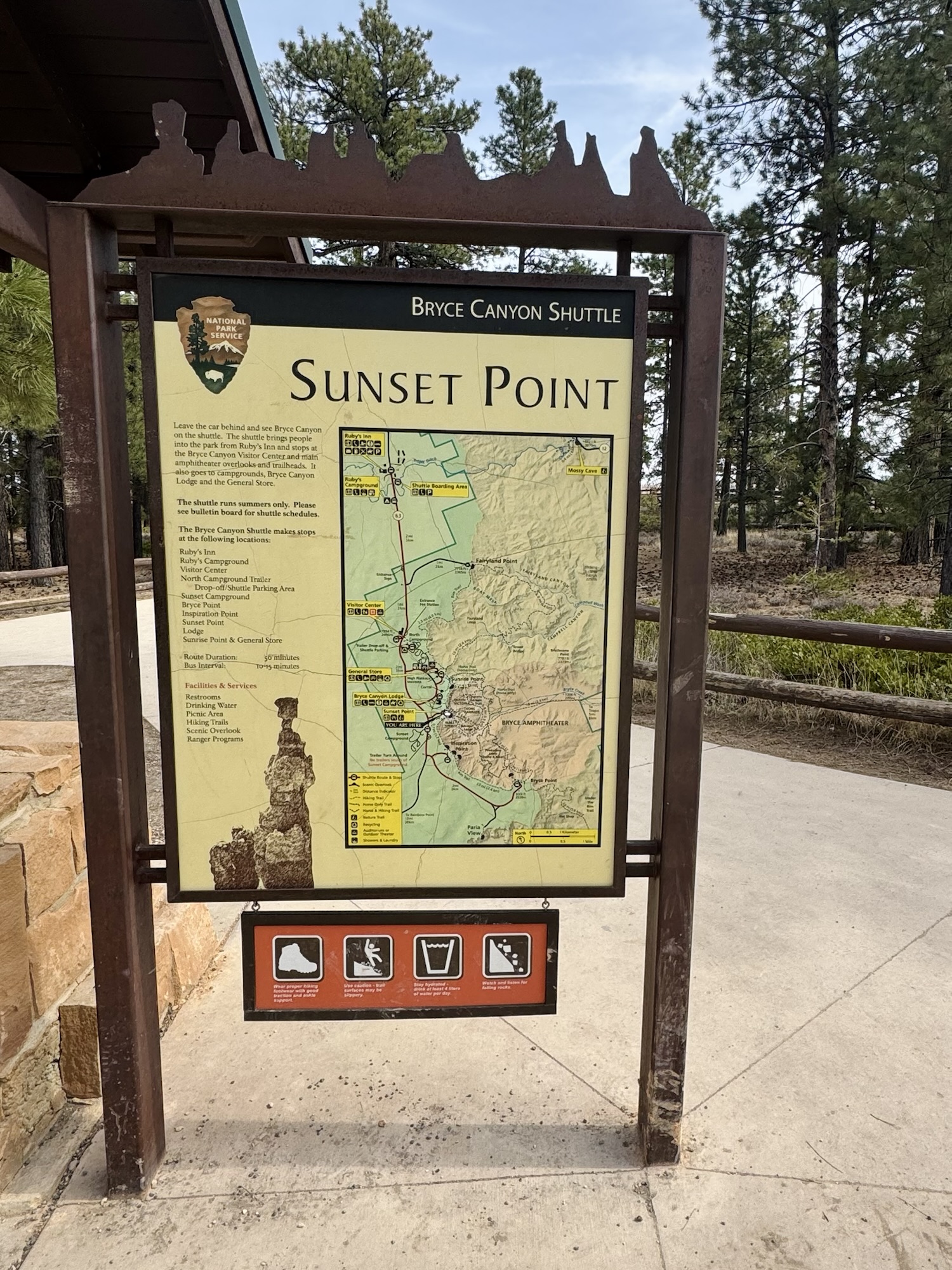 Bryce Canyon is one of the National Parks with a park shuttle, so there are a million signs around for people to read while they wait (and bake in the heat).