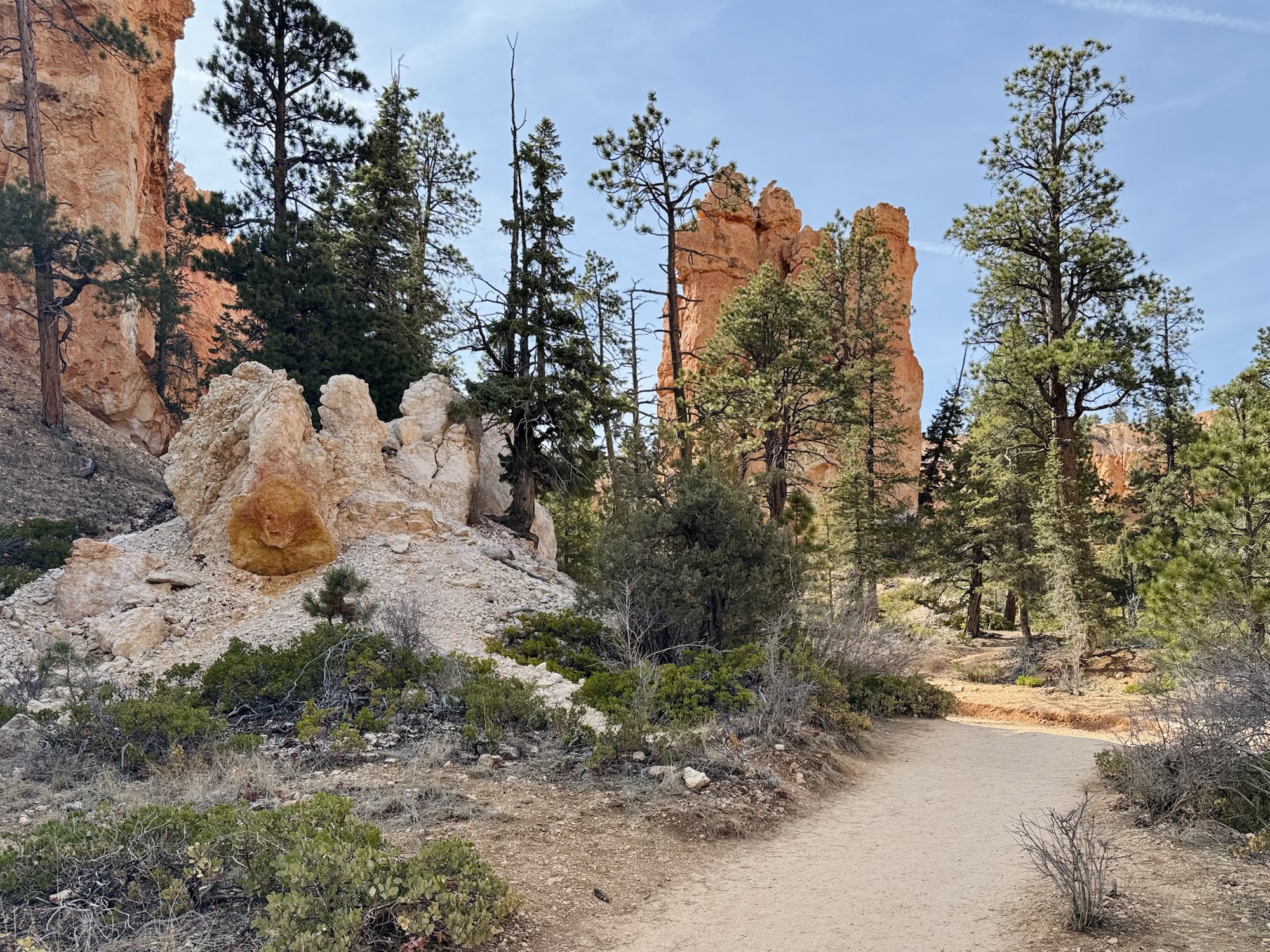 That super white tower is the highest point on the trail. The lighter the sandstone here, the higher it is.