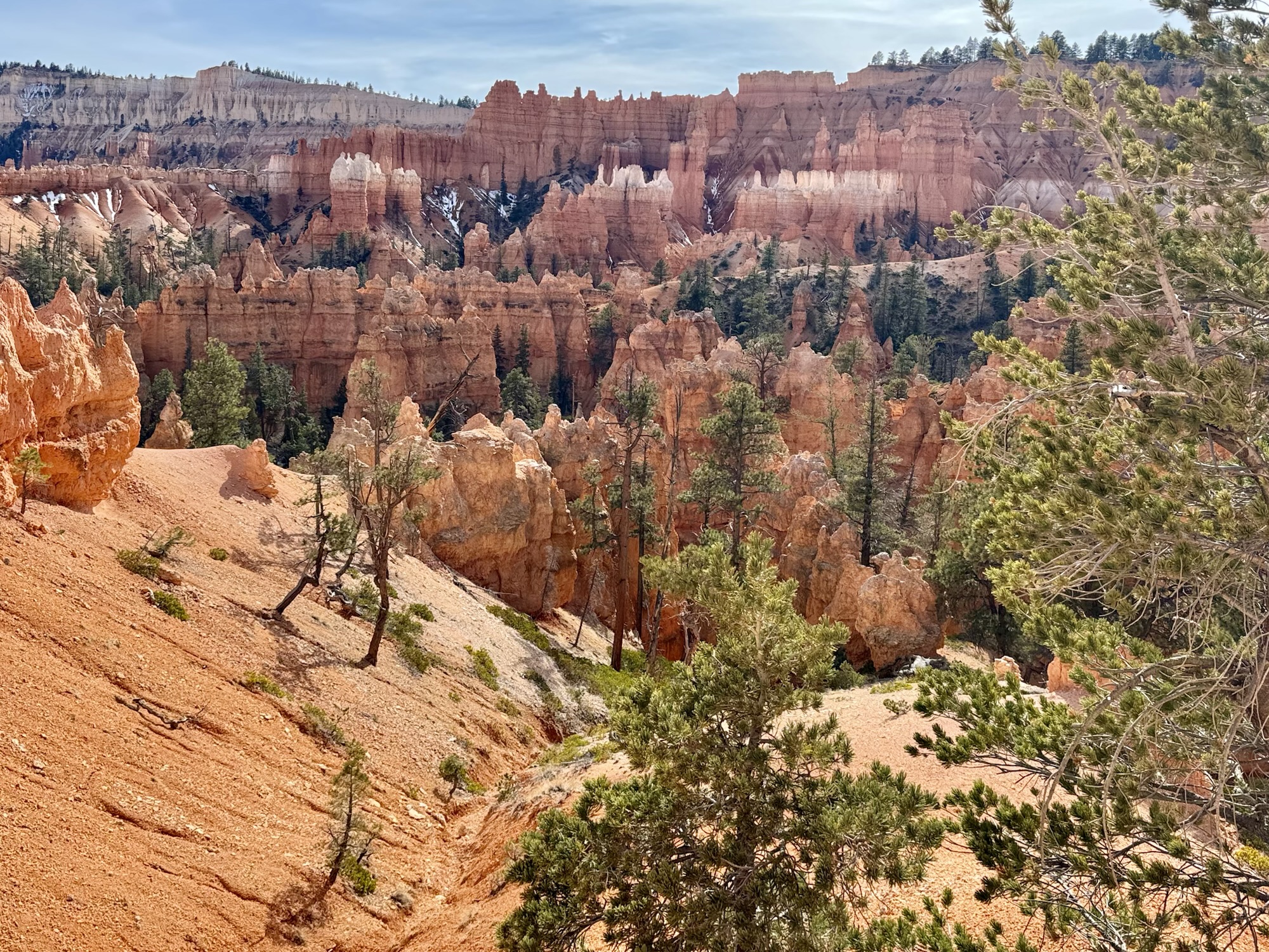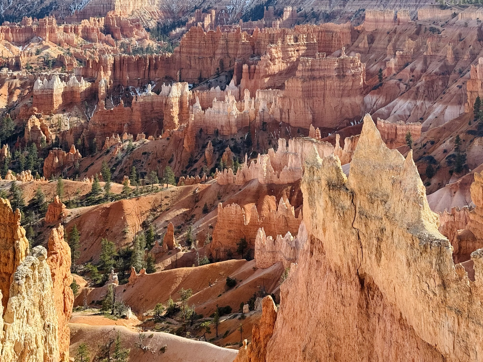 There was still snow on the top here! I was really surprised by that. It looks so pretty against the orange hoodoos and dark green pines.