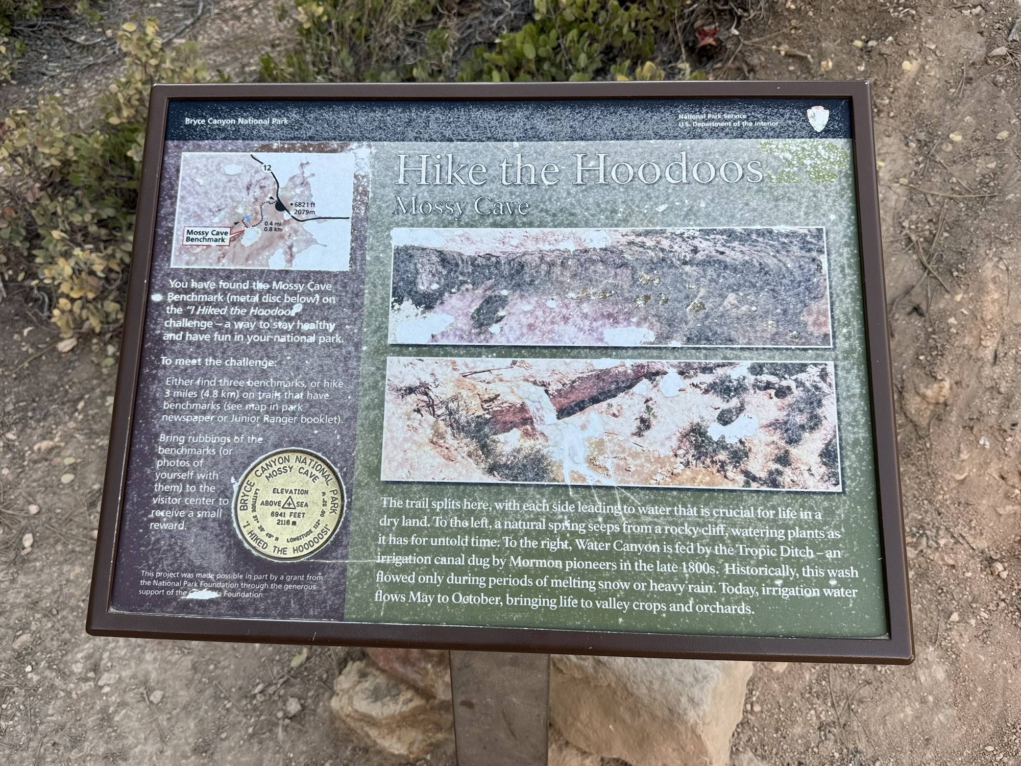The trailhead sign also talks about there being one of the “Hike the Hoodoos” golden markers here. I wish I would’ve known this existed! I would’ve made it part of our mission to collect all three.
