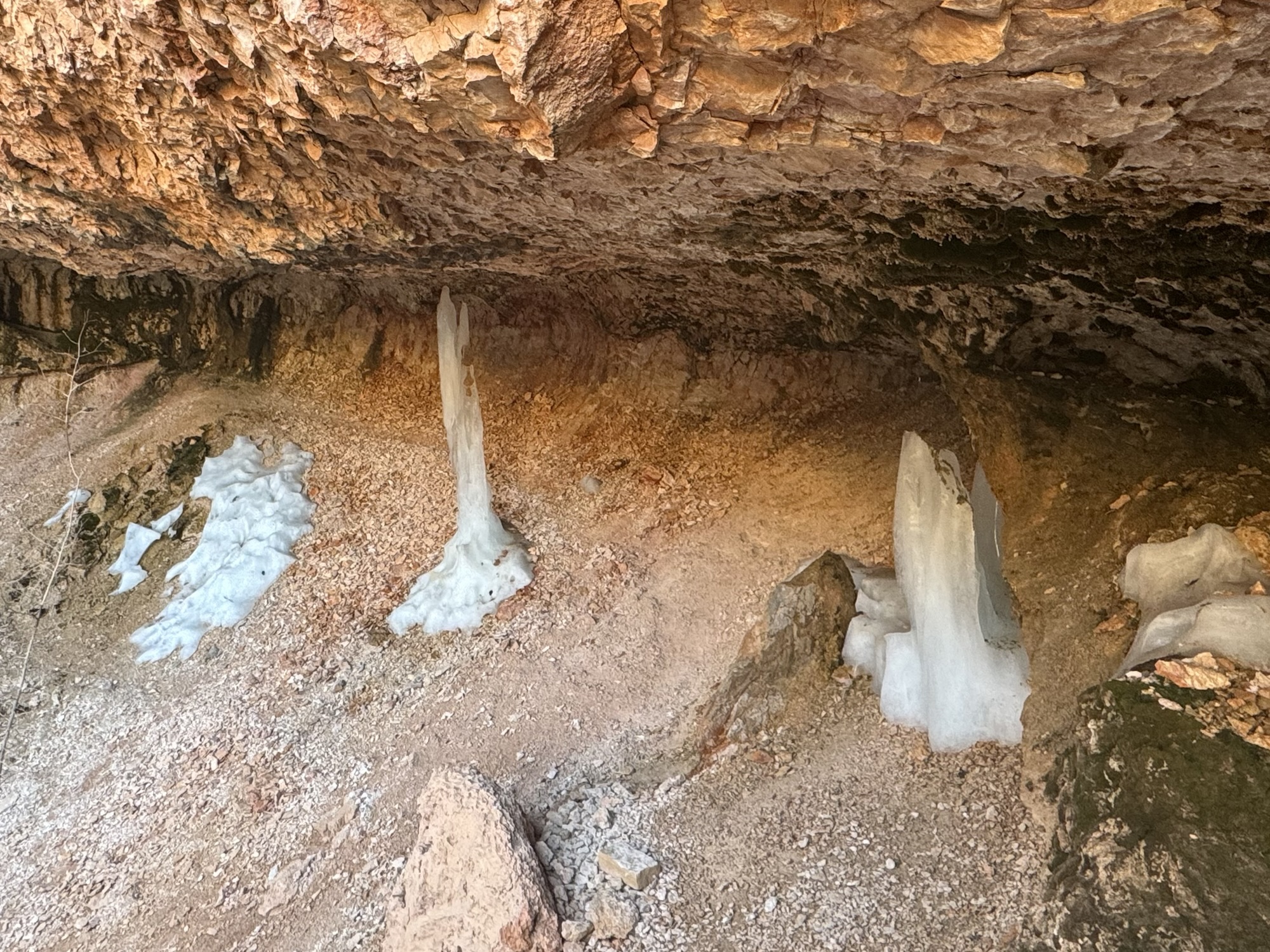 We veered left and uphill – to the Mossy Cave! It was awesome that the ice was still here, we were psyched.