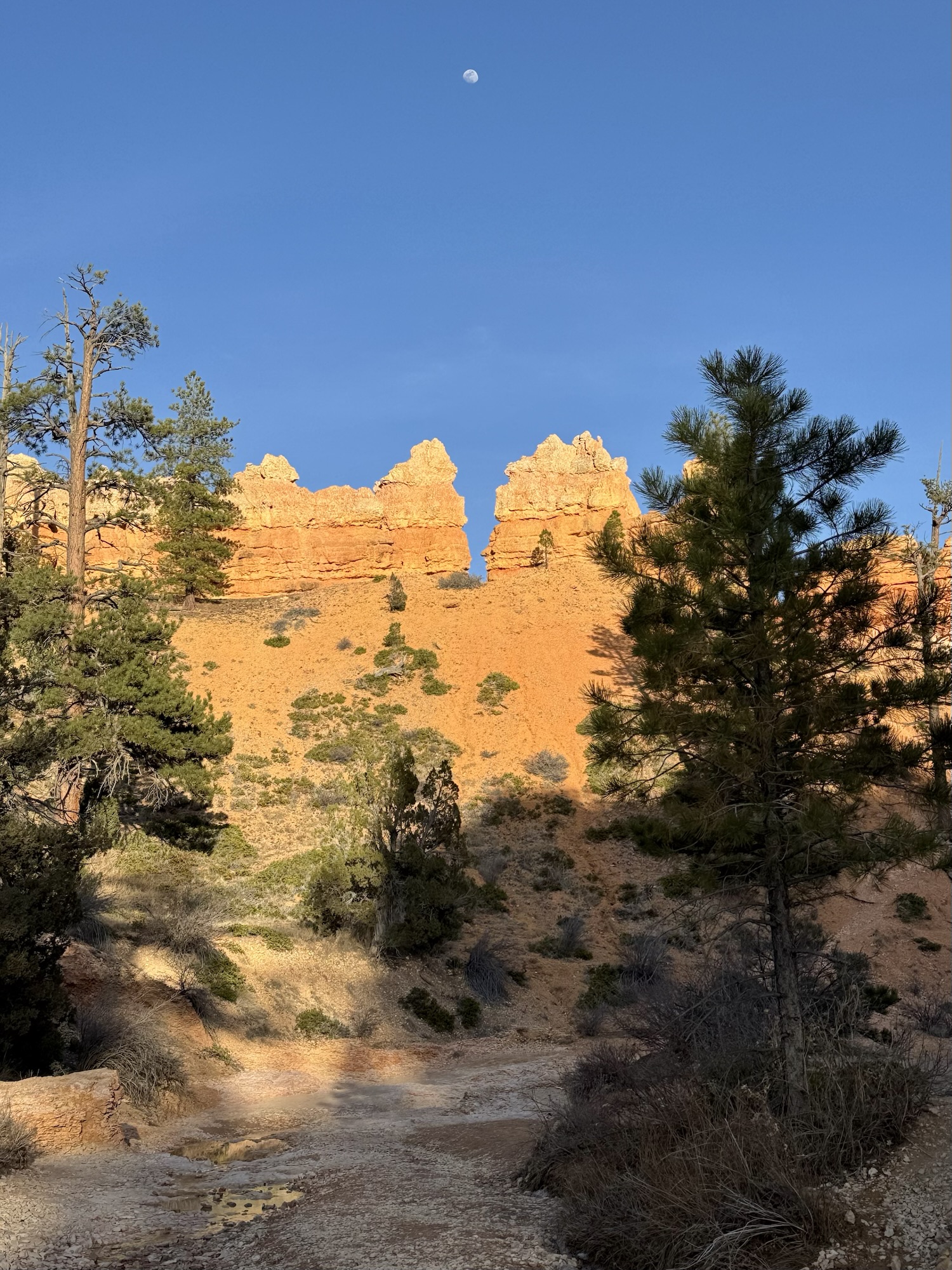 Isn’t it so cool how the almost-full moon was centered above that little gap?
