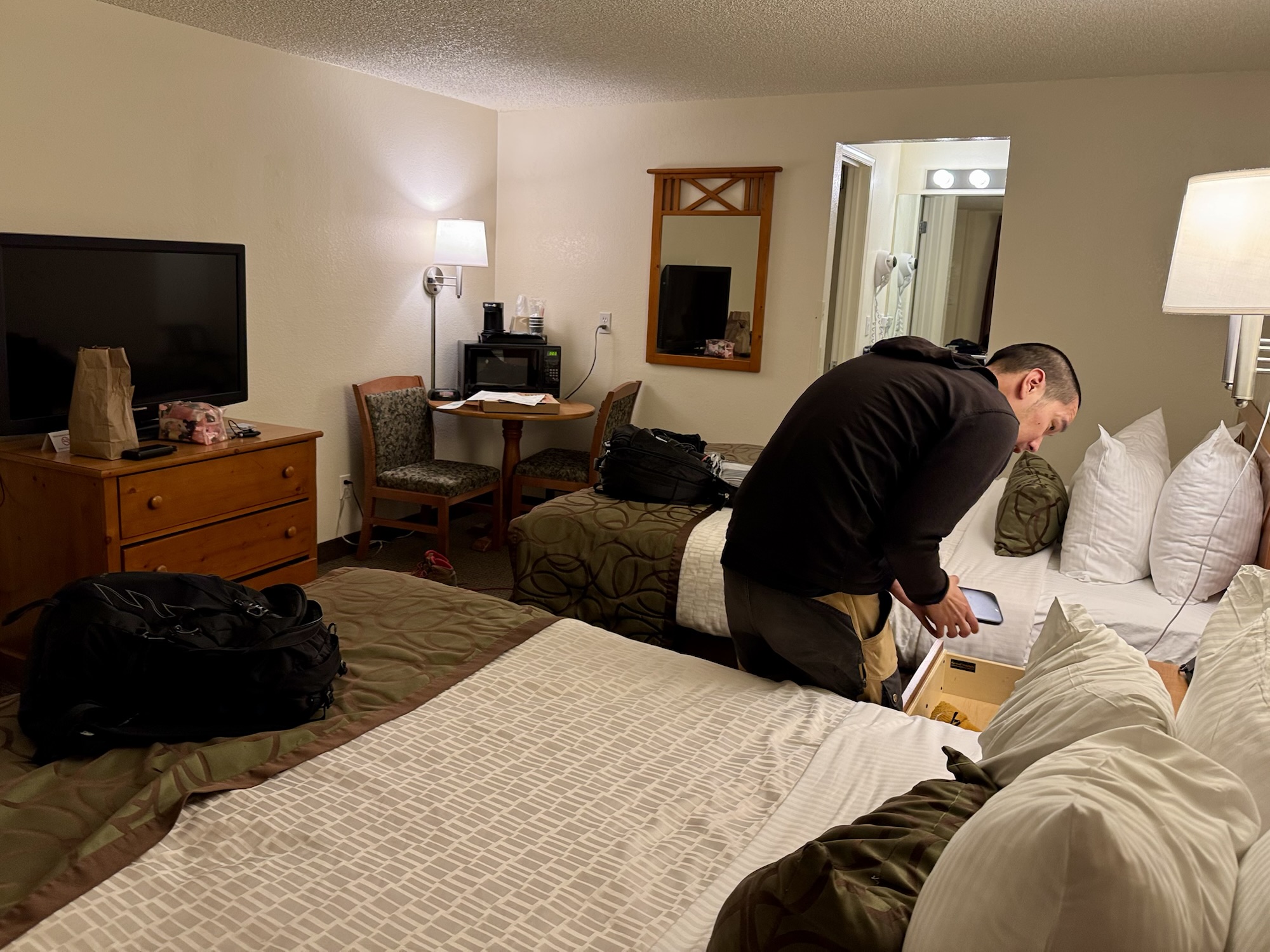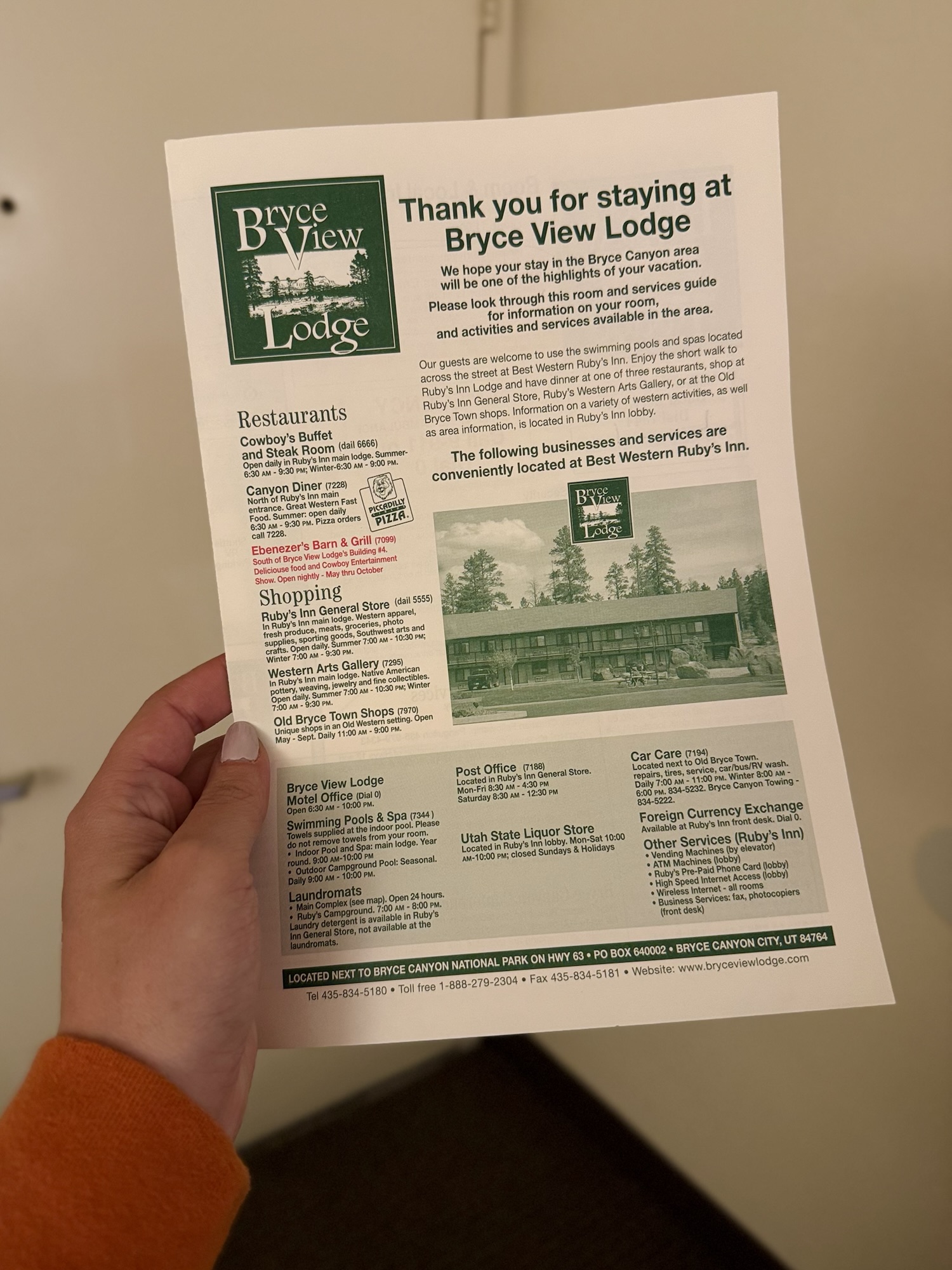 The company that owns Bryce View also owns half of the touristy accommodations in Bryce Canyon City. They’re called Ruby’s. Our room came with free breakfast in the restaurant they own across the street. I love that. You’ll allllways find these monopolies in big National Park towns.