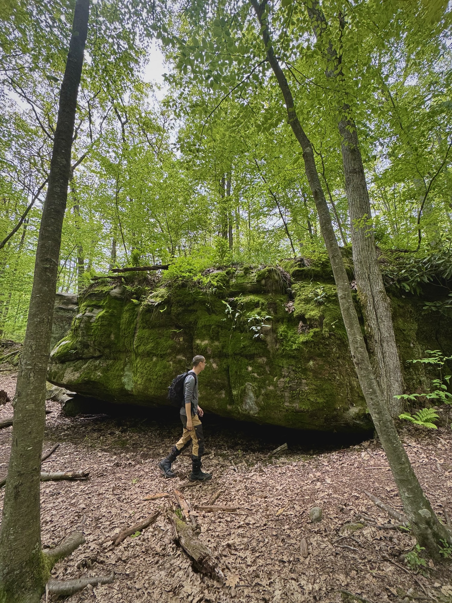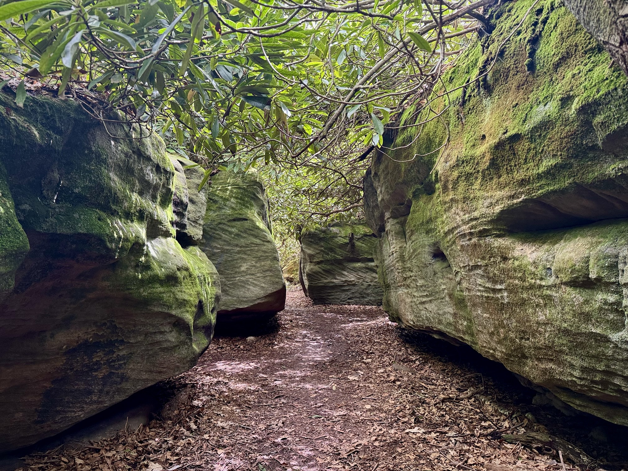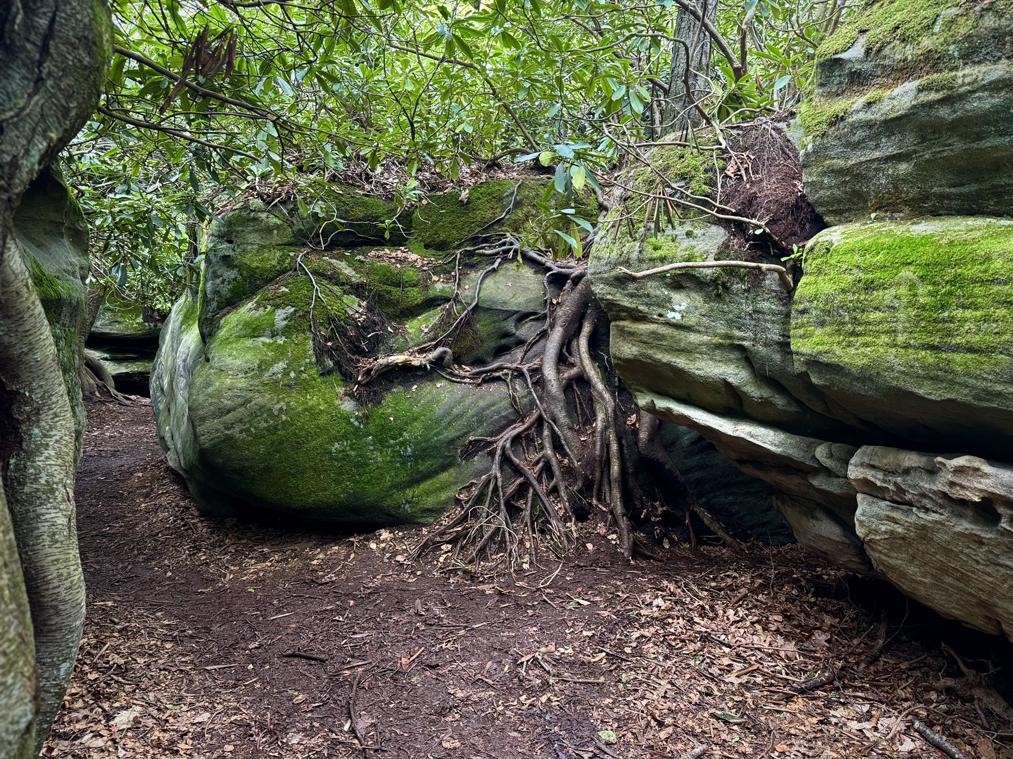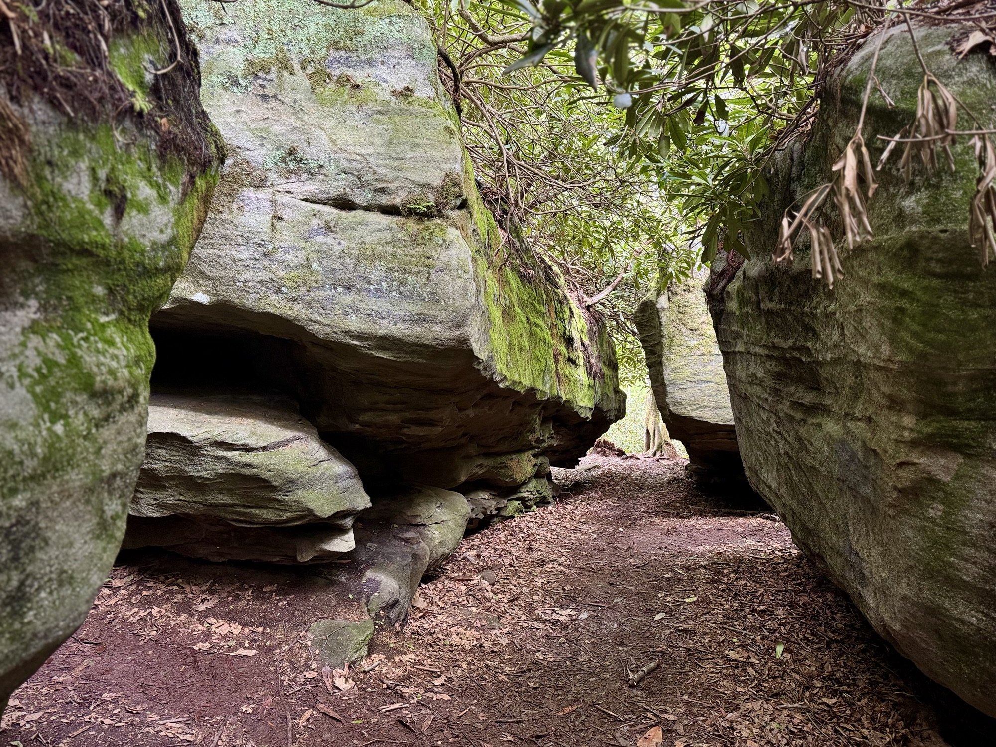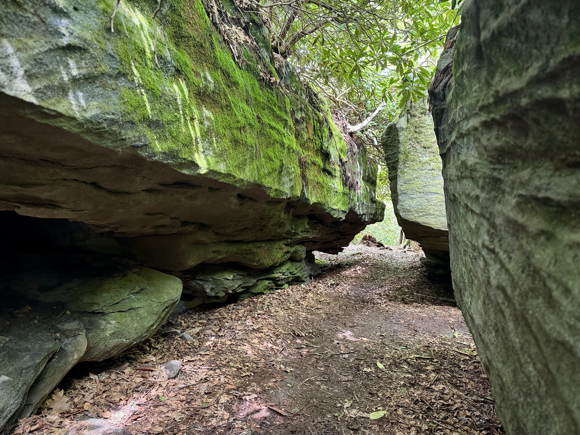 The boulders got bigger and bigger until finally they so densely packed that the “maze” started. We split up and started to explore every nook and cranny. You could walk on the ground under the ceiling of mountain laurel, or you could climb up to the top and walk around like the king of the world.