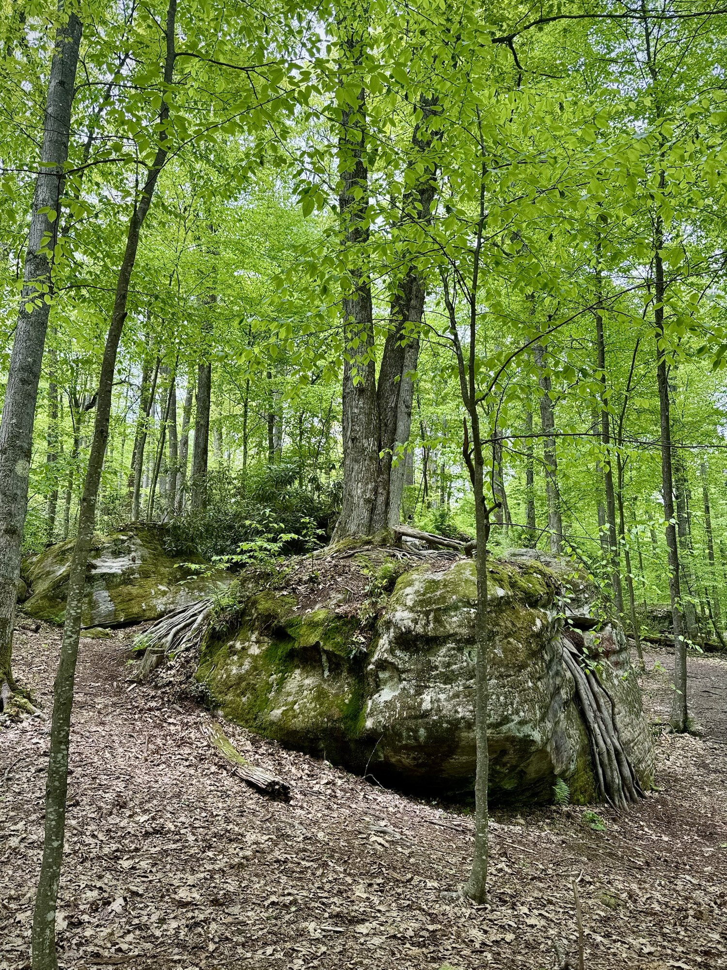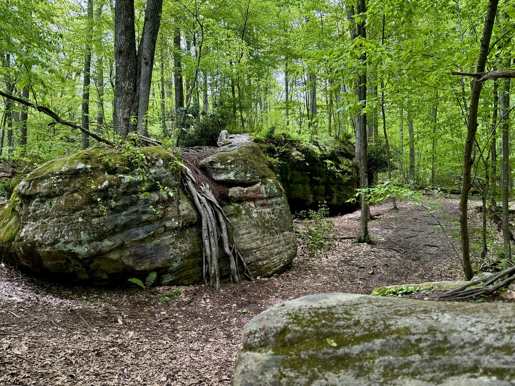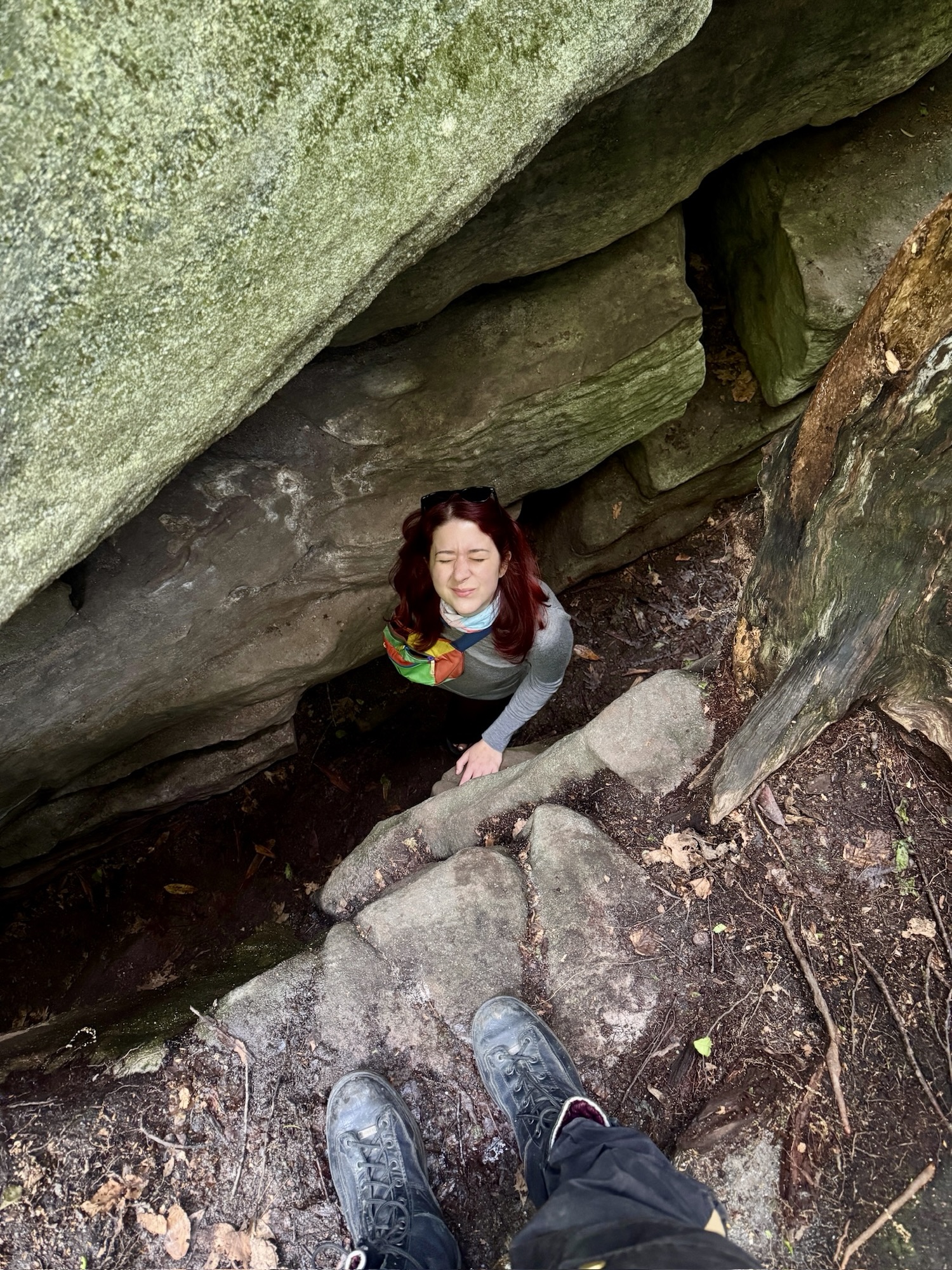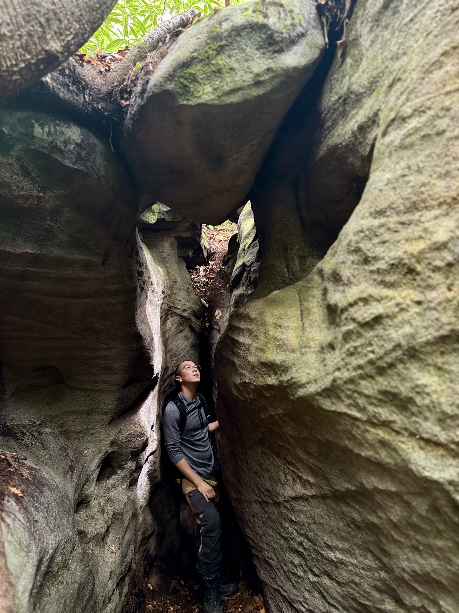 The boulders got bigger and bigger until finally they so densely packed that the “maze” started. We split up and started to explore every nook and cranny. You could walk on the ground under the ceiling of mountain laurel, or you could climb up to the top and walk around like the king of the world.