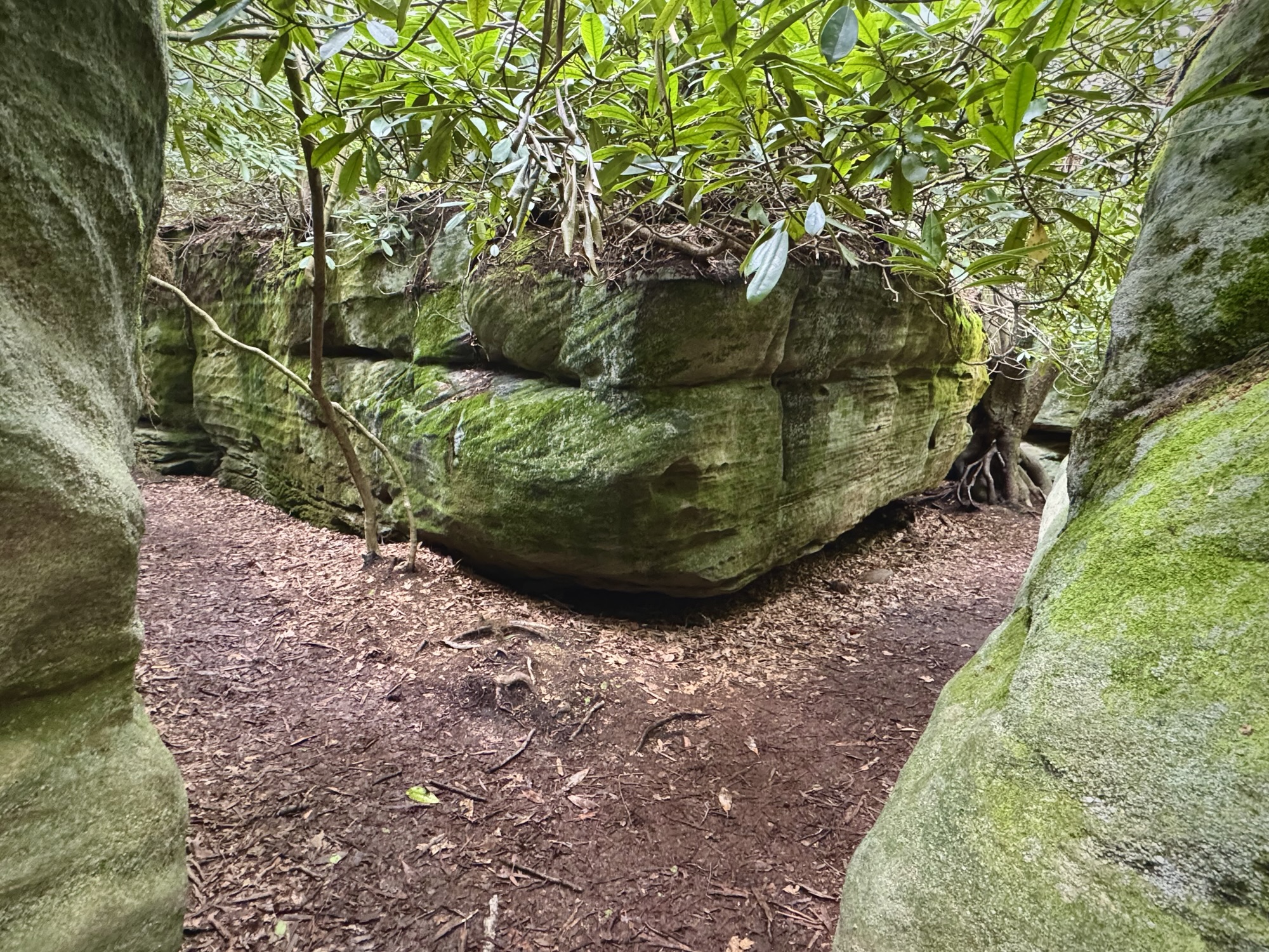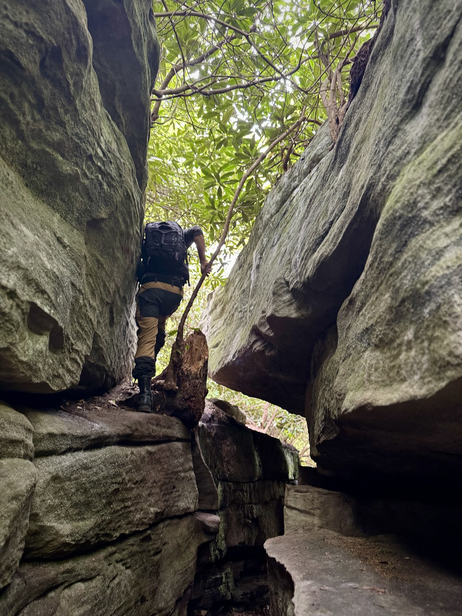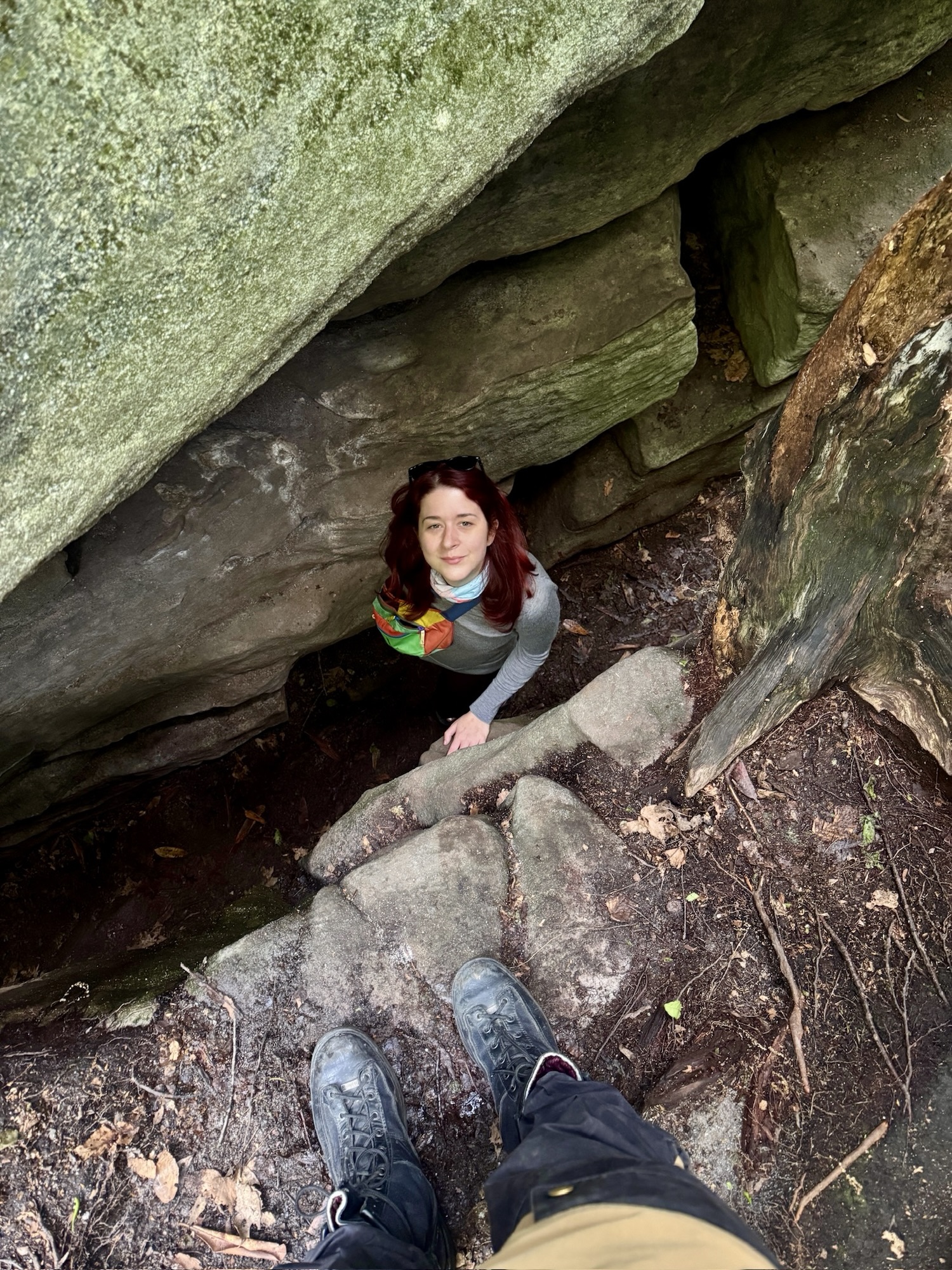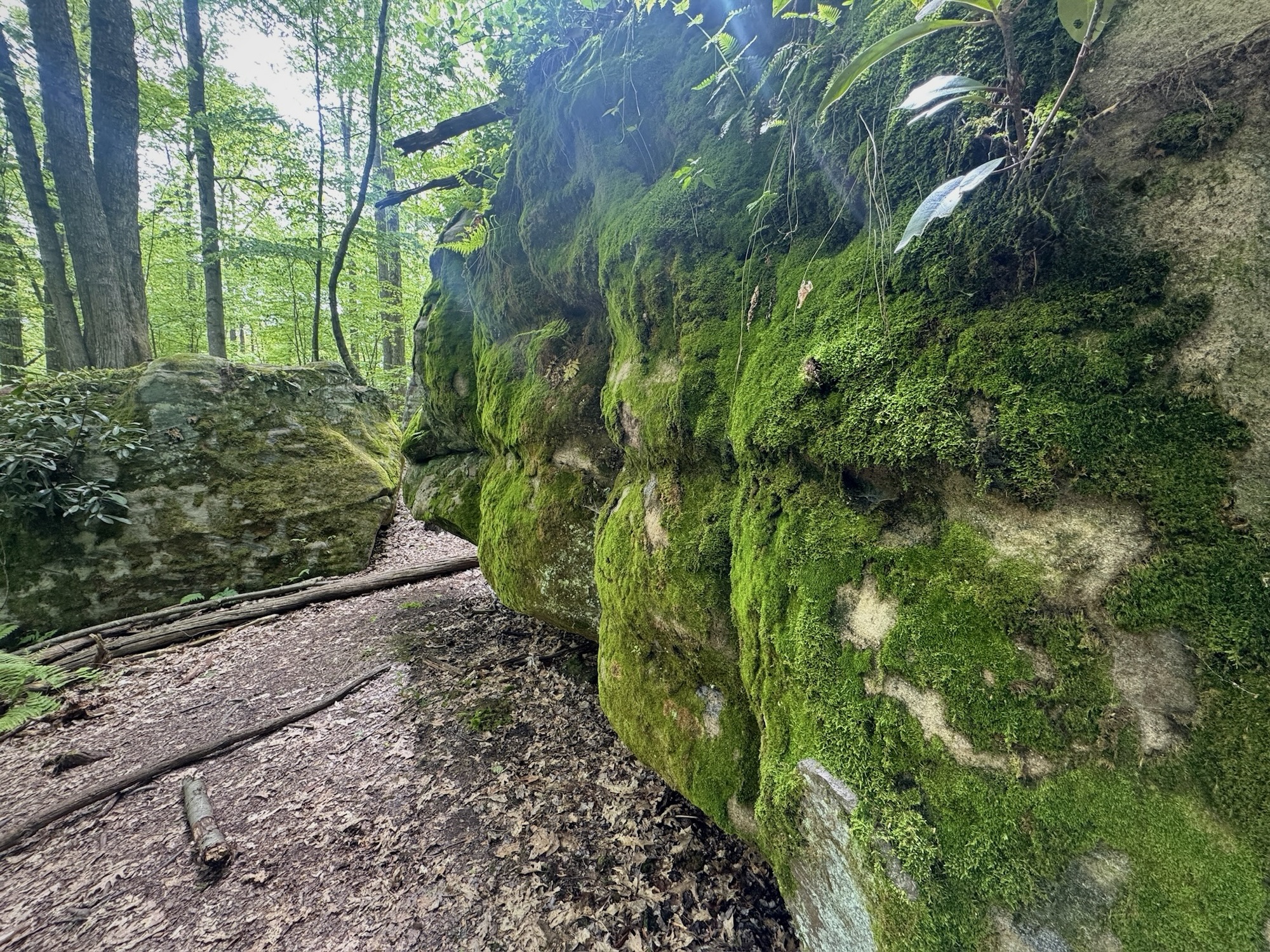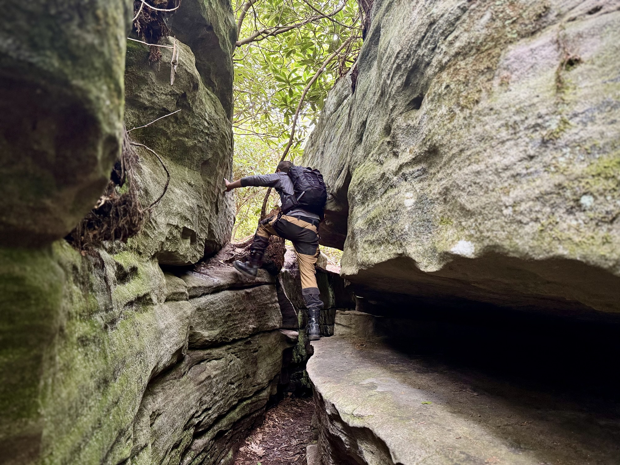 The boulders got bigger and bigger until finally they so densely packed that the “maze” started. We split up and started to explore every nook and cranny. You could walk on the ground under the ceiling of mountain laurel, or you could climb up to the top and walk around like the king of the world.