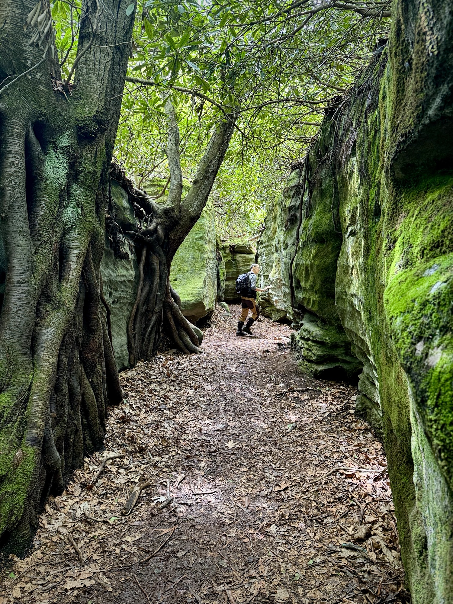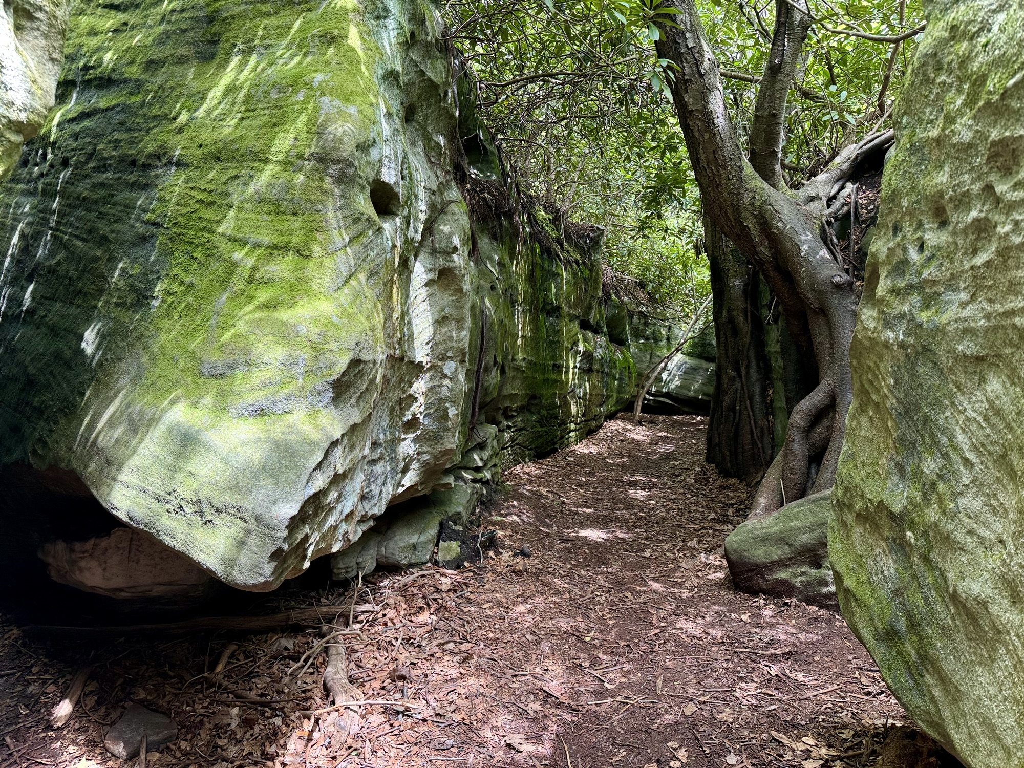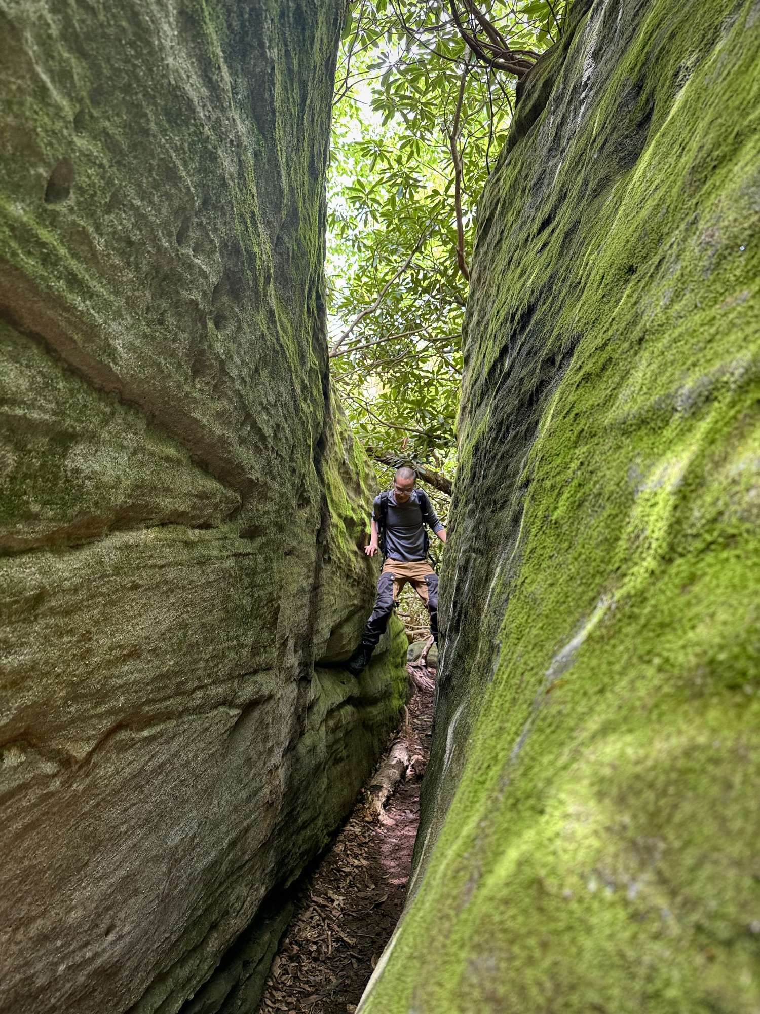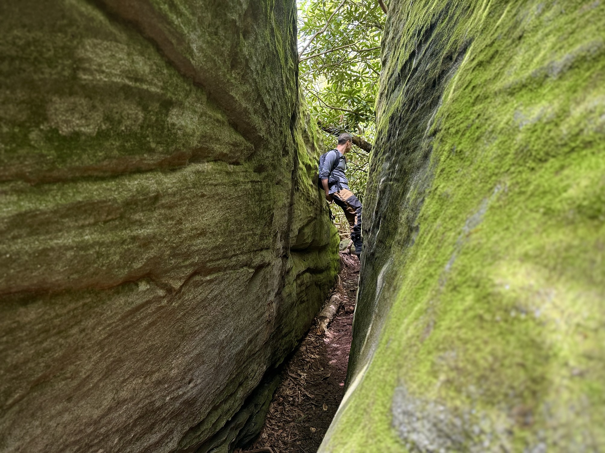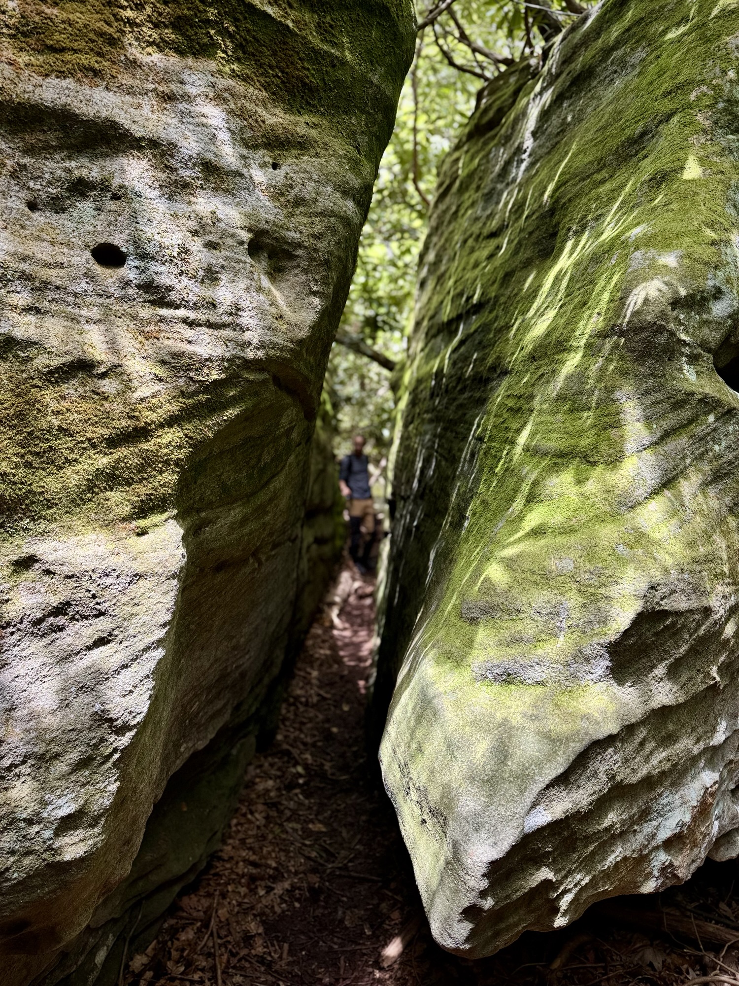 The boulders got bigger and bigger until finally they so densely packed that the “maze” started. We split up and started to explore every nook and cranny. You could walk on the ground under the ceiling of mountain laurel, or you could climb up to the top and walk around like the king of the world.