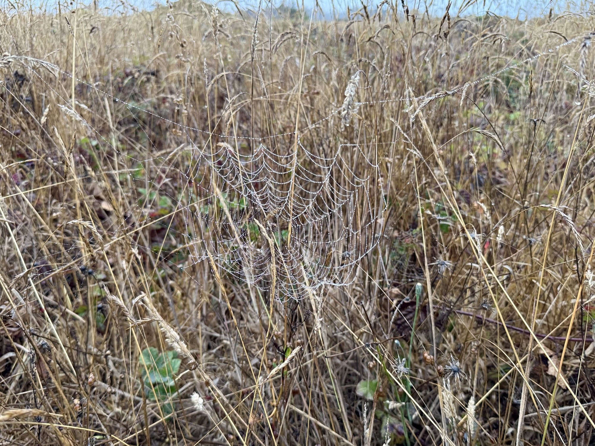 It was 7AM and surprisingly chilly. The tall grasses were soaked from the night before.