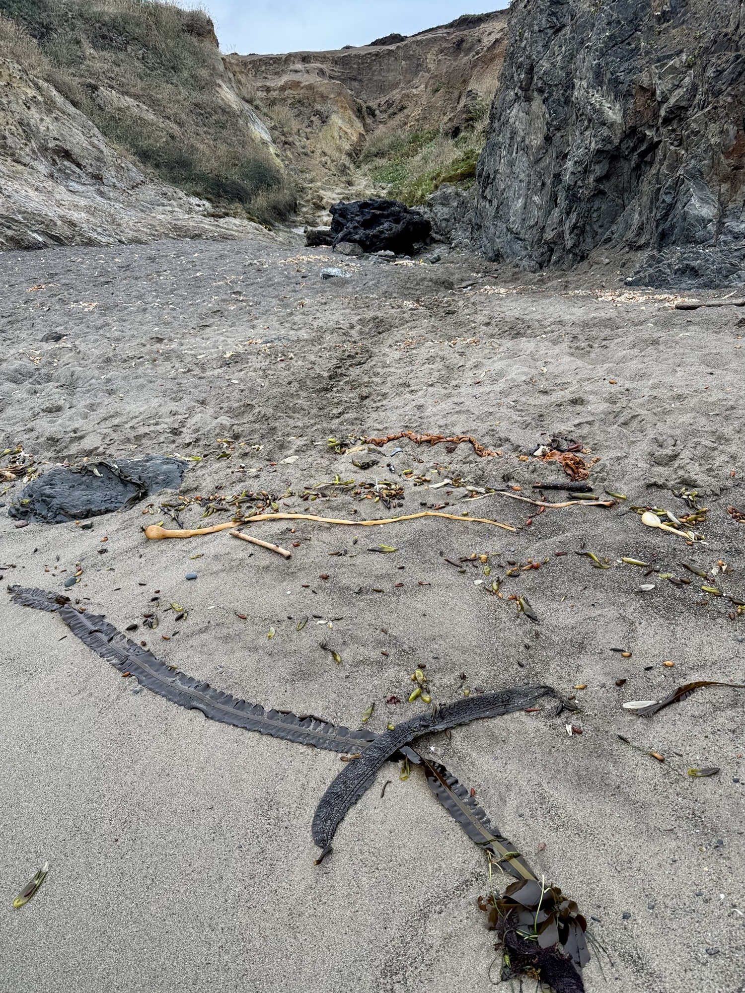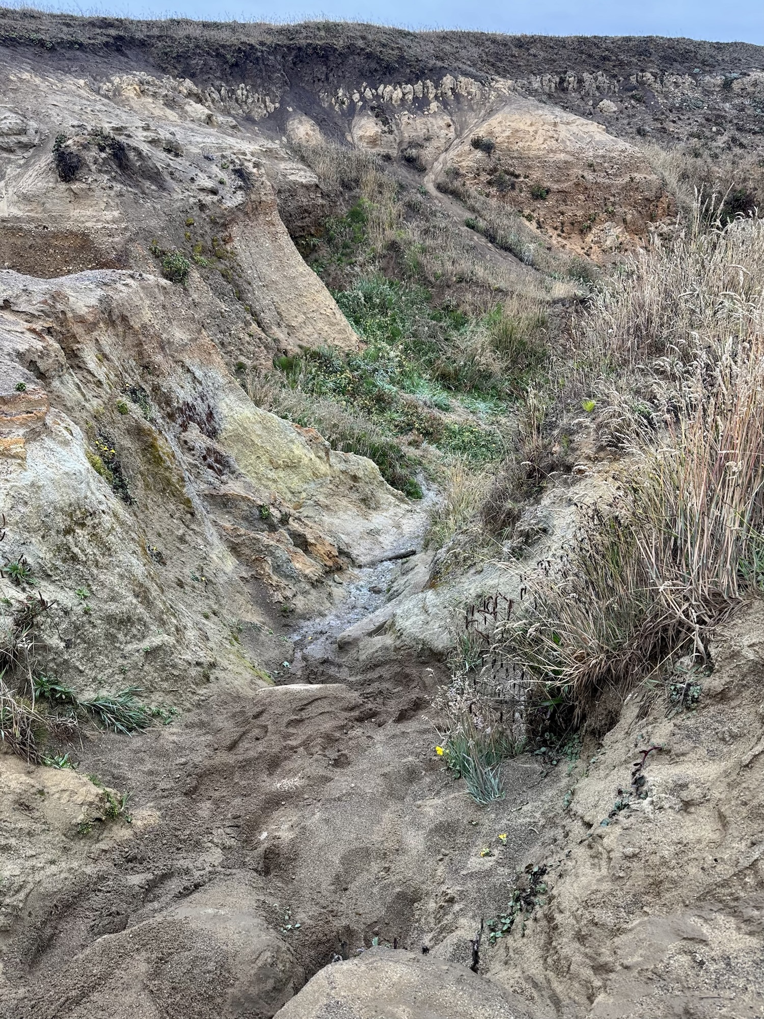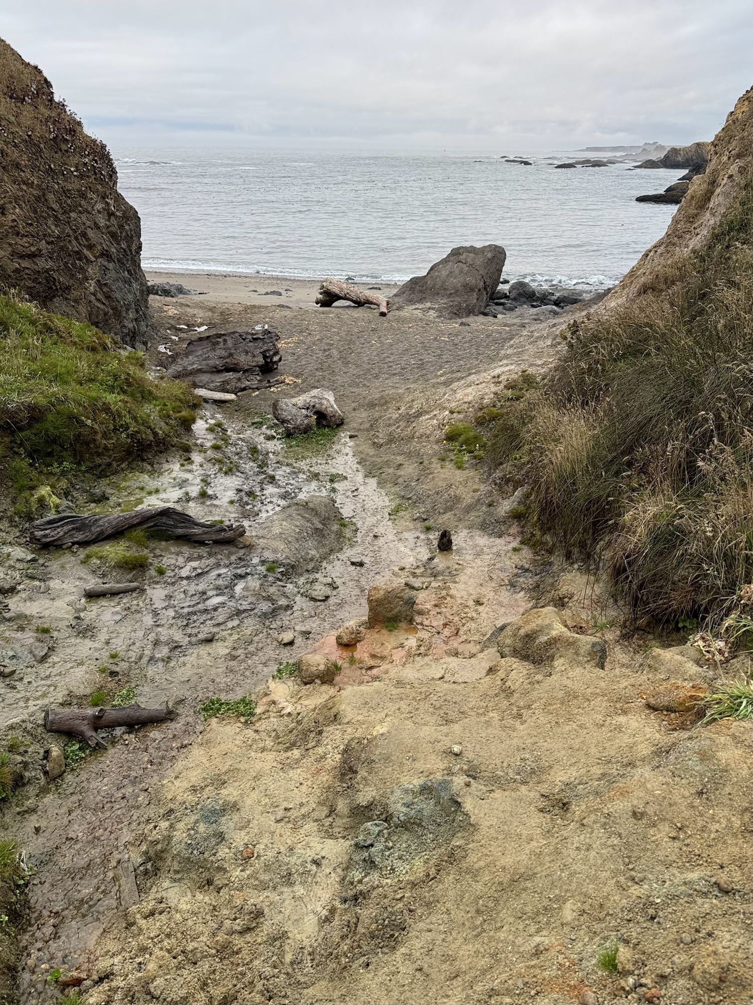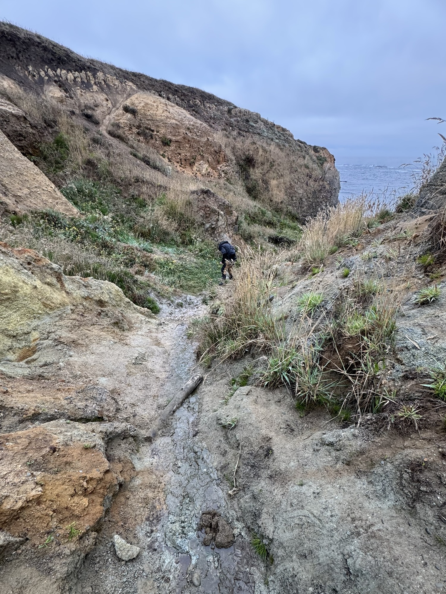 The winding path eventually led us down into a muddy canyon and out onto the pebbly coastline.